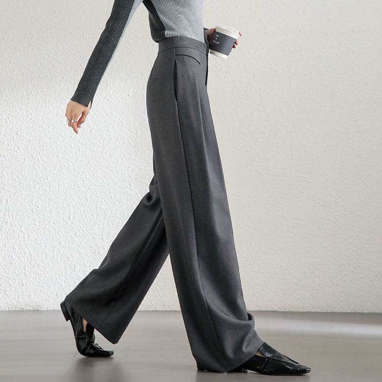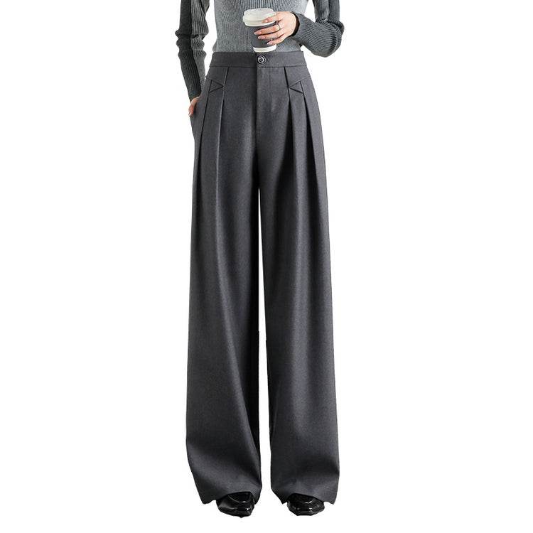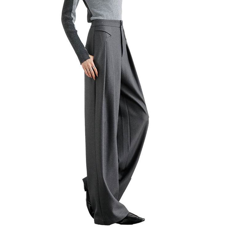 Удобные и стильные брюки с высокой талией и драпировкой, выполненные в городе пригородного стиля. Свободный покрой с широкими ногами и трехмерным эффектом создает комфортный и элегантный вид, идеально подходит для повседневной носки.