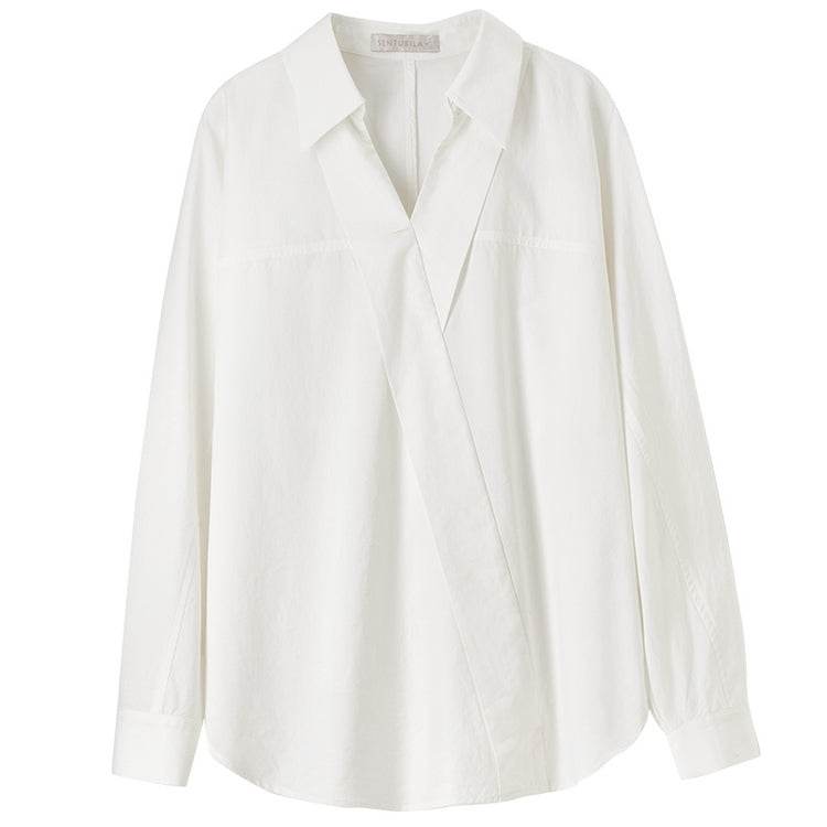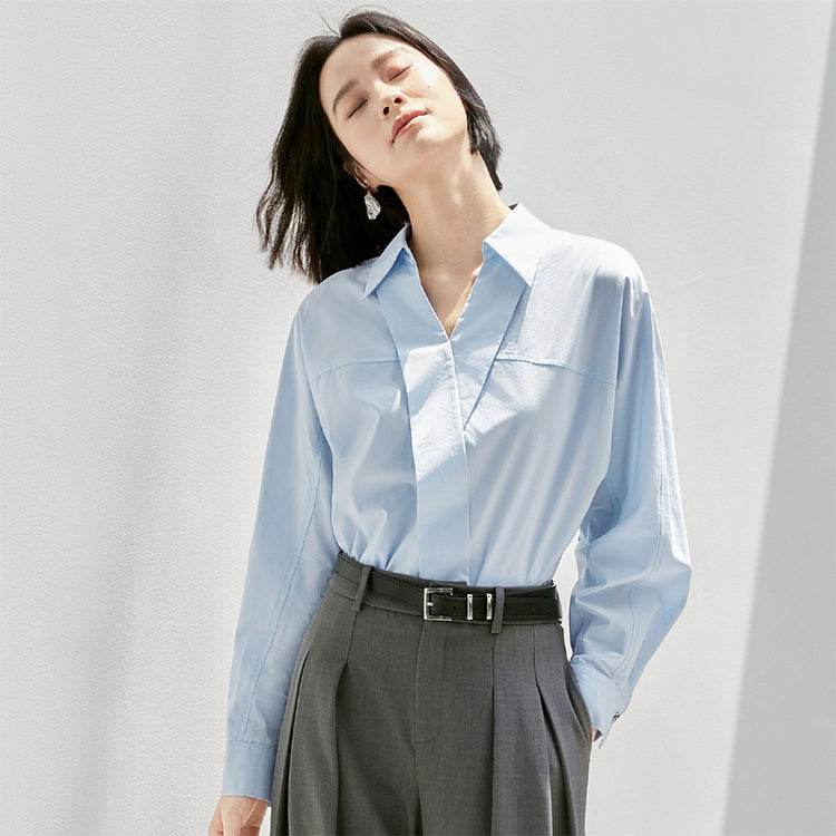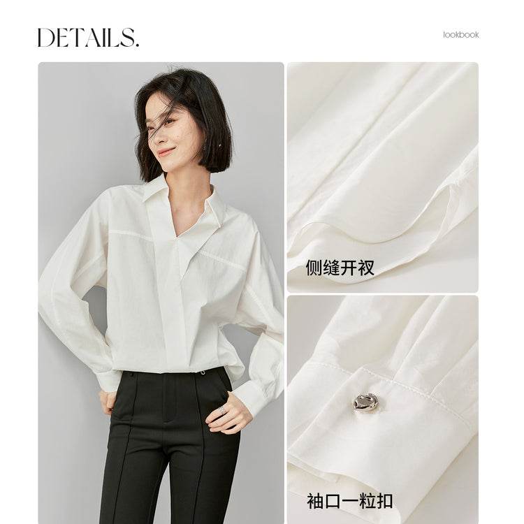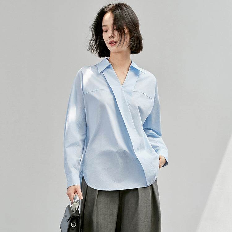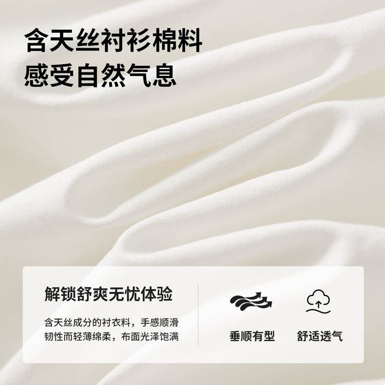 Рубашка с наклонной застежкой и цветными рукавами, выполненная из тенсела и хлопка. Удобный и стильный элемент гардероба, идеально подходит для повседневной носки, добавляя изюминку в ваш образ.