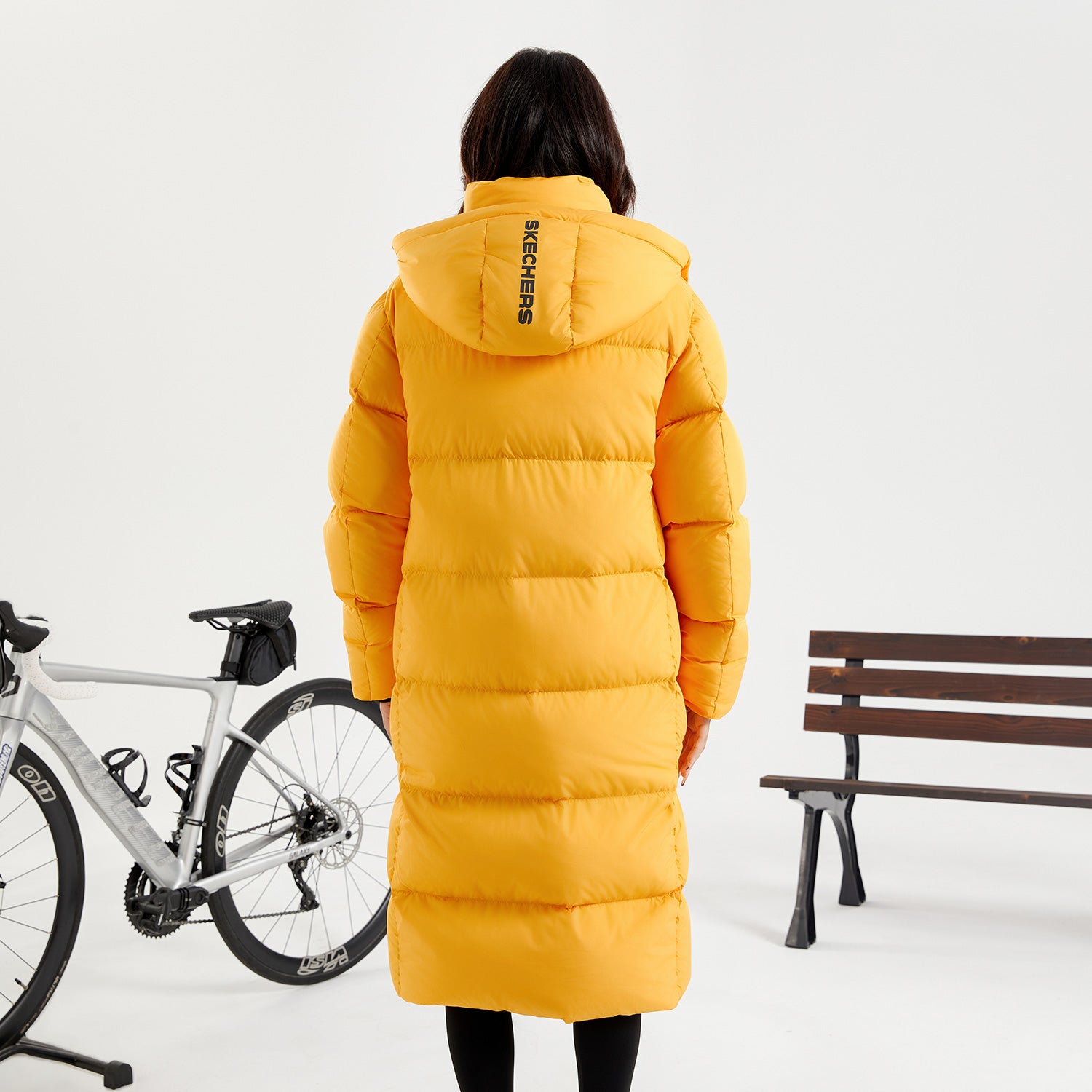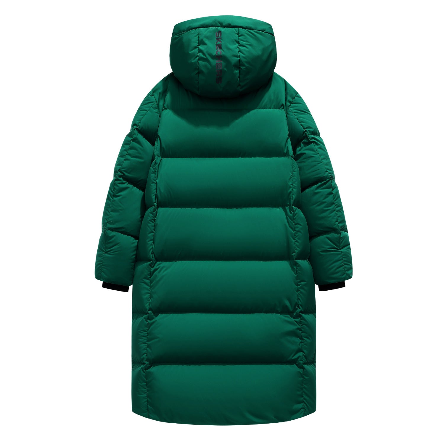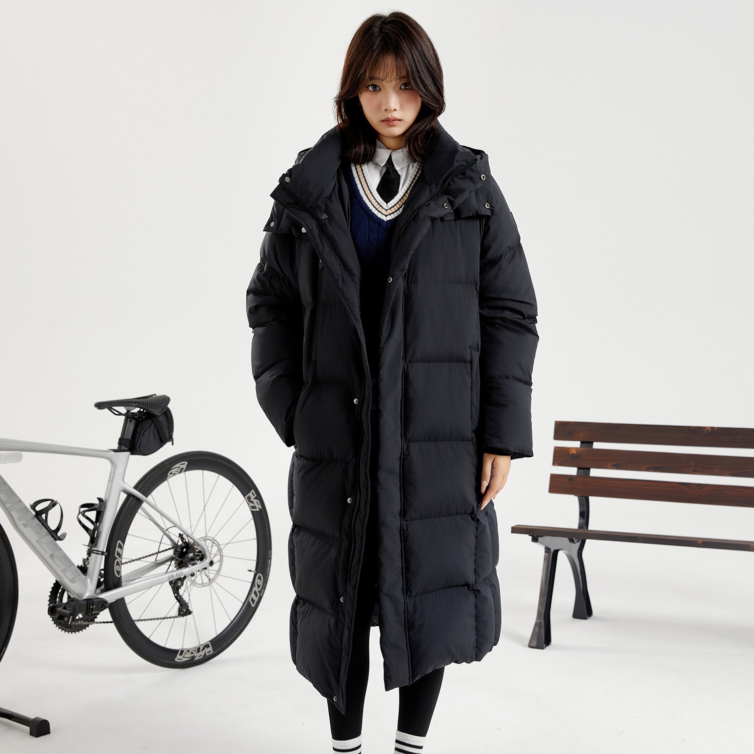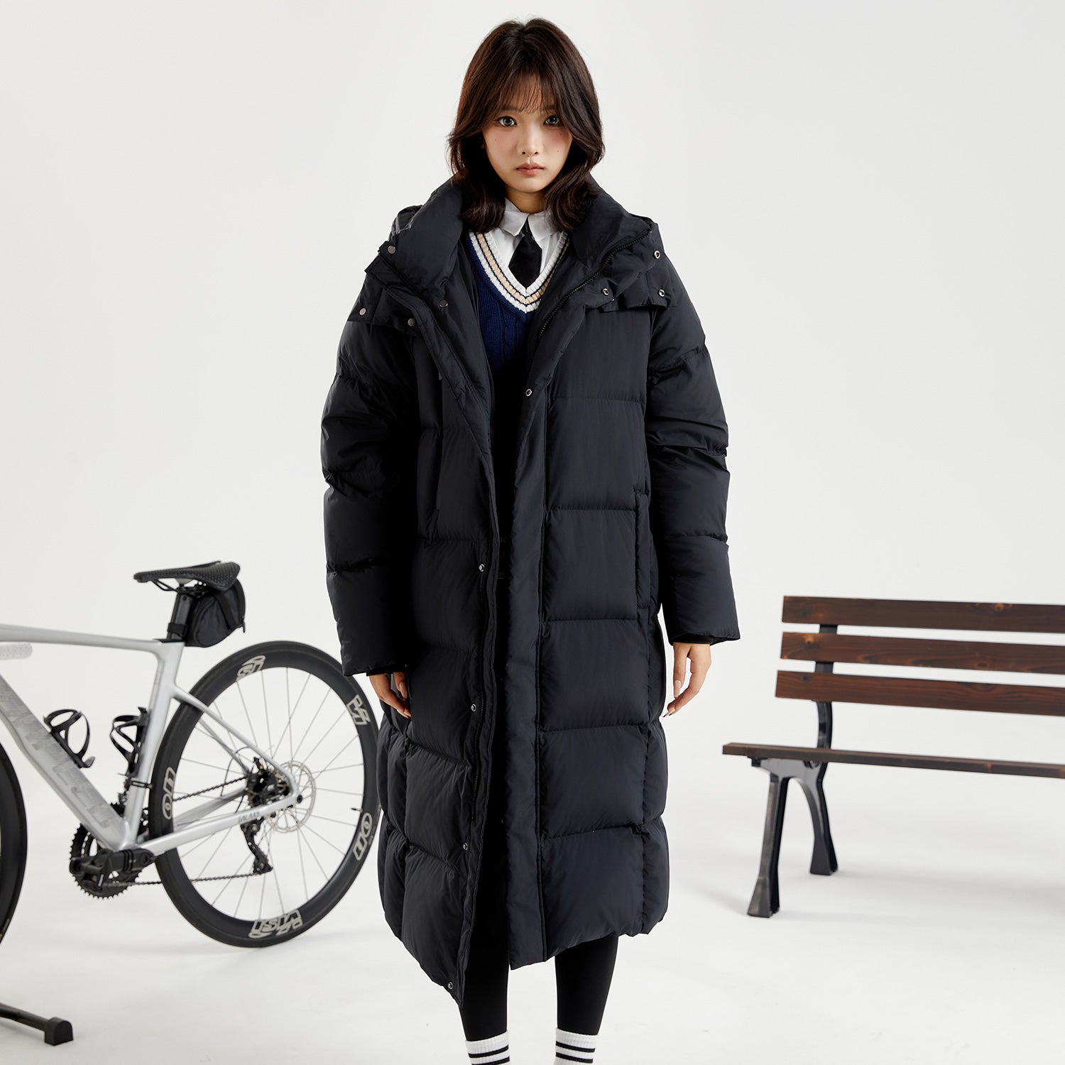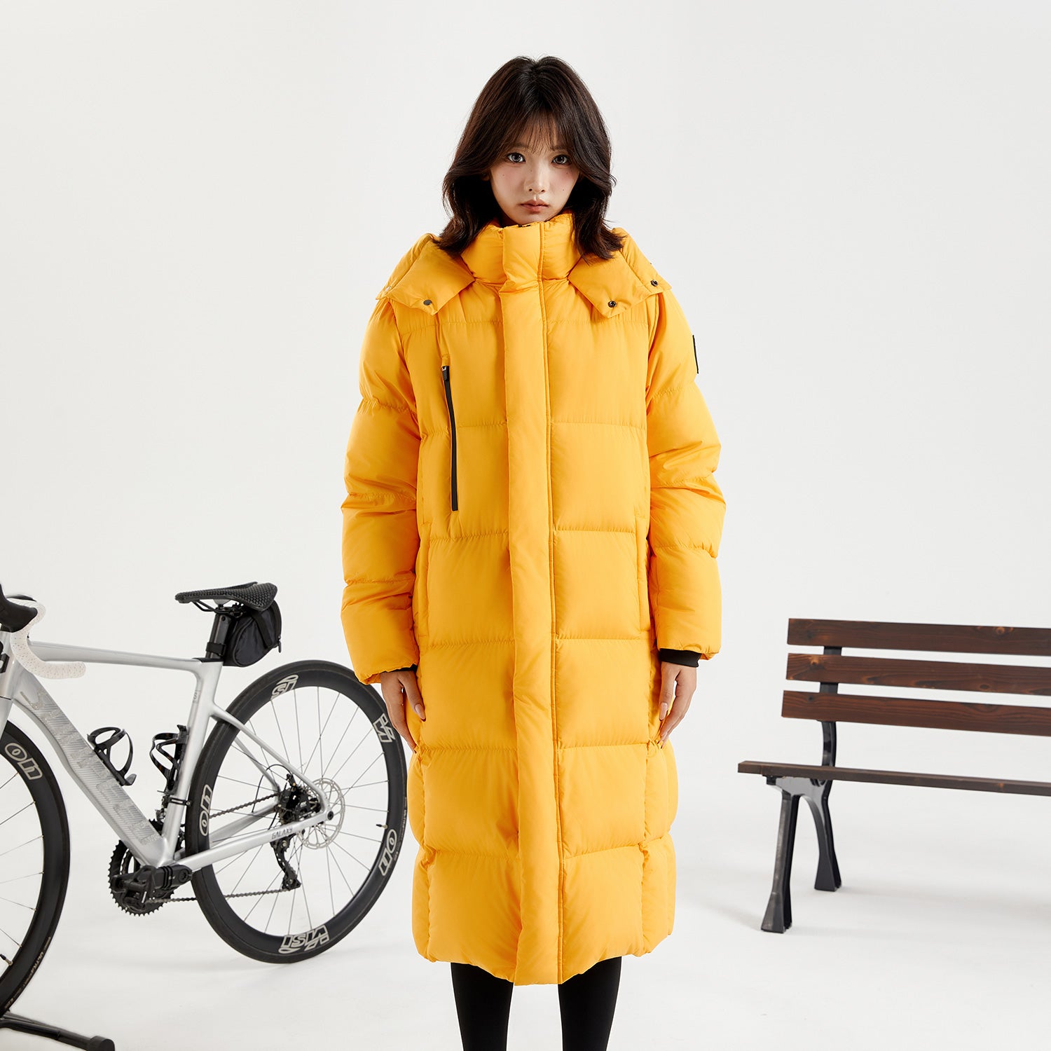 Женский длинный пуховик с капюшоном и белым пуховым наполнителем обеспечивает тепло, защиту от ветра и влаги. Модель выполнена в универсальном городском стиле с функциональным дизайном для активного и повседневного ношения.