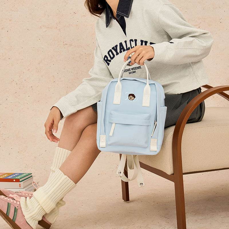 Плечевая сумка Teenie Weenie Dopamine с простой вышивкой логотипа, выполненная из ткани. Доступна в кремовом, желтом, снежно-голубом, розовом с цветком вишни и бежевом миндальном цветах. Эта стильная сумка идеально подходит как для мужчин, так и для женщин, добавляя удобство и элегантность в повседневный образ.