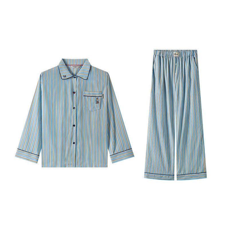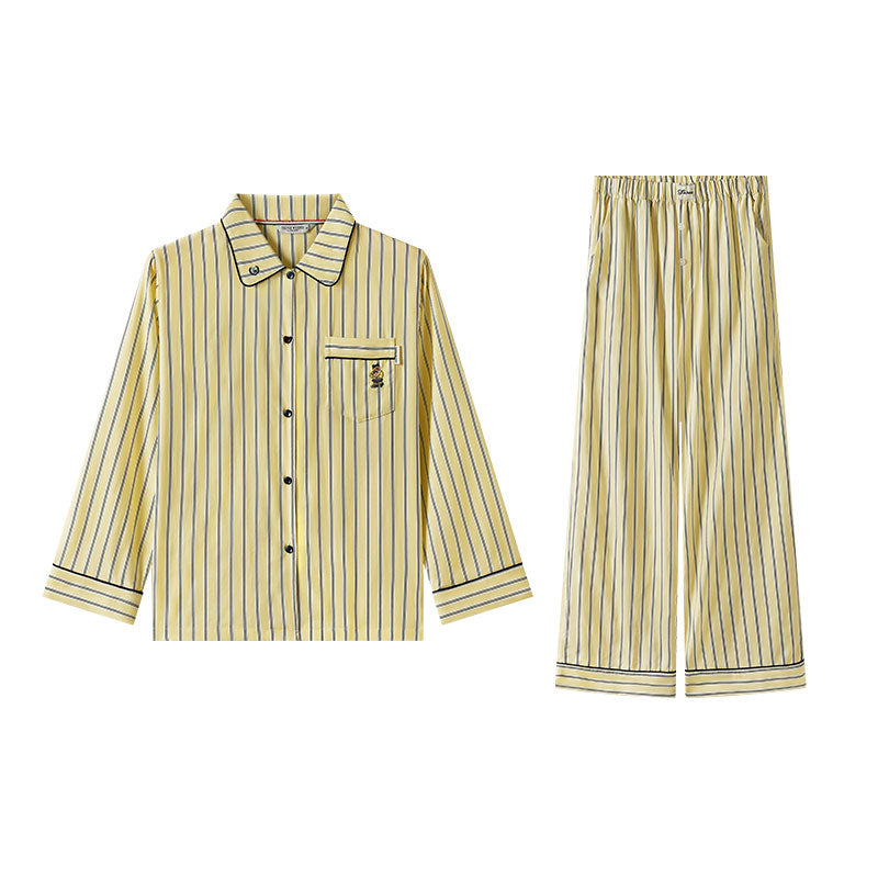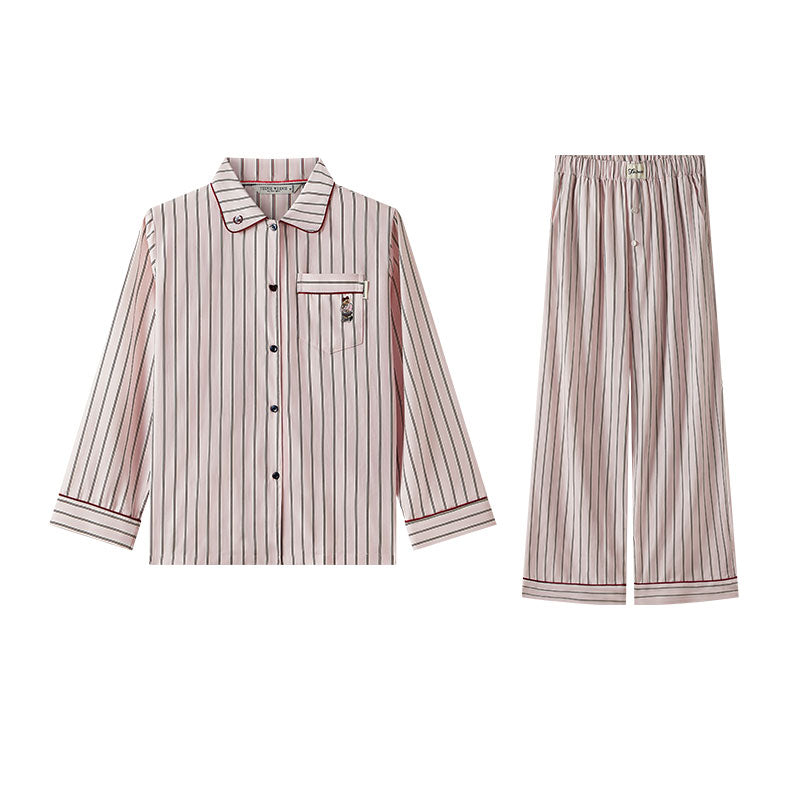 Комплект для дома из смеси лиоцелла и хлопка с отложным воротником для мягкости и комфорта. Модель с полосками обеспечивает легкость и воздухопроницаемость для отдыха.