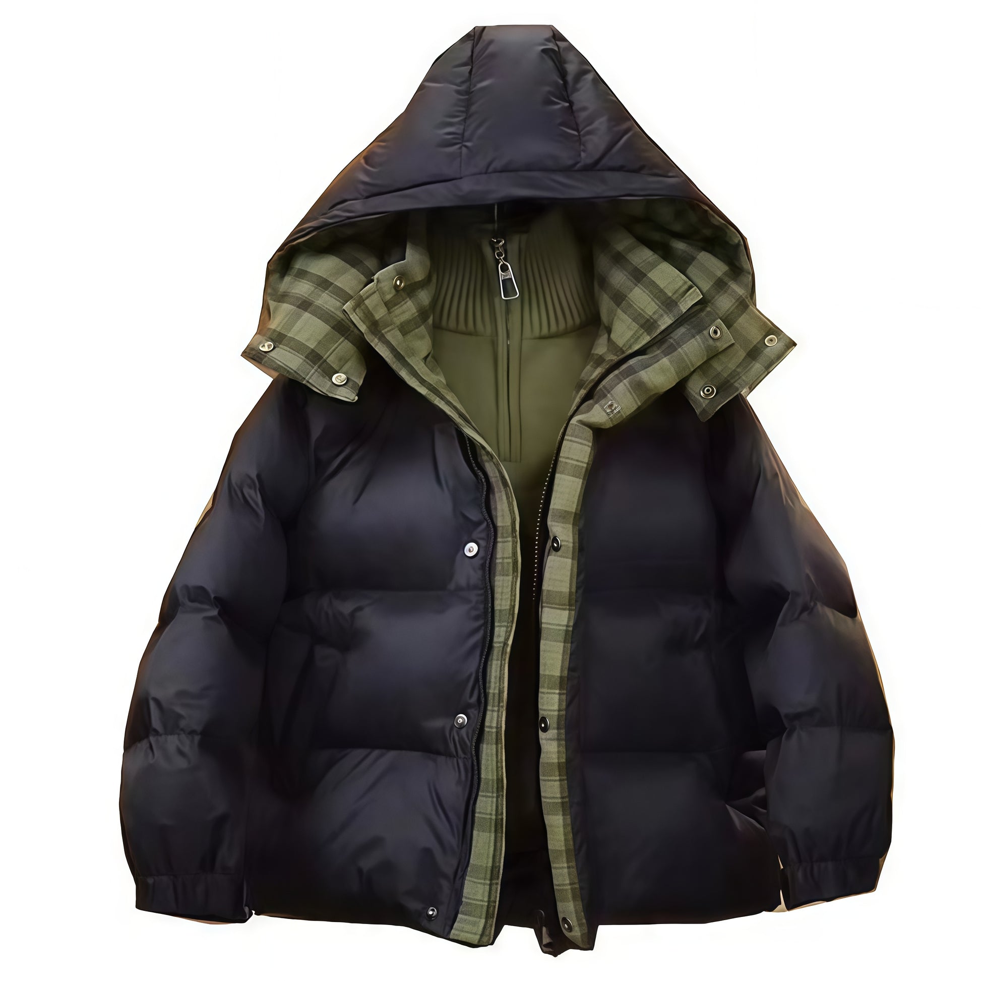 Детский пуховик для мальчиков с капюшоном и утепленной подкладкой, выполненный в минималистичном стиле. Модель свободного кроя обеспечивает легкость, тепло, защиту от влаги и ветра для повседневного использования.