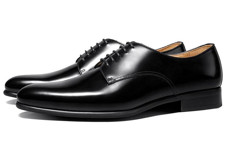 Мужские английские дерби туфли Thom Wills с блестящей отделкой и круглым носком, выполненные из качественной кожи. Эти формальные черные туфли на мягкой подошве ручной работы обеспечивают комфорт и стиль, идеально подходят для офисной носки и деловых мероприятий. Их элегантный дизайн и внимание к деталям делают их отличным выбором для мужчин, ценящих классические и качественные изделия.