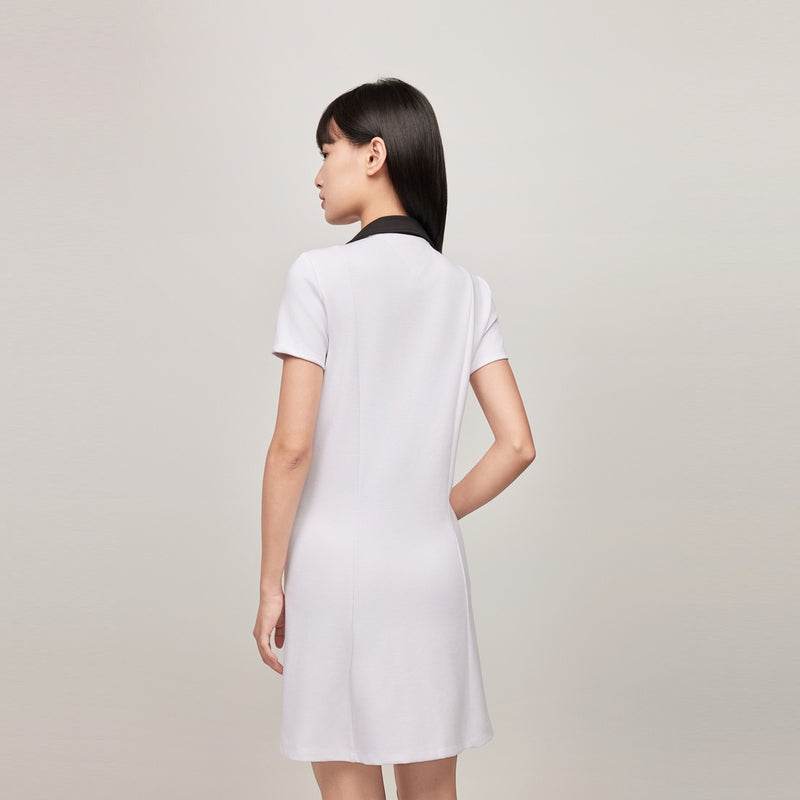 Платье с короткими рукавами и V-образным вырезом, выполненное в A-образном силуетe с вязаной конструкцией. Винтажный ретро дизайн с американским акцентом, обратимое, что позволяет носить его с разных сторон. Идеально подходит для повседневной носки.
