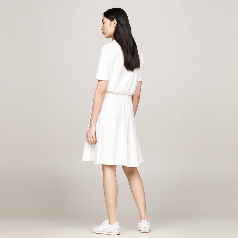 Платье с короткими рукавами и половинной молнией, выполненное с сетчатой талией и лацканами. Удобное и стильное, идеально подходит для повседневной носки и создания элегантных образов.