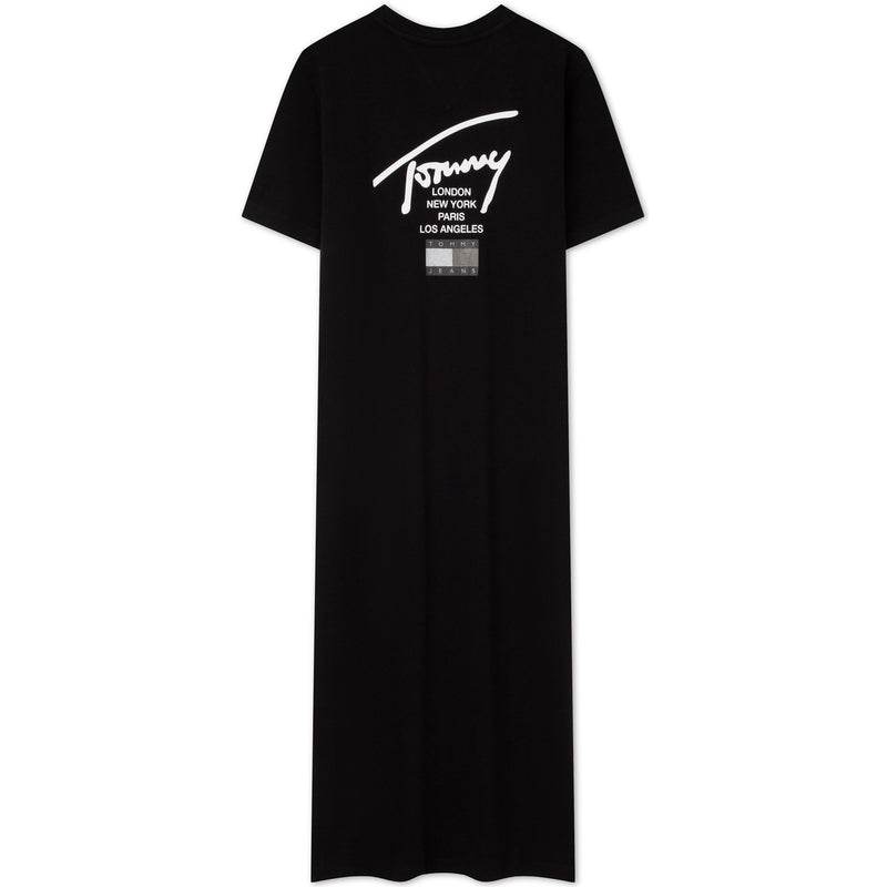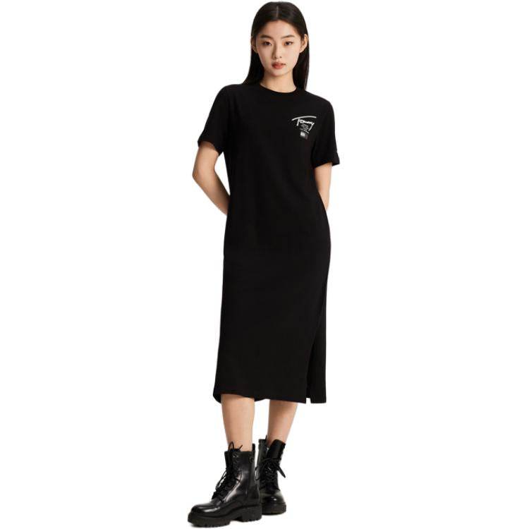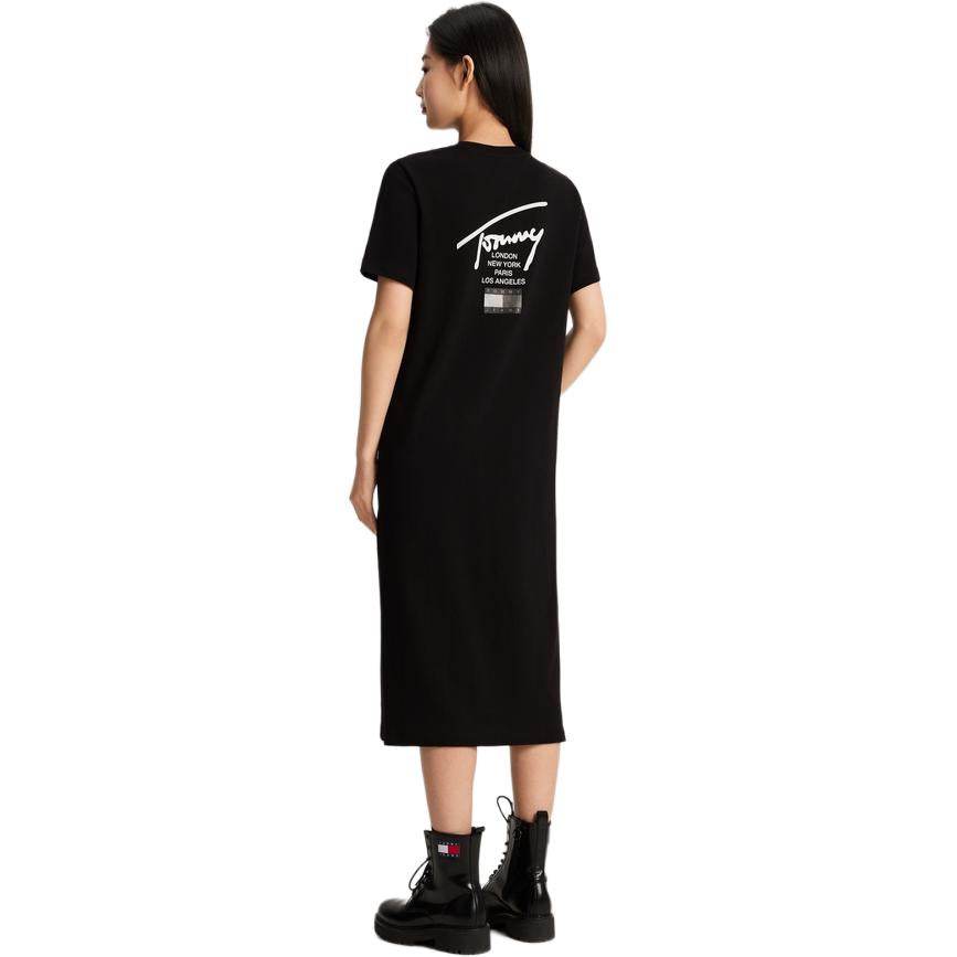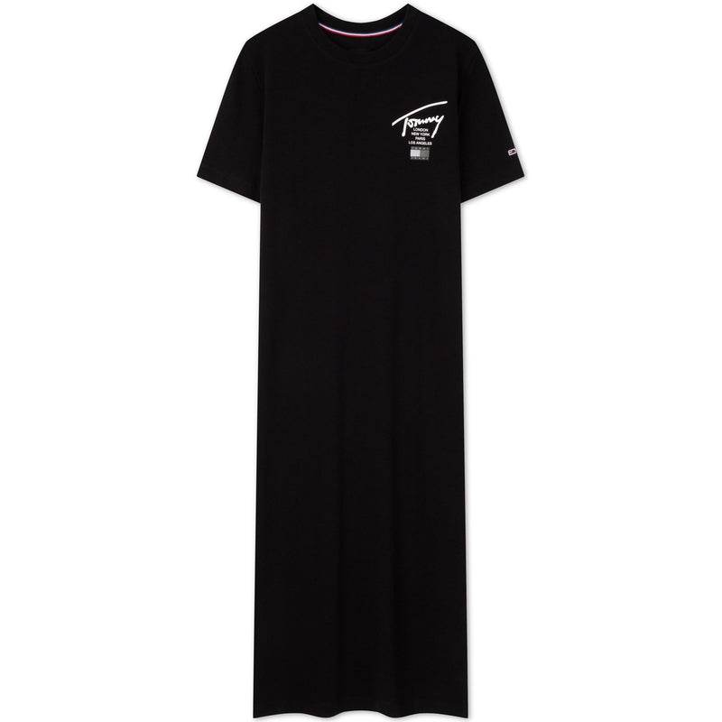 Удобное повседневное платье с короткими рукавами, выполненное из хлопка в черном цвете. Украшено печатью с подписью бренда, идеально подходит для создания стильного и комфортного образа в любое время.