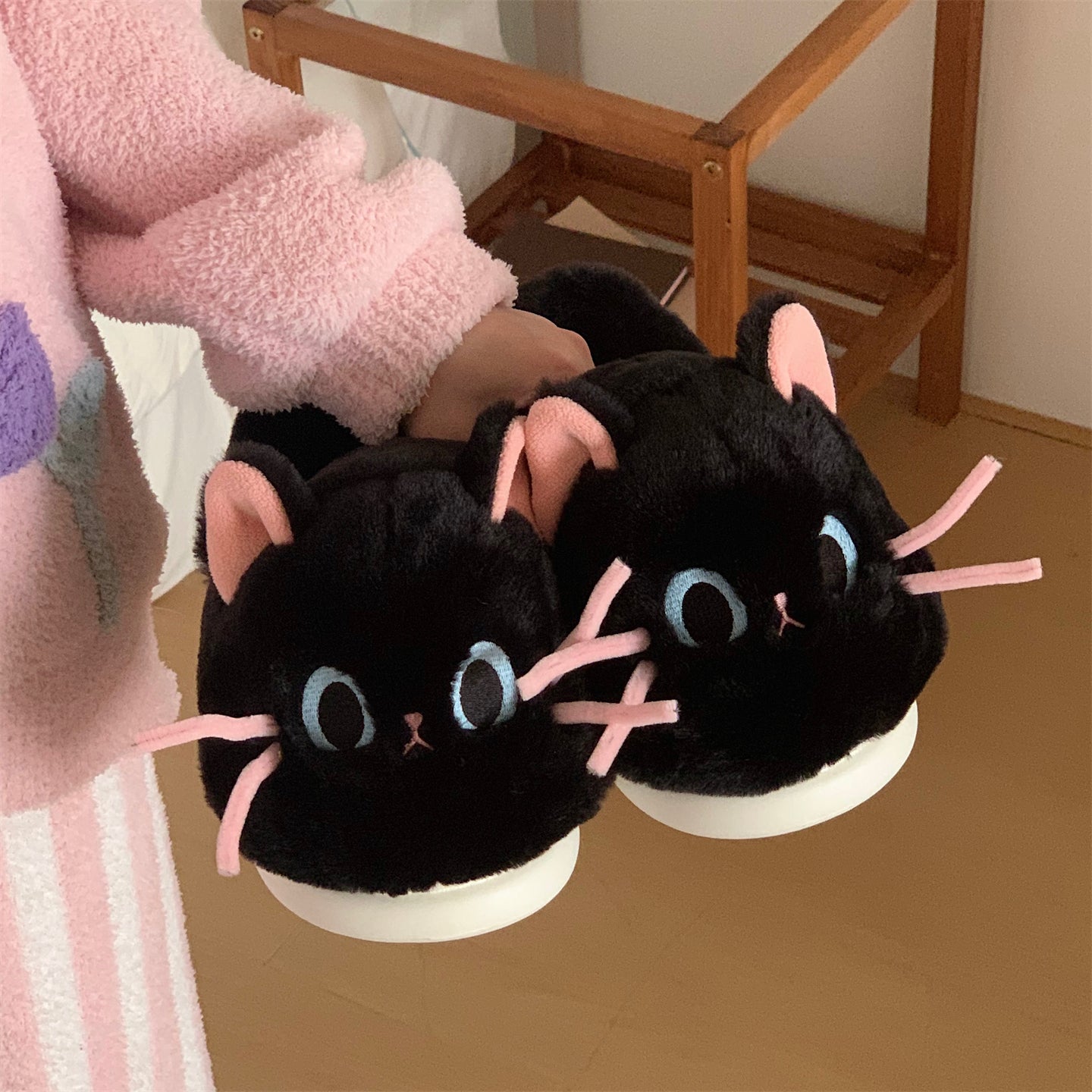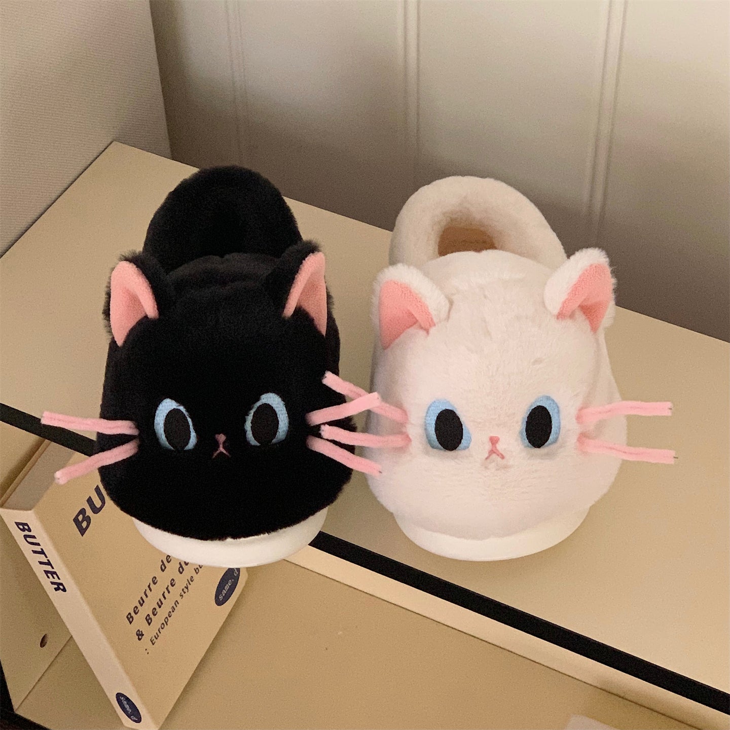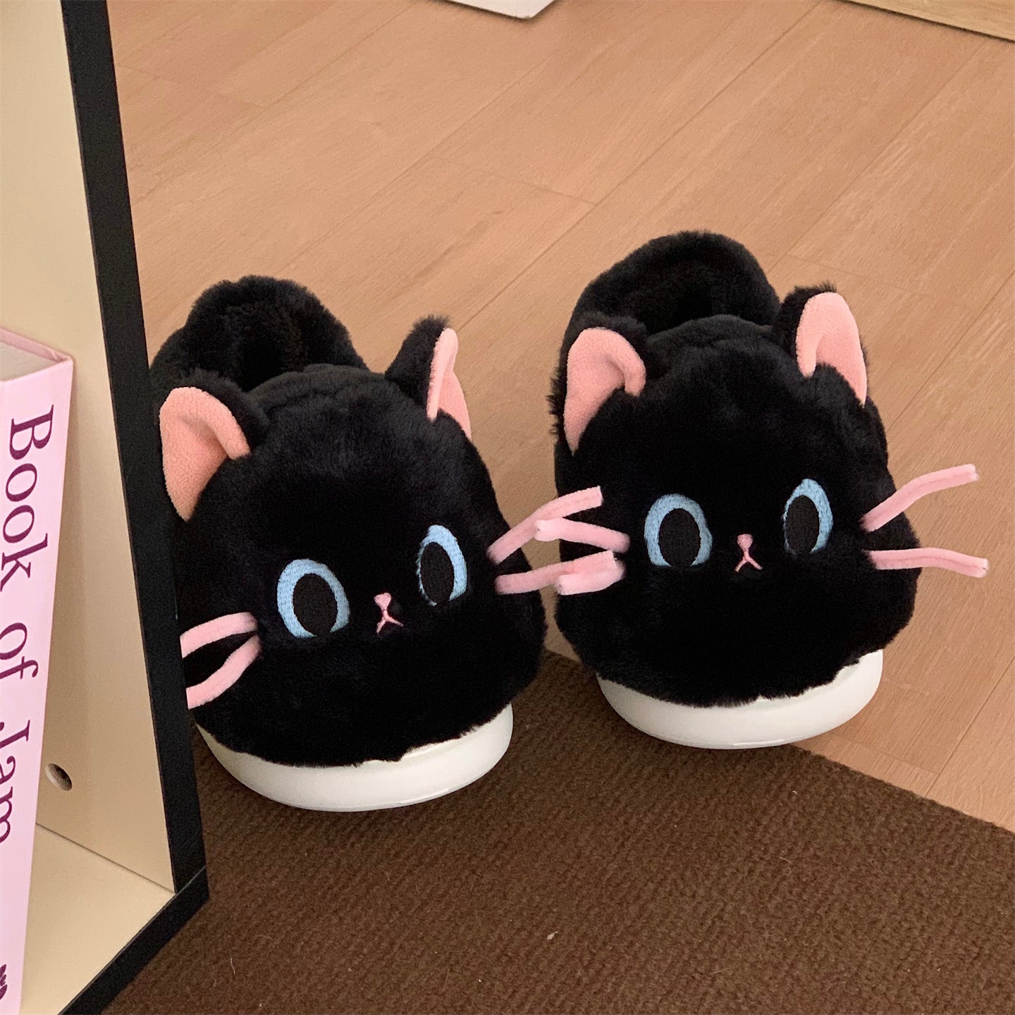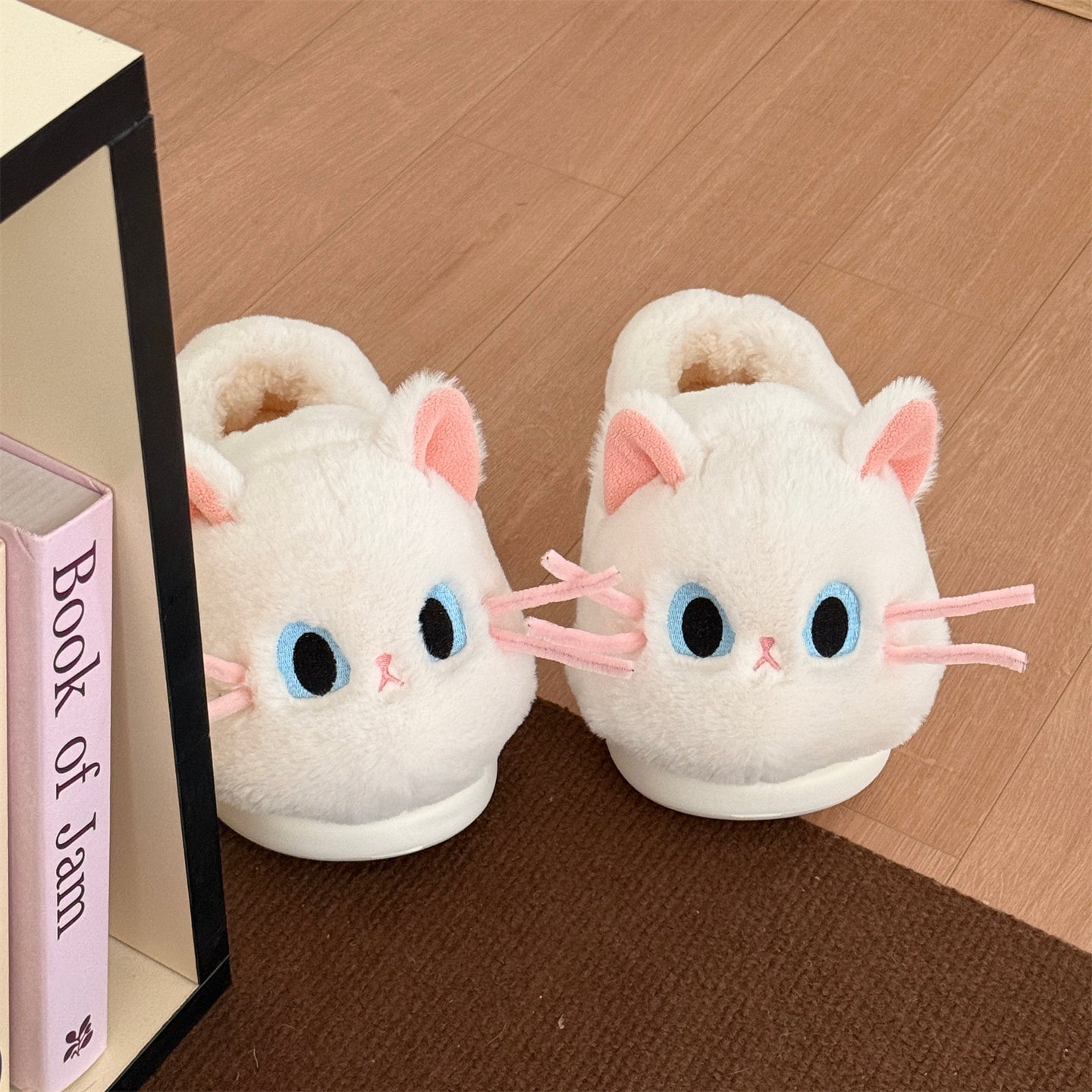 Тёплые плюшевые домашние тапочки с милым дизайном утки и котёнка, закрытой пяткой для зимнего комфорта. Подходят для дома и общежития, обеспечивая уют и тепло.