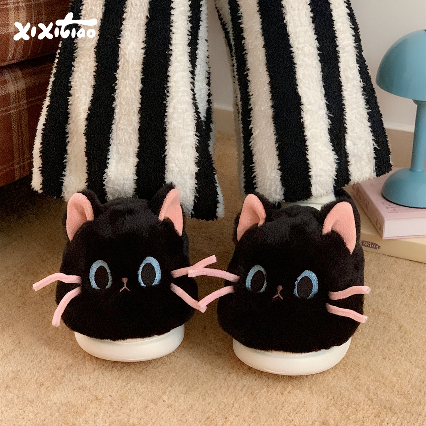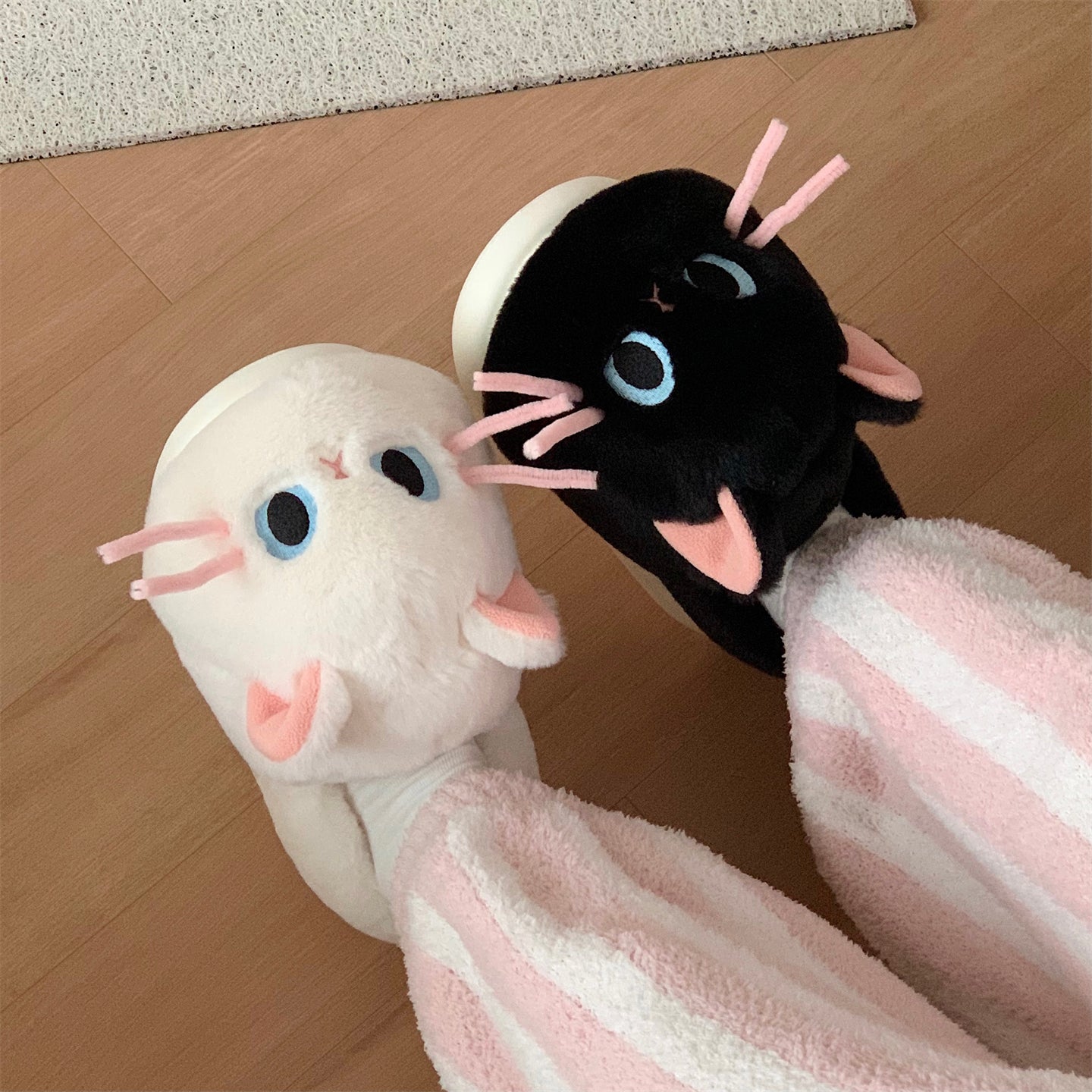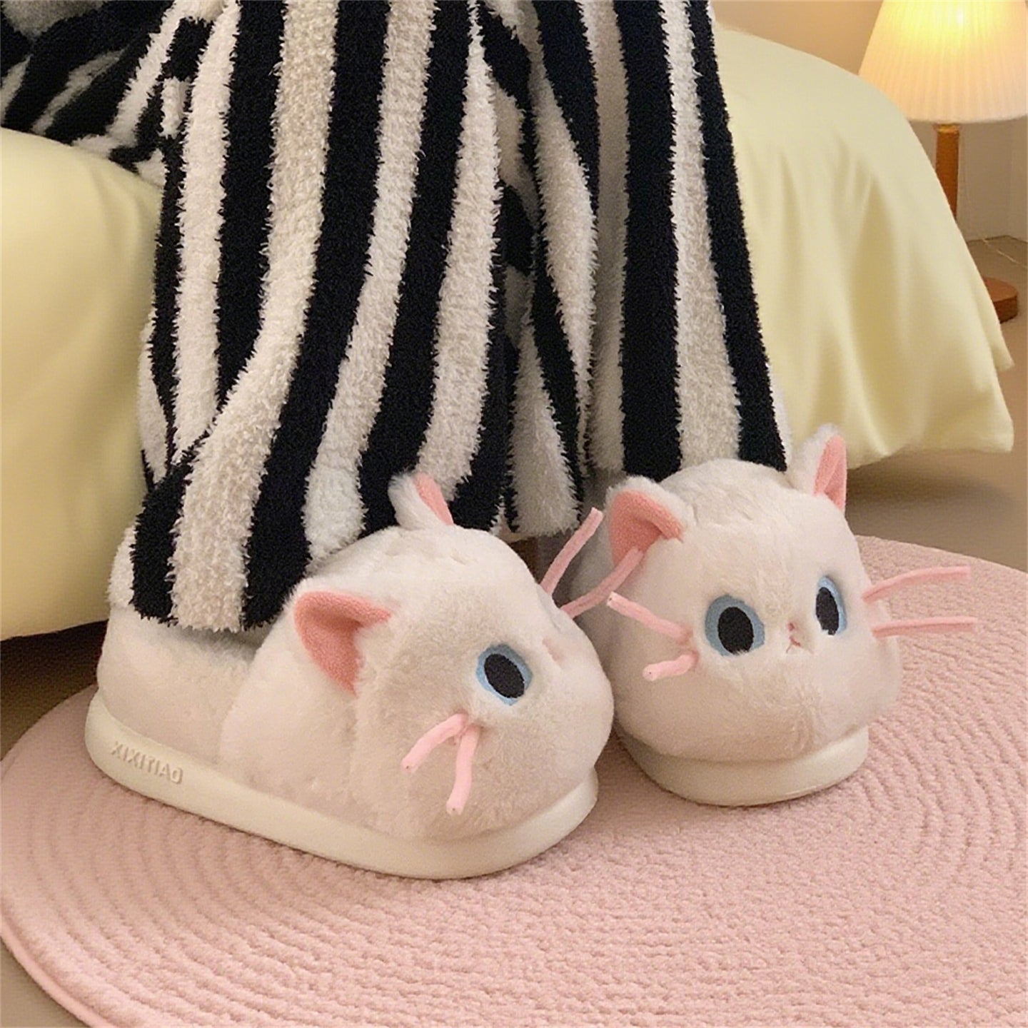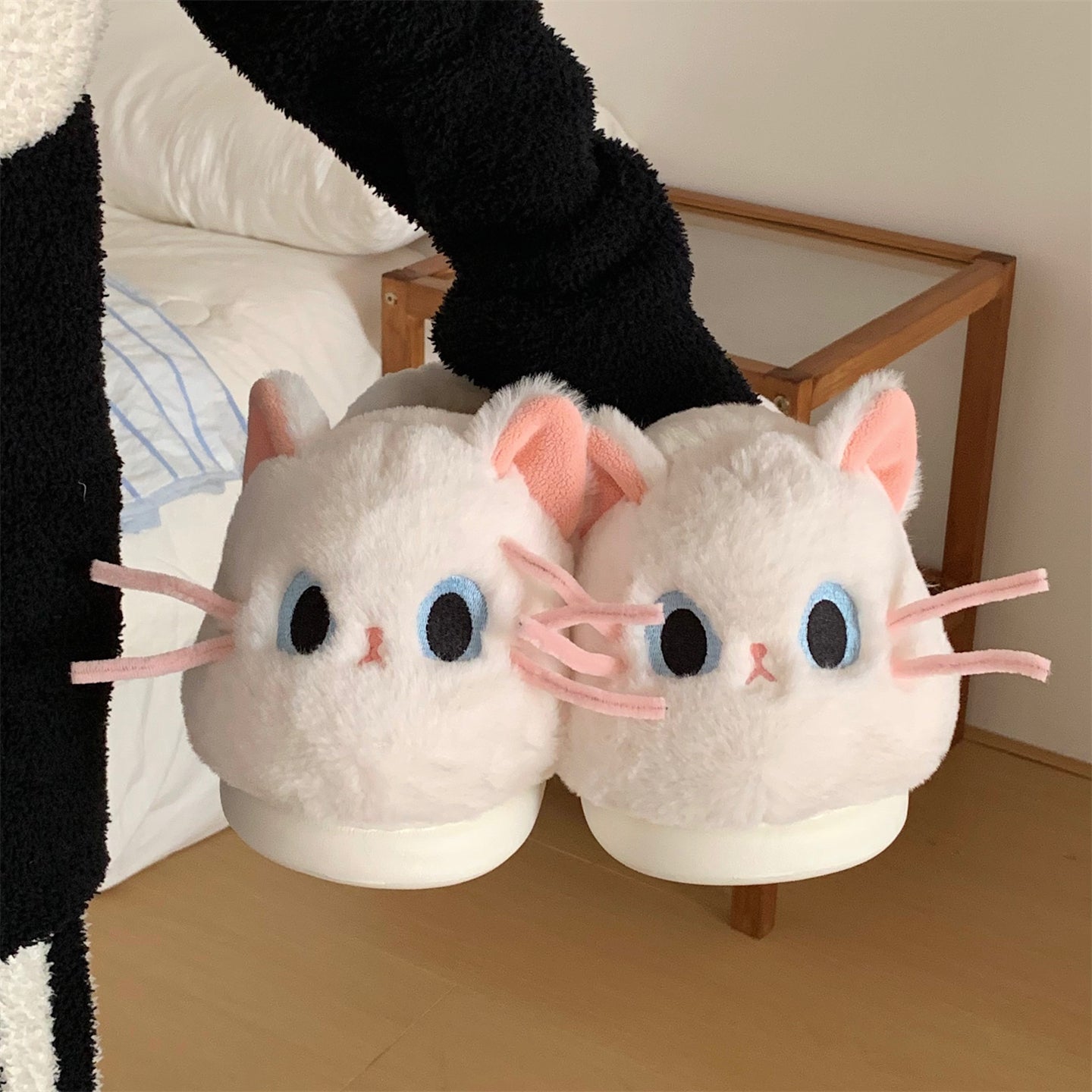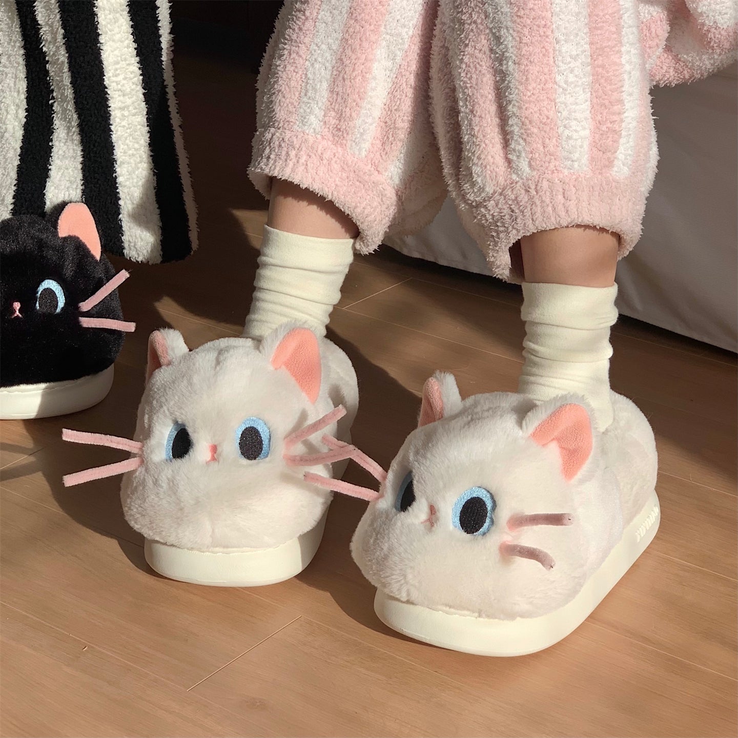 Тёплые плюшевые домашние тапочки с милым дизайном утки и котёнка, закрытой пяткой для зимнего комфорта. Подходят для дома и общежития, обеспечивая уют и тепло.