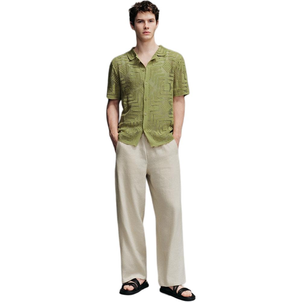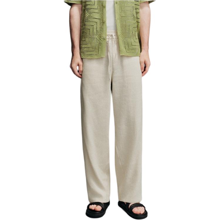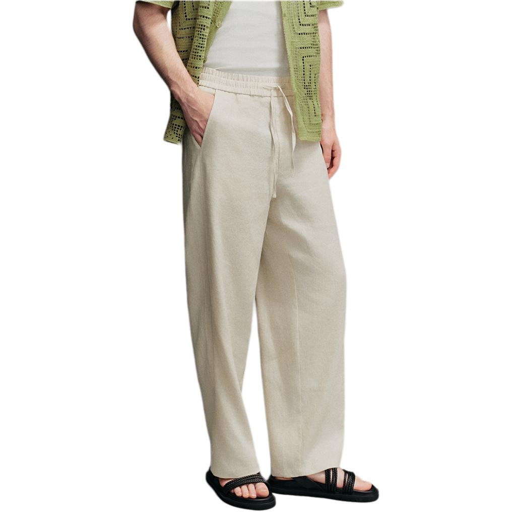 Широкие брюки с завышенной талией на эластичном поясе и декоративным шнурком, выполненные из смеси льна и лиоцелла. Модель с эффектом «изогнутого кроя» обеспечивает свободное движение и подчеркивает современный расслабленный силуэт.