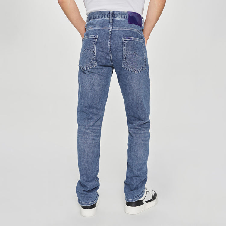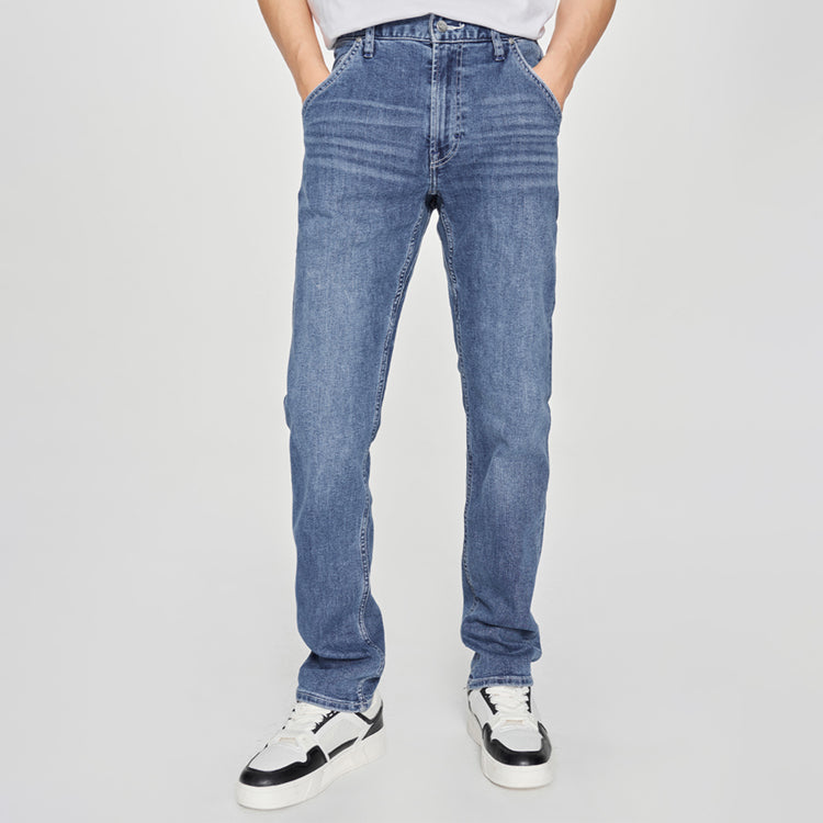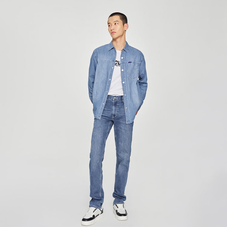 Классические джинсы прямого кроя с пятью карманами, выполненными из эластичного денима. Модель стандартной посадки предлагает комфорт и свободу движений, сохраняя традиционный силуэт для повседневного стиля.