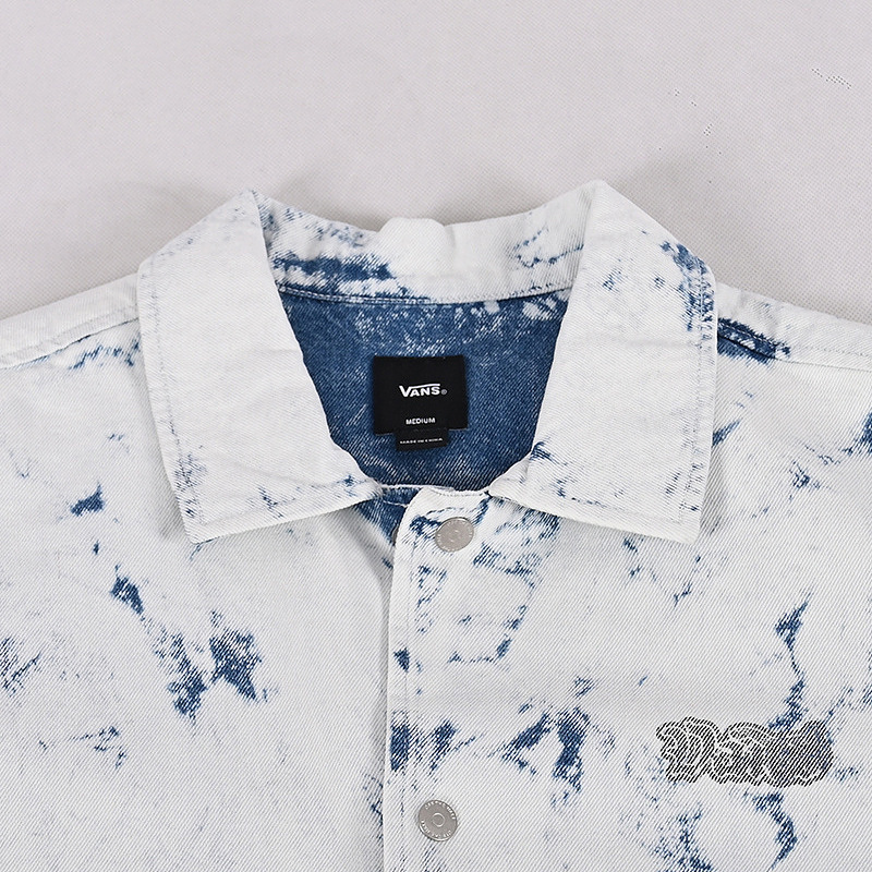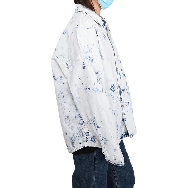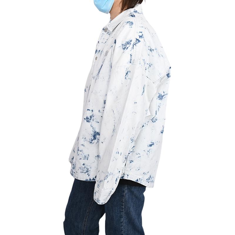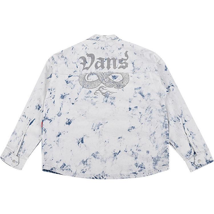 Куртка в стиле рубашки с воротником-стойкой и принтом, посвященным году Змеи, с эффектом поношенности. Модель на пуговицах из хлопка обеспечивает комфорт и уникальный уличный образ.