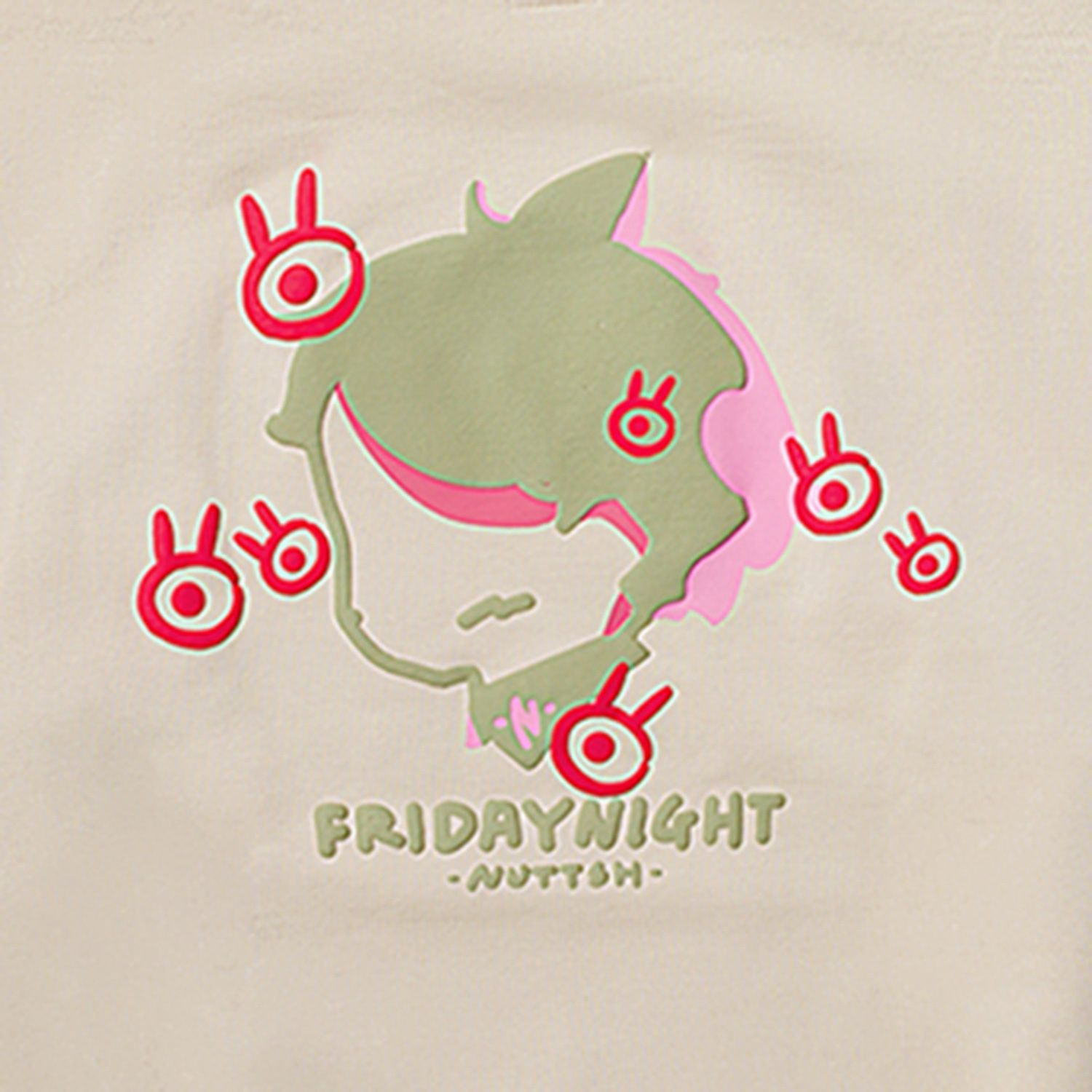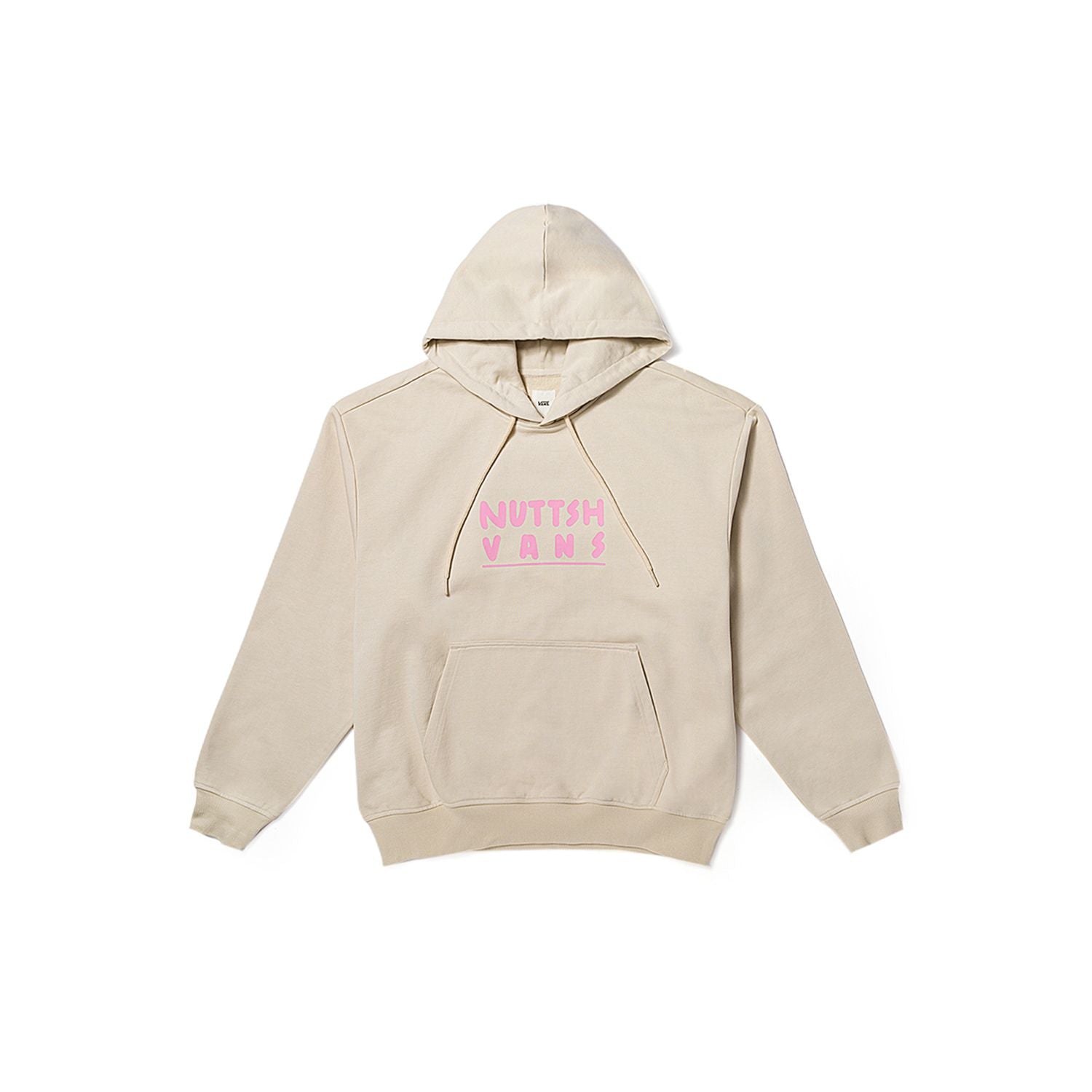 Худи свободного кроя в рамках ограниченной коллаборации с азиатским художником, украшенное графическим принтом с надписями. Модель с капюшоном и заниженной линией плеча выполнена в уличном стиле для прохладной погоды.