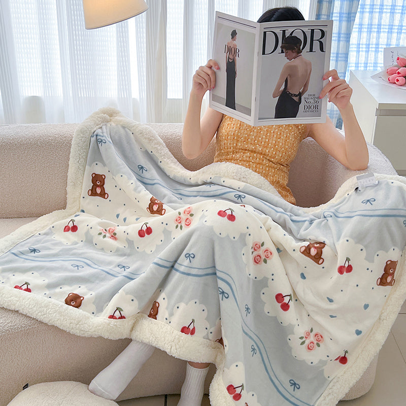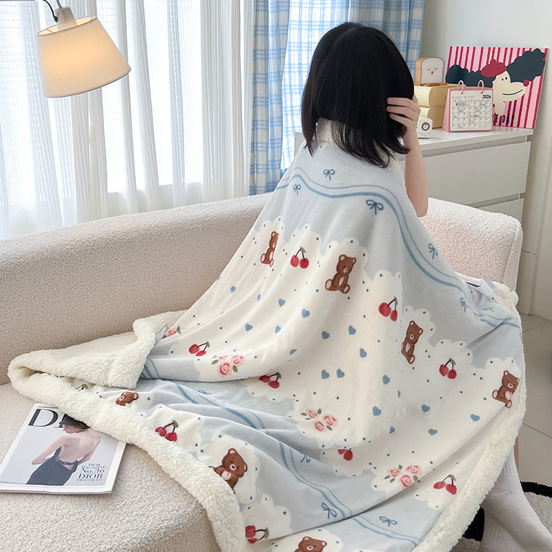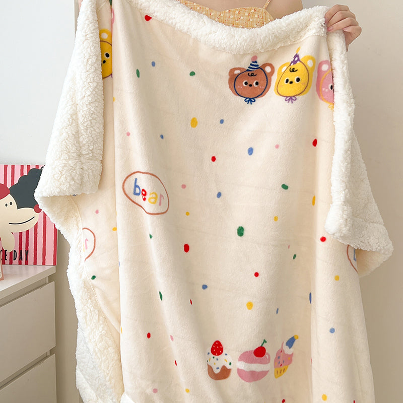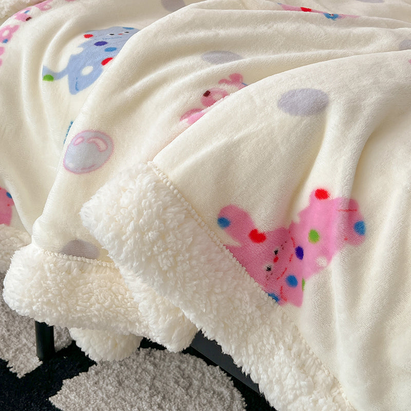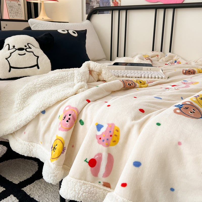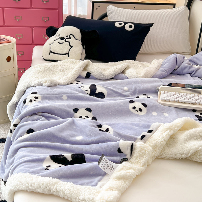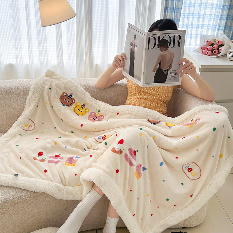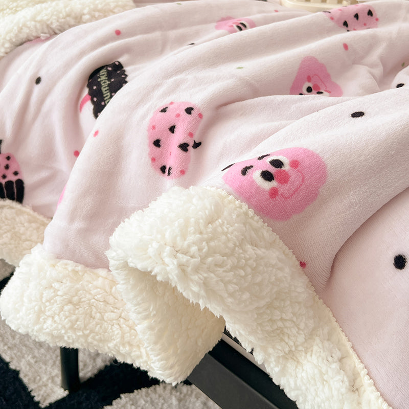 Мягкое и двустороннее одеяло из молочного флиса и искусственной шерсти с мультяшным дизайном. Многофункционально: используется как плед, коленный плед, шаль или покрывало для дивана. Подходит для студентов, дома и общежитий.