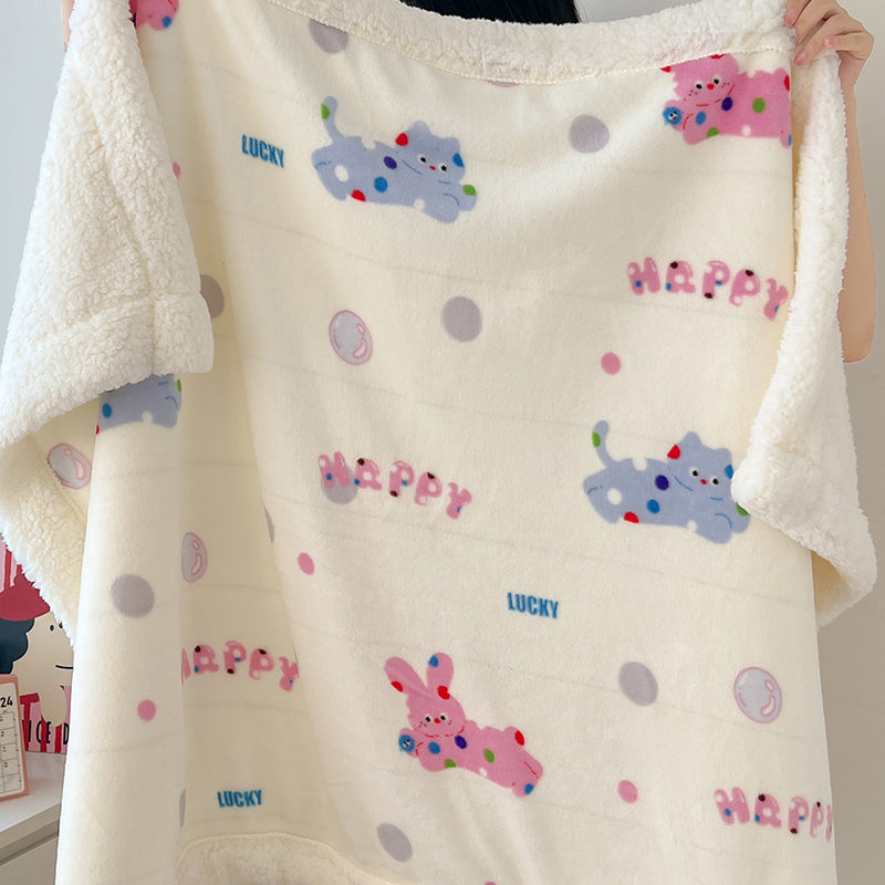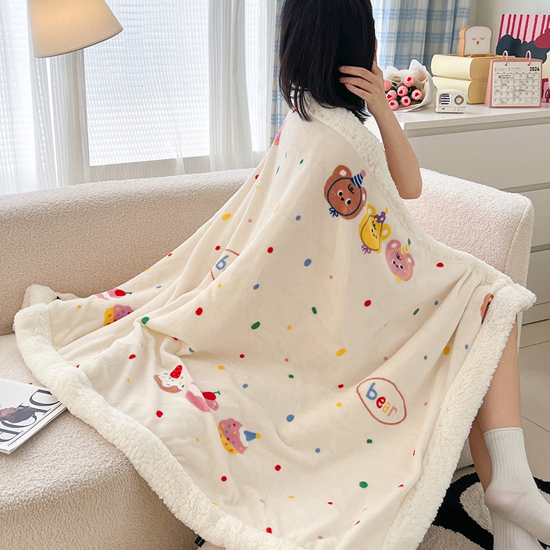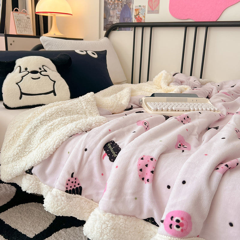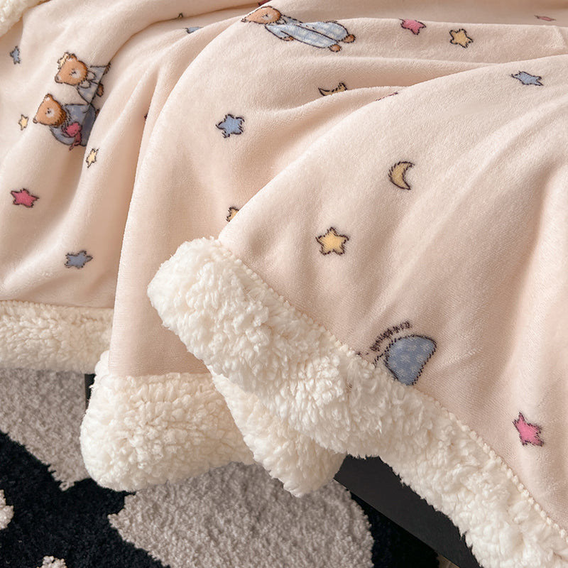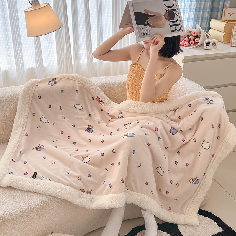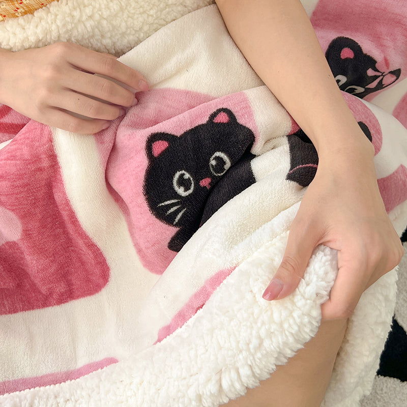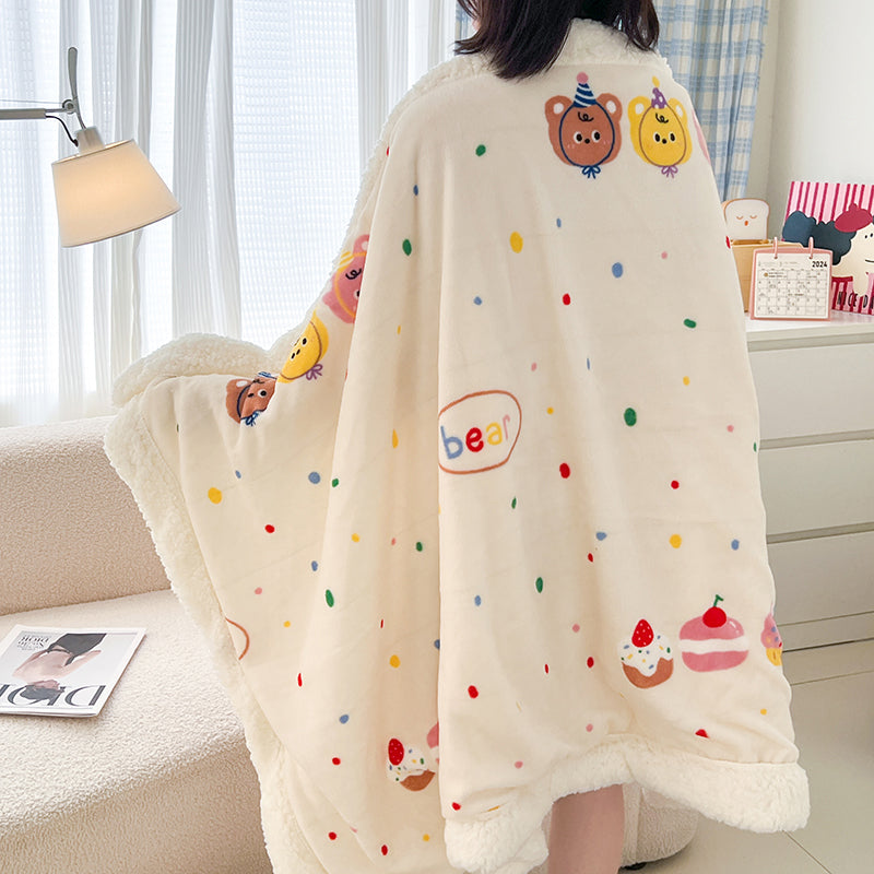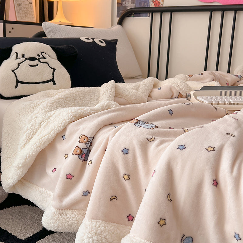 Мягкое и двустороннее одеяло из молочного флиса и искусственной шерсти с мультяшным дизайном. Многофункционально: используется как плед, коленный плед, шаль или покрывало для дивана. Подходит для студентов, дома и общежитий.