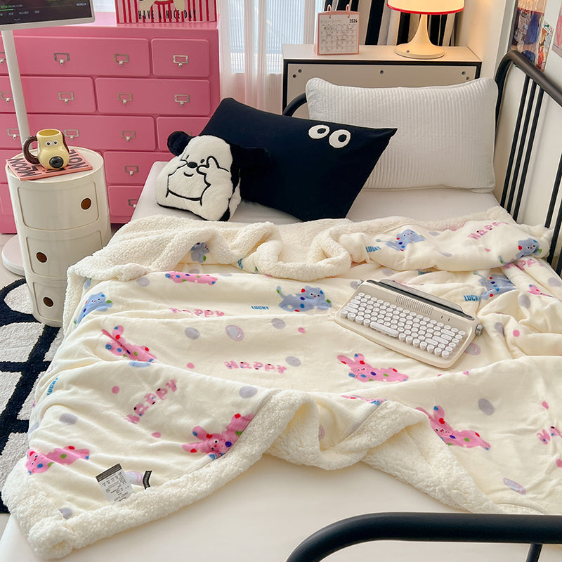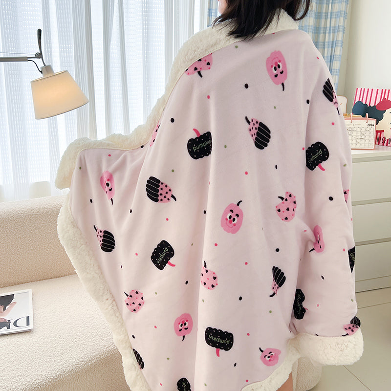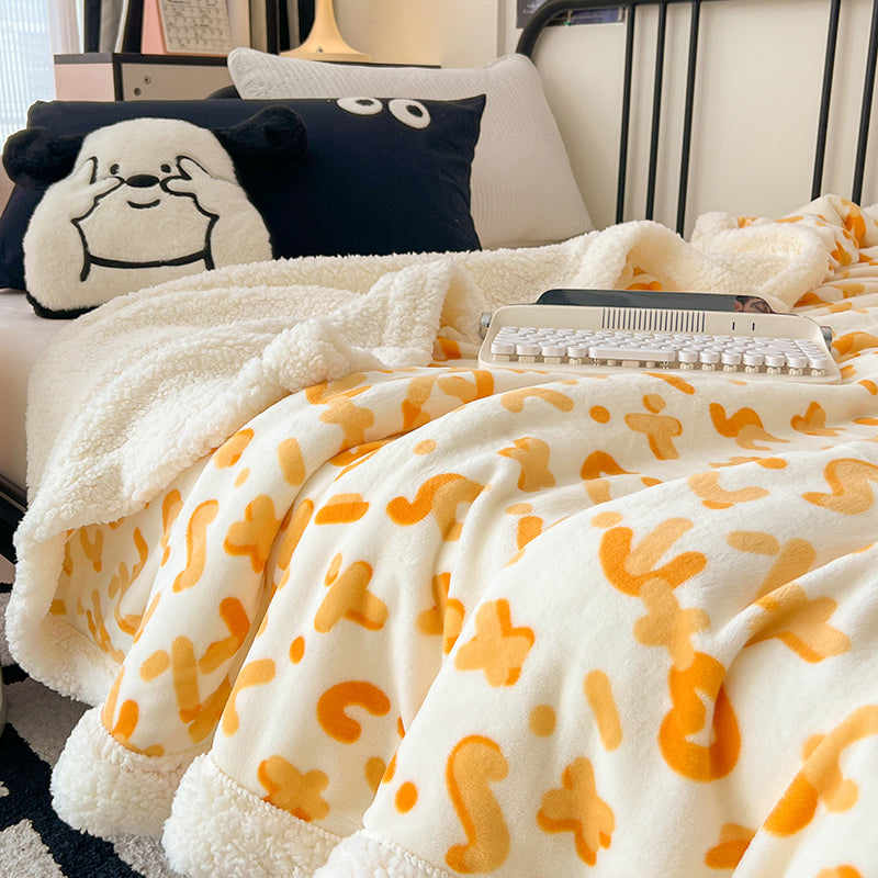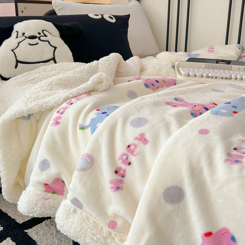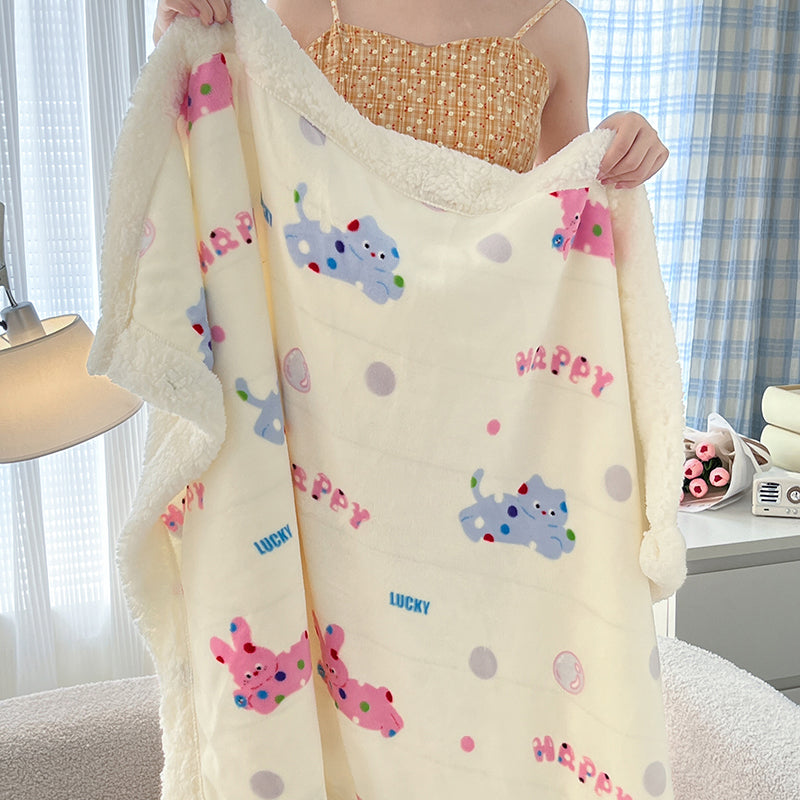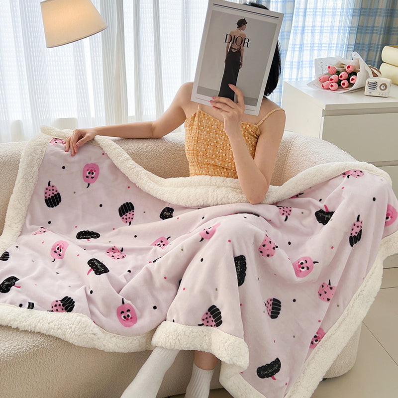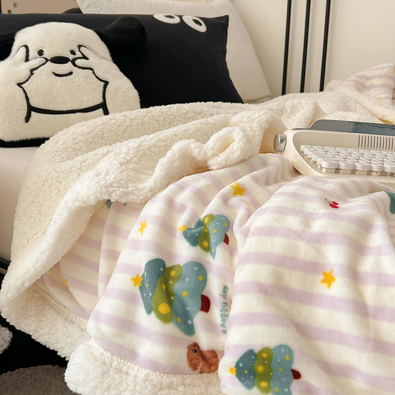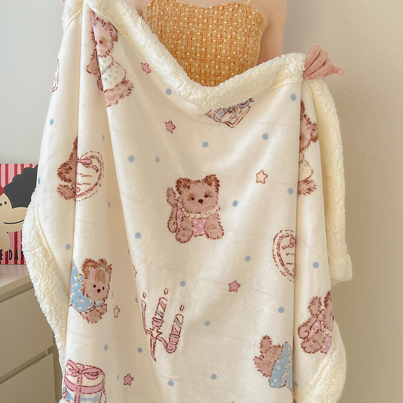 Мягкое и двустороннее одеяло из молочного флиса и искусственной шерсти с мультяшным дизайном. Многофункционально: используется как плед, коленный плед, шаль или покрывало для дивана. Подходит для студентов, дома и общежитий.