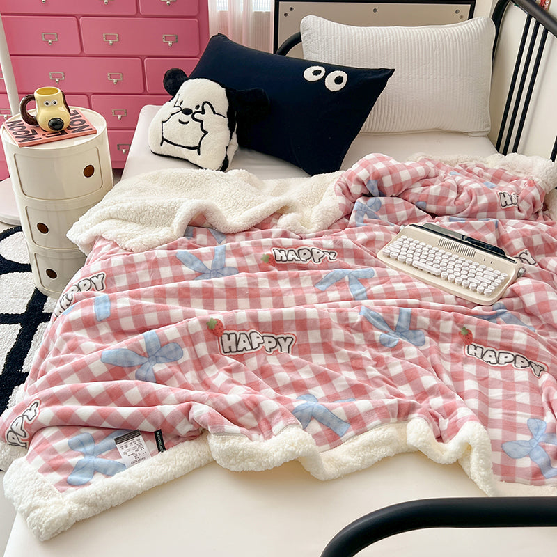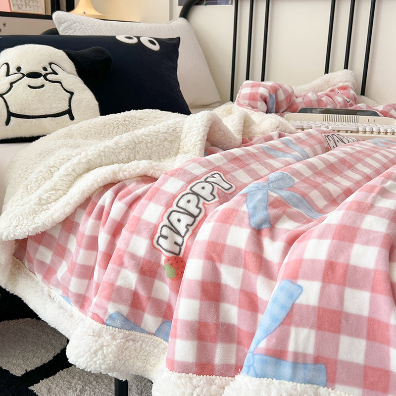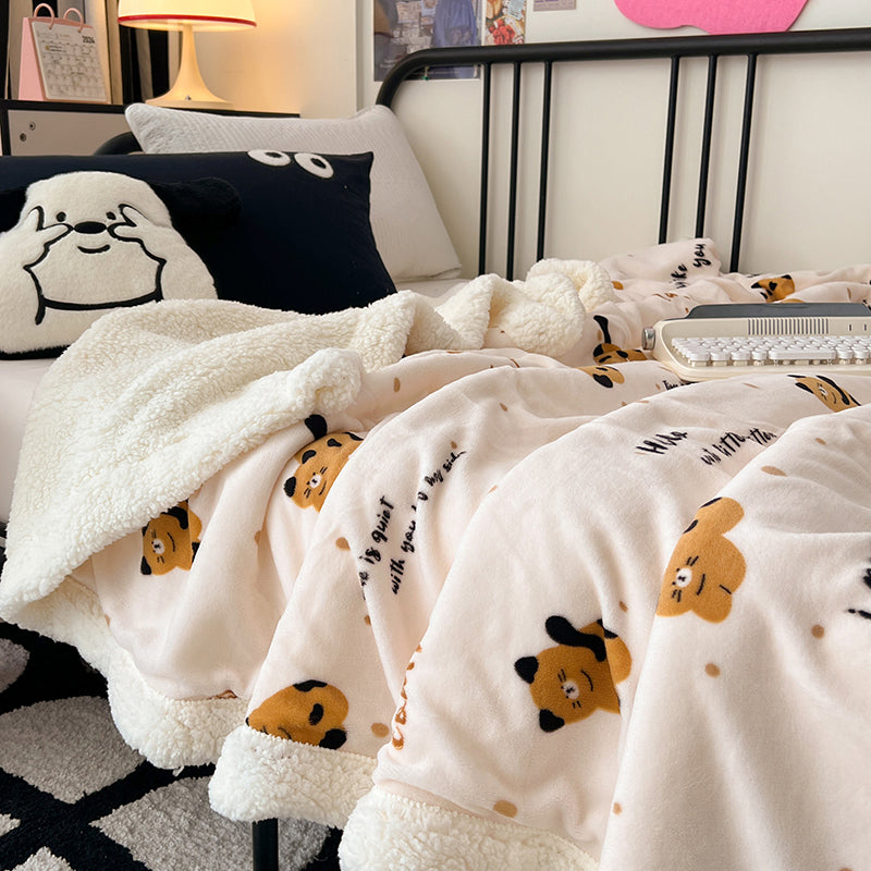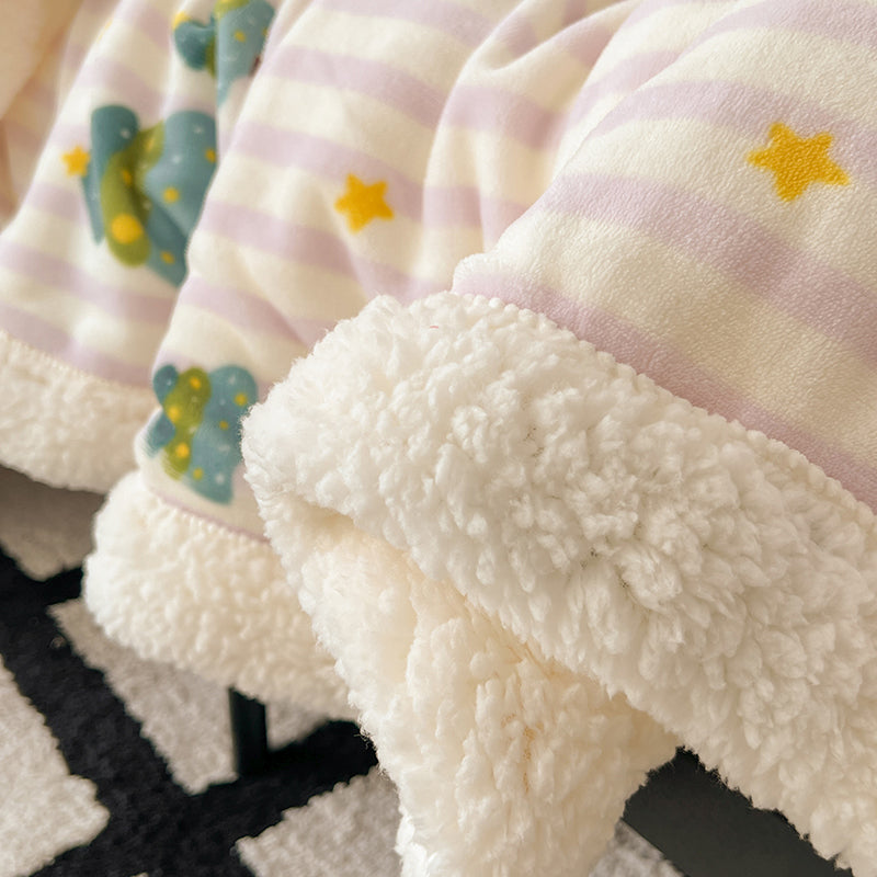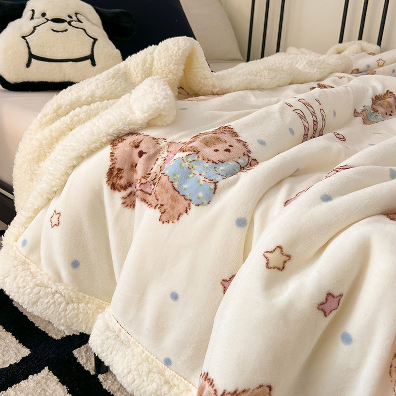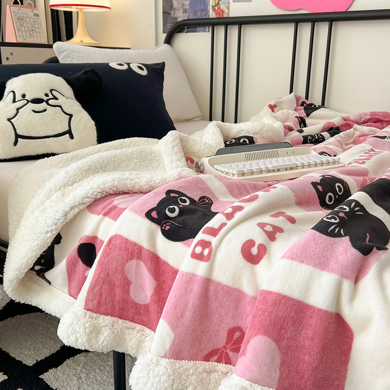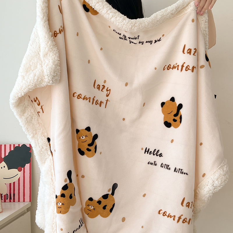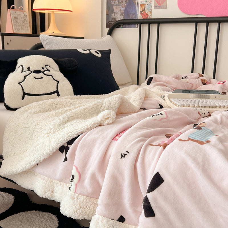 Мягкое и двустороннее одеяло из молочного флиса и искусственной шерсти с мультяшным дизайном. Многофункционально: используется как плед, коленный плед, шаль или покрывало для дивана. Подходит для студентов, дома и общежитий.