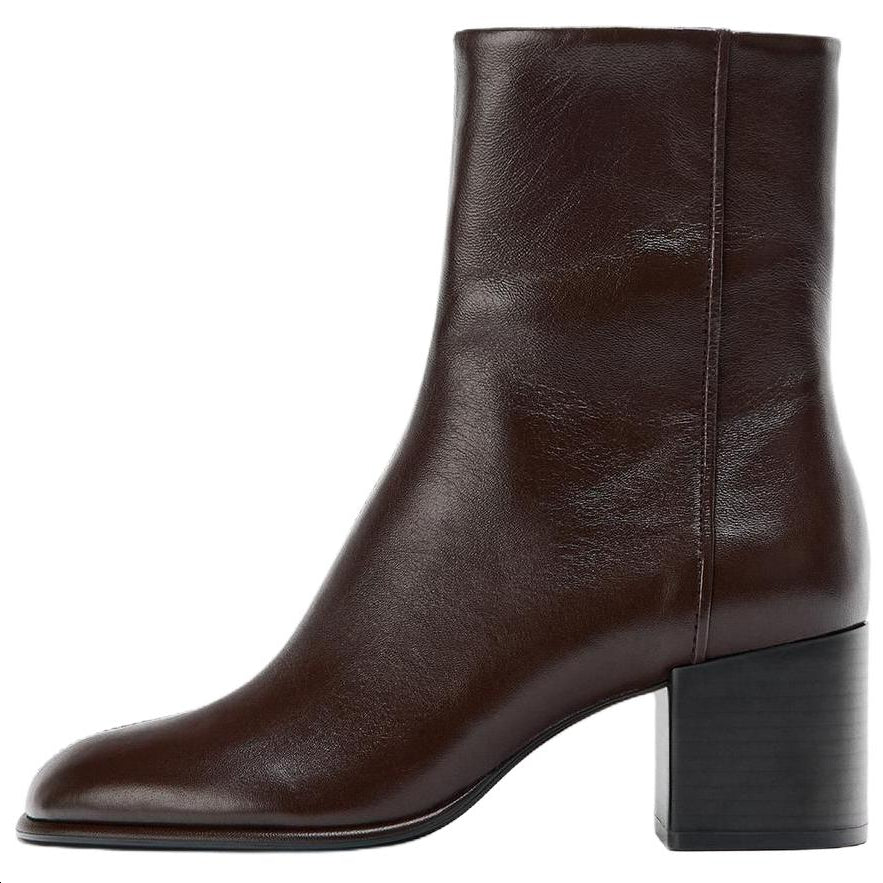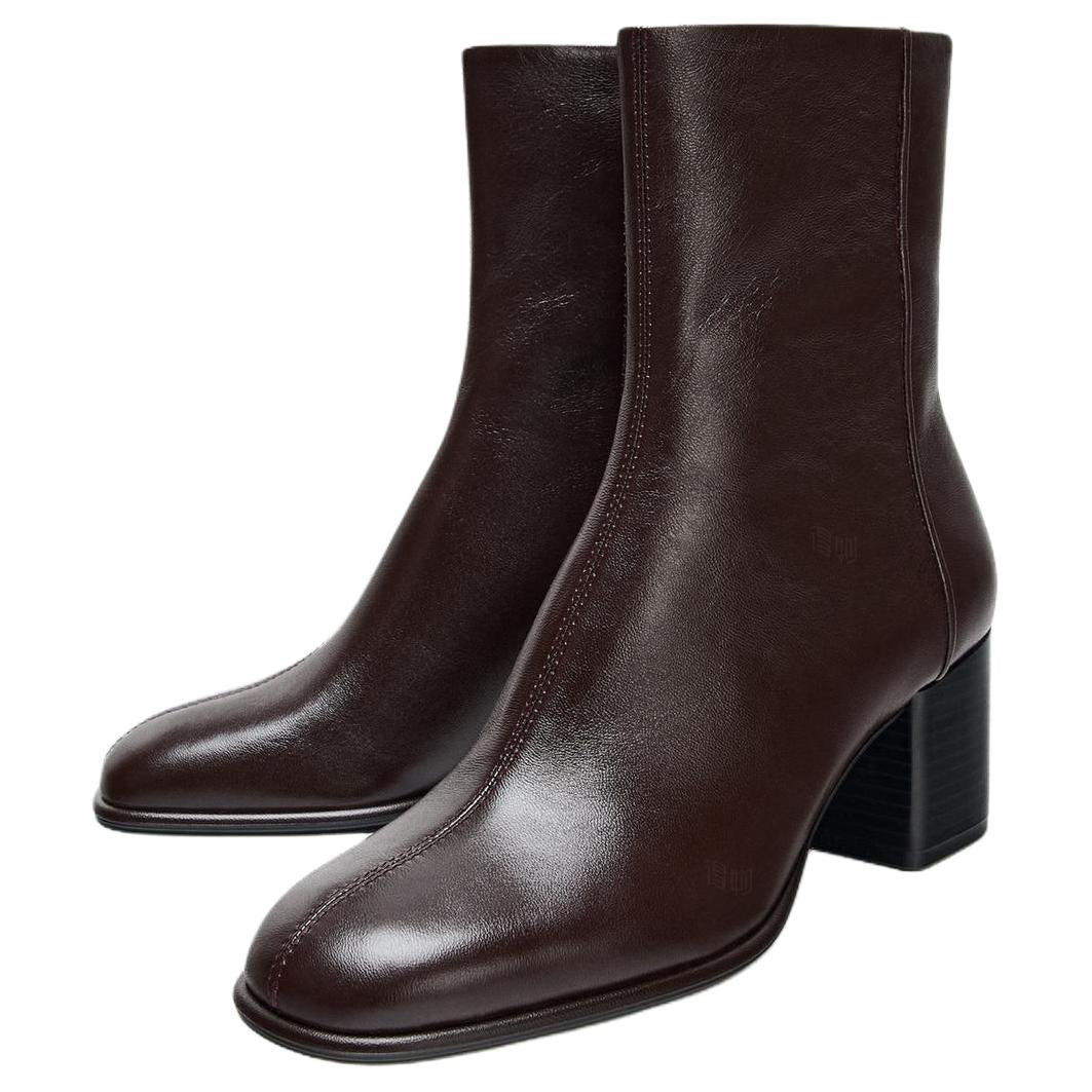 Короткие ботинки с круглым носком и застежкой-молнией, выполненные из натуральной овчины с каблуком 6 см. Подходят для осени и зимы, обеспечивая комфорт, тепло и стильный повседневный образ.