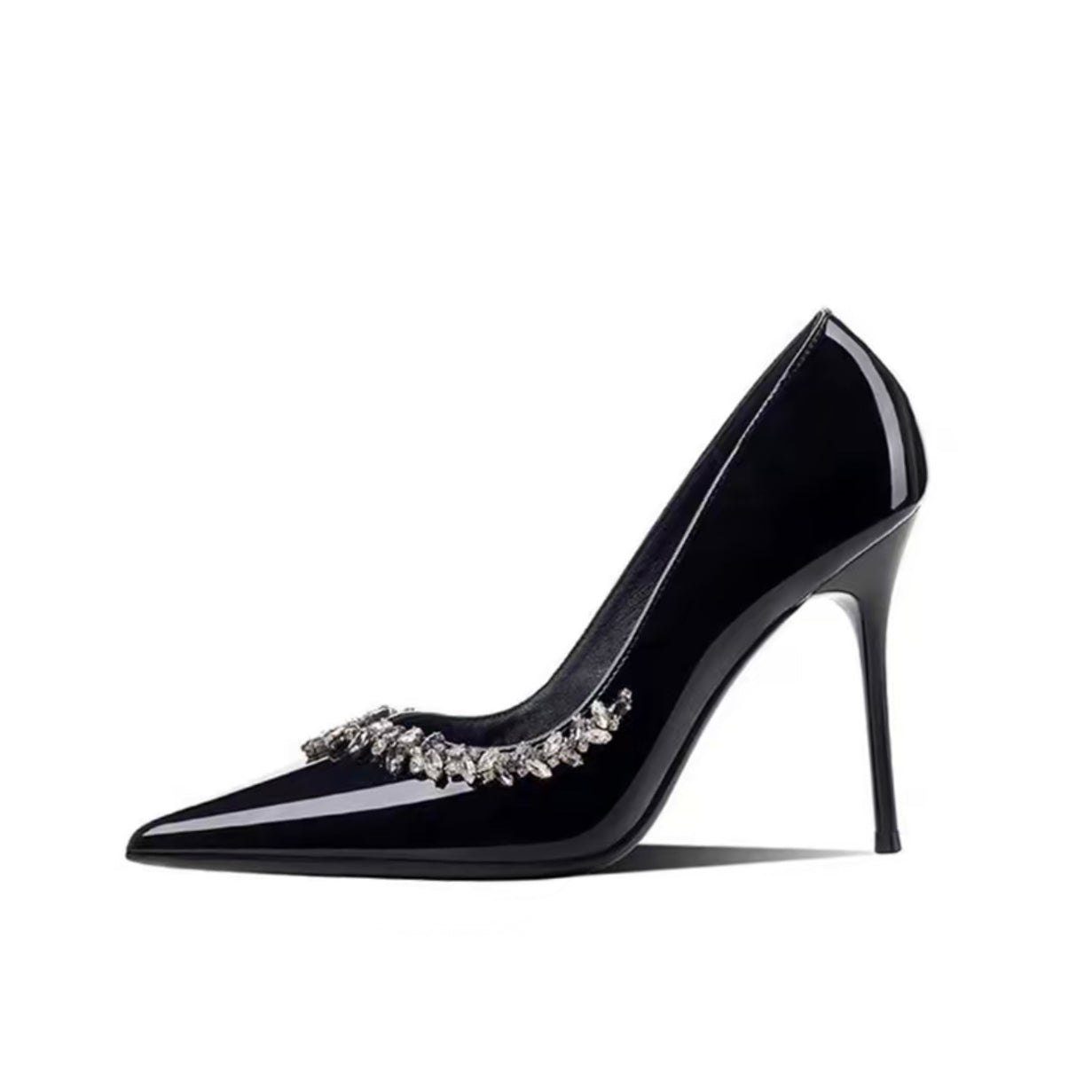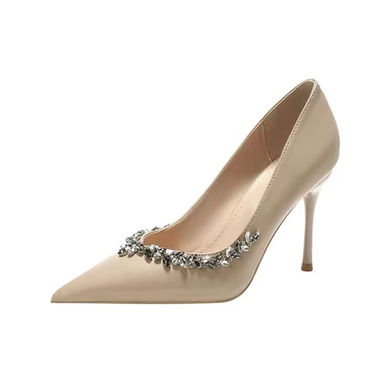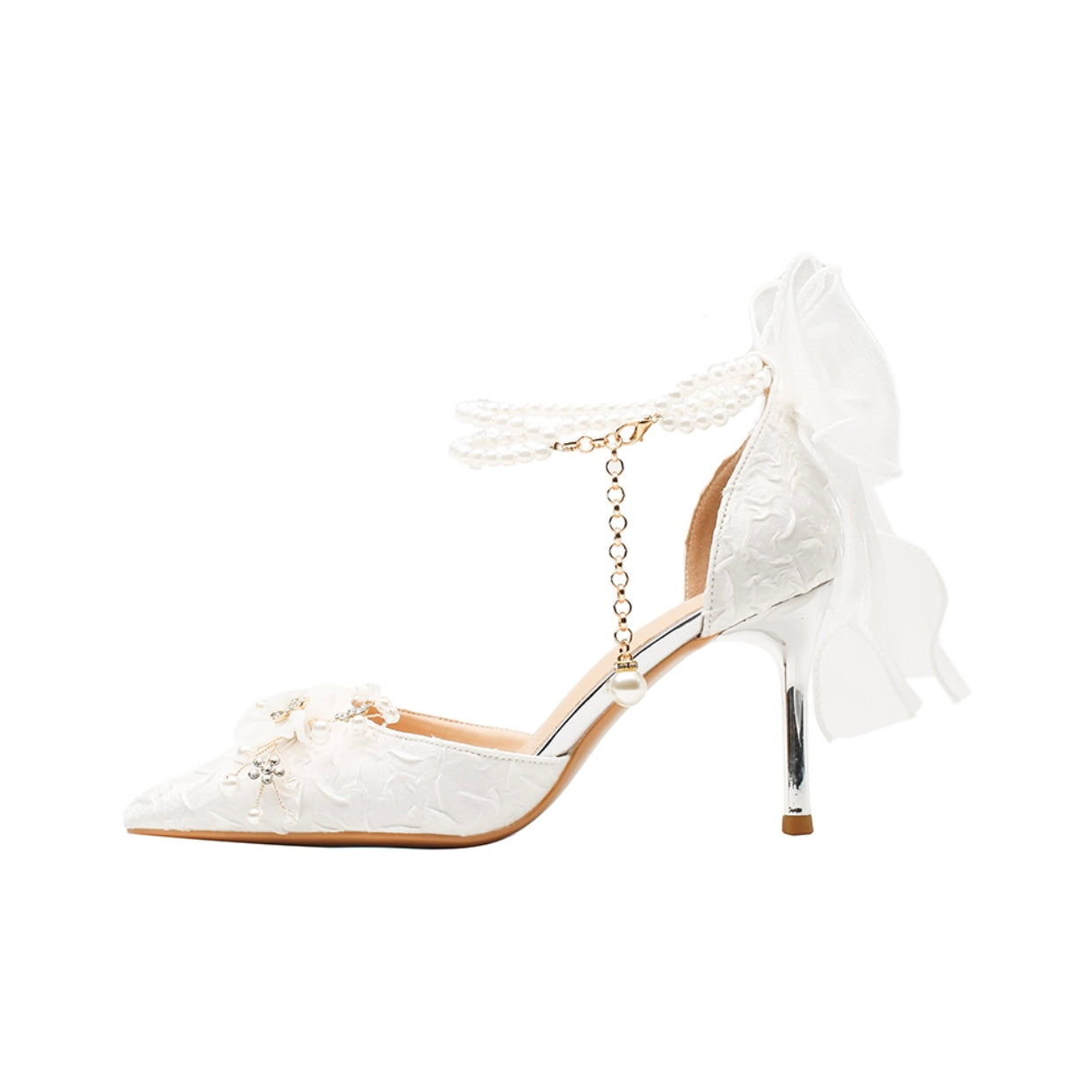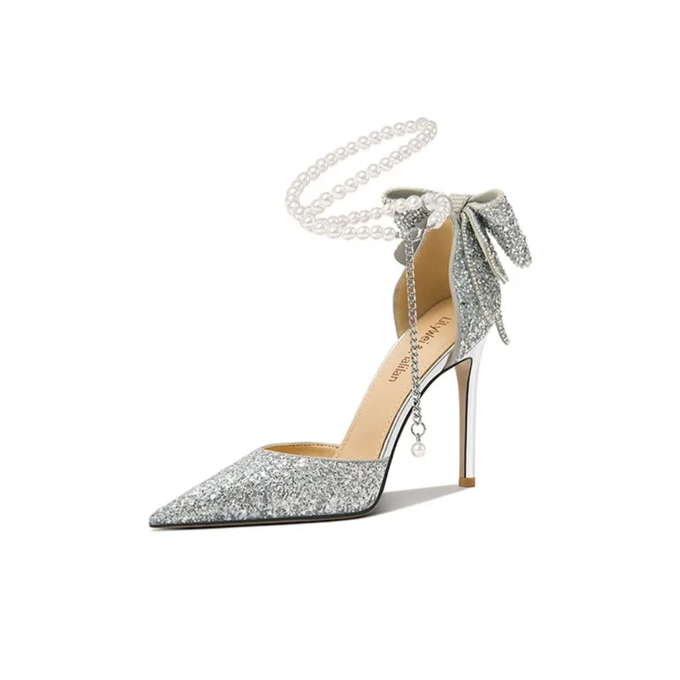 Cherry&kalika микрофибра кожа темперамент сто матч мода заостренный жемчуг цепь кристалл французский высокий класс смысл тонкий каблук высокие каблуки женские серебро