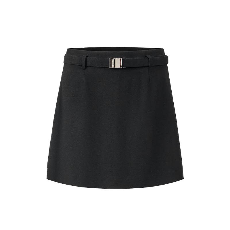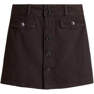 Qisqa, baland belli A-line jinsi yubka. Oddiy va qulay, kundalik kiyim va zamonaviy shahar ko'rinishi uchun juda mos keladi.