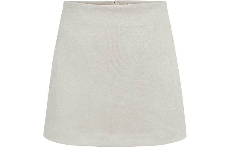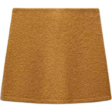 Qum rangidagi kalta, yuqori belli baxmal peplum yubka. Zamonaviy va qulay, kundalik kiyim uchun juda mos keladi.
