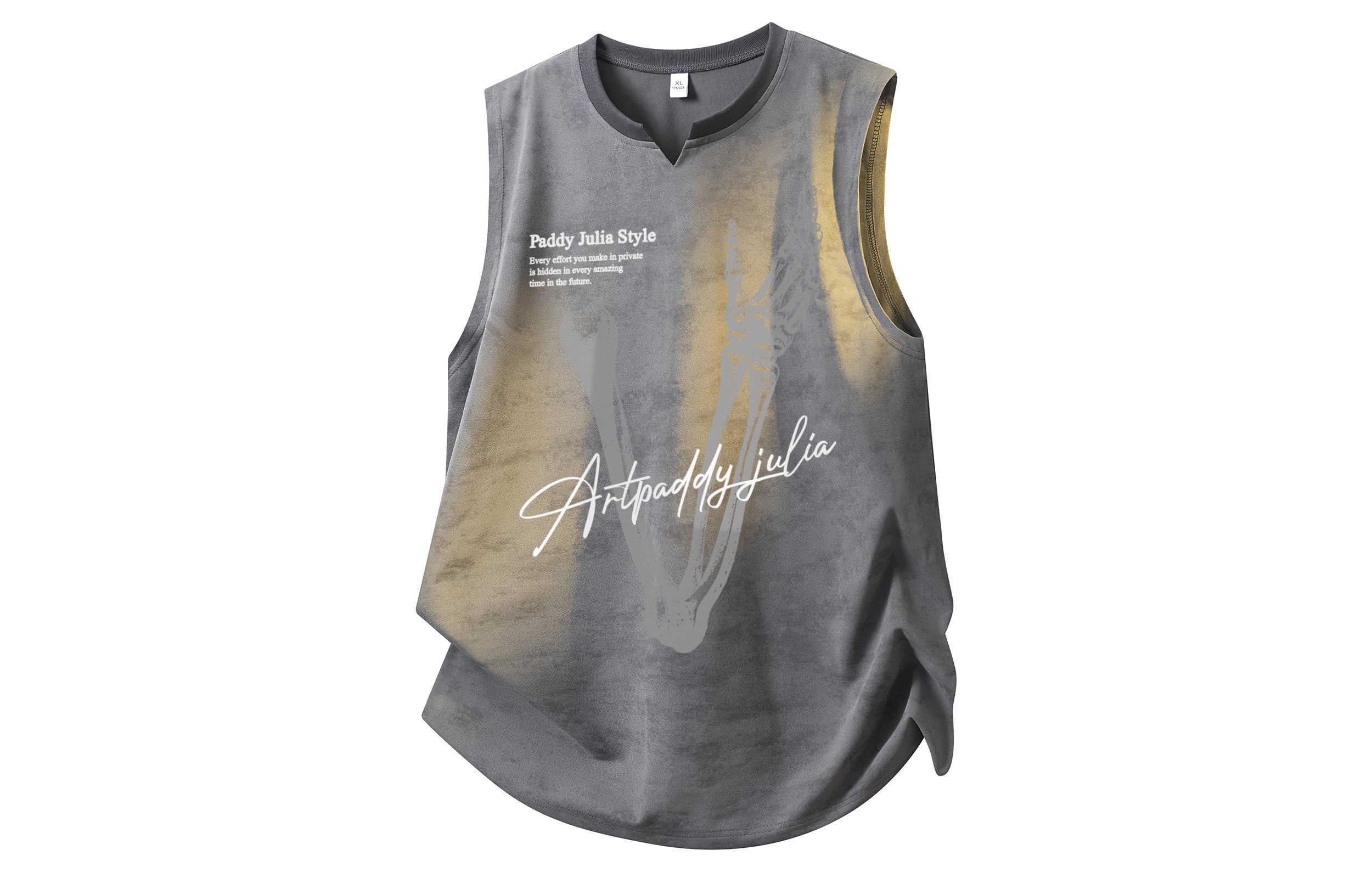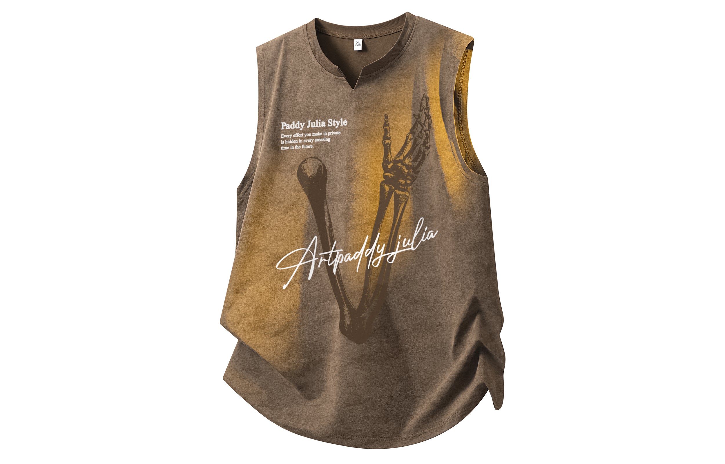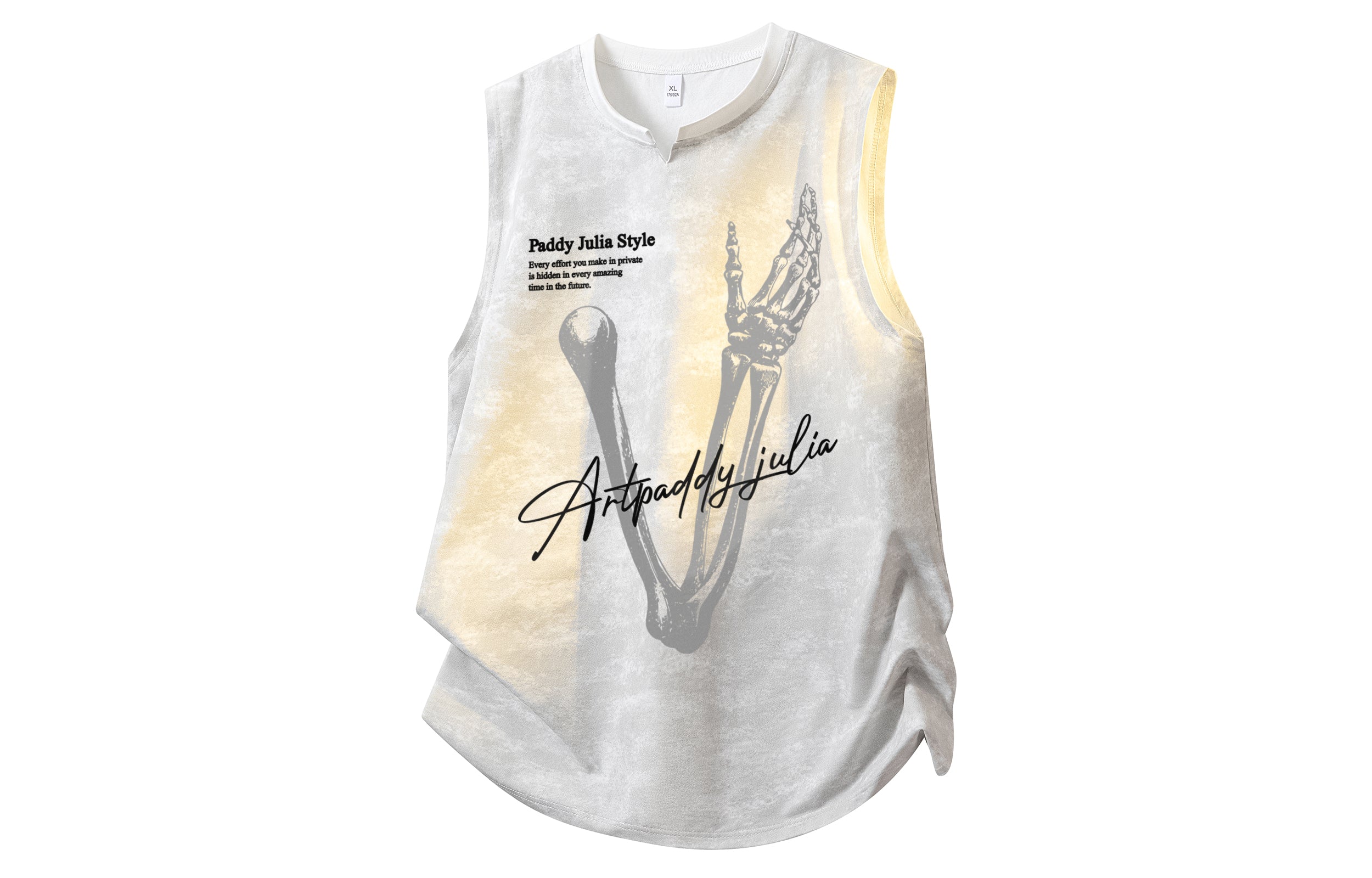 Paddy Julia Amerika oddiy oddiy ko'p qirrali tendentsiya yumaloq bo'yinli suyak harfli bosma logotip tetiklantiruvchi nafas oladigan yengsiz yelek modellari bilan erkaklar va ayollar