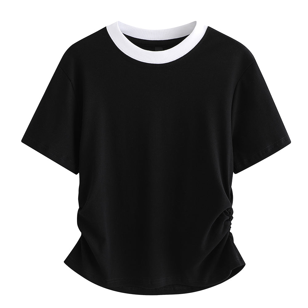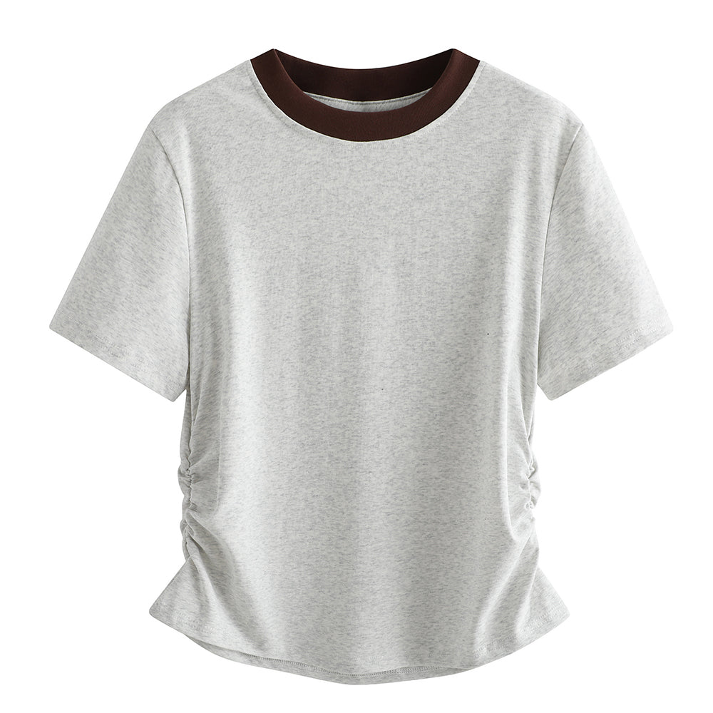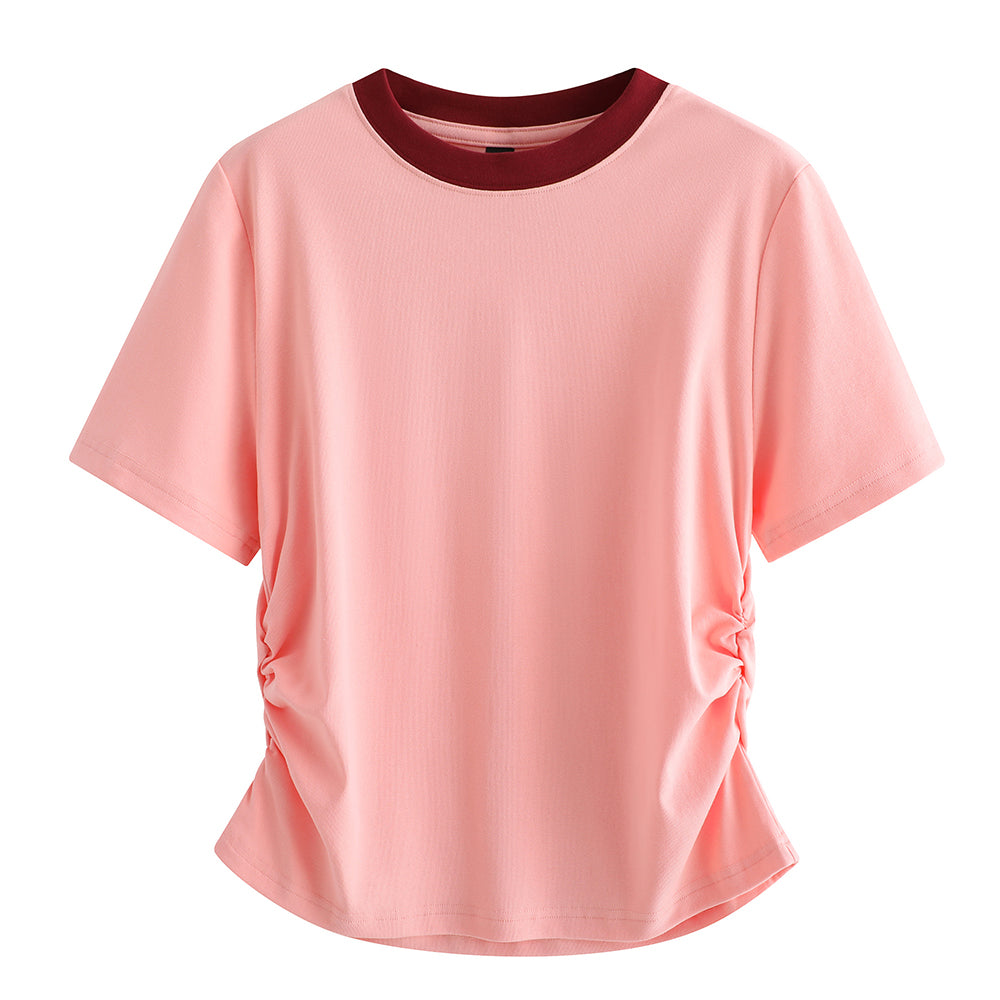 Pal ongaco pal ongaco Amerika ins trend to'qnashuvi qovurg'ali yoqa cho'zilgan bel nozik nozik shirin chili qisqa ekipaj bo'yinli qisqa yengli futbolka ayollar