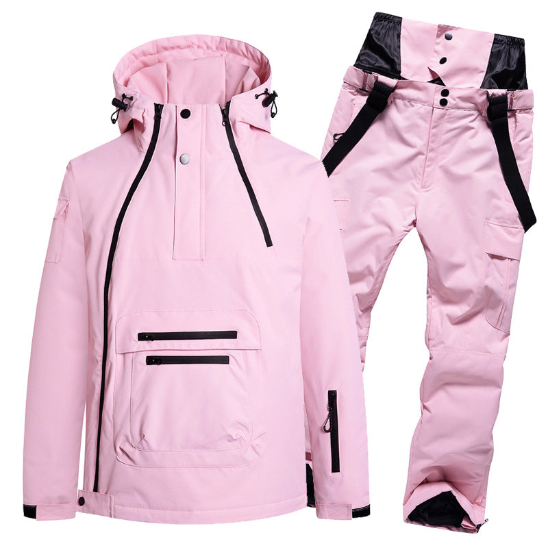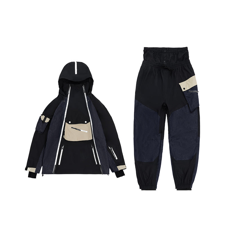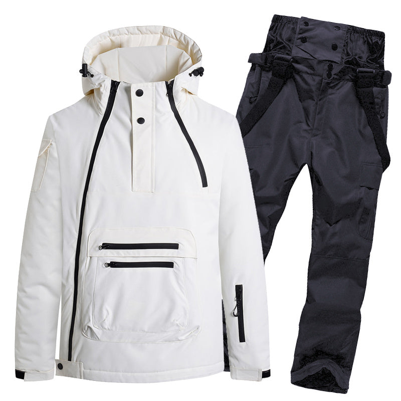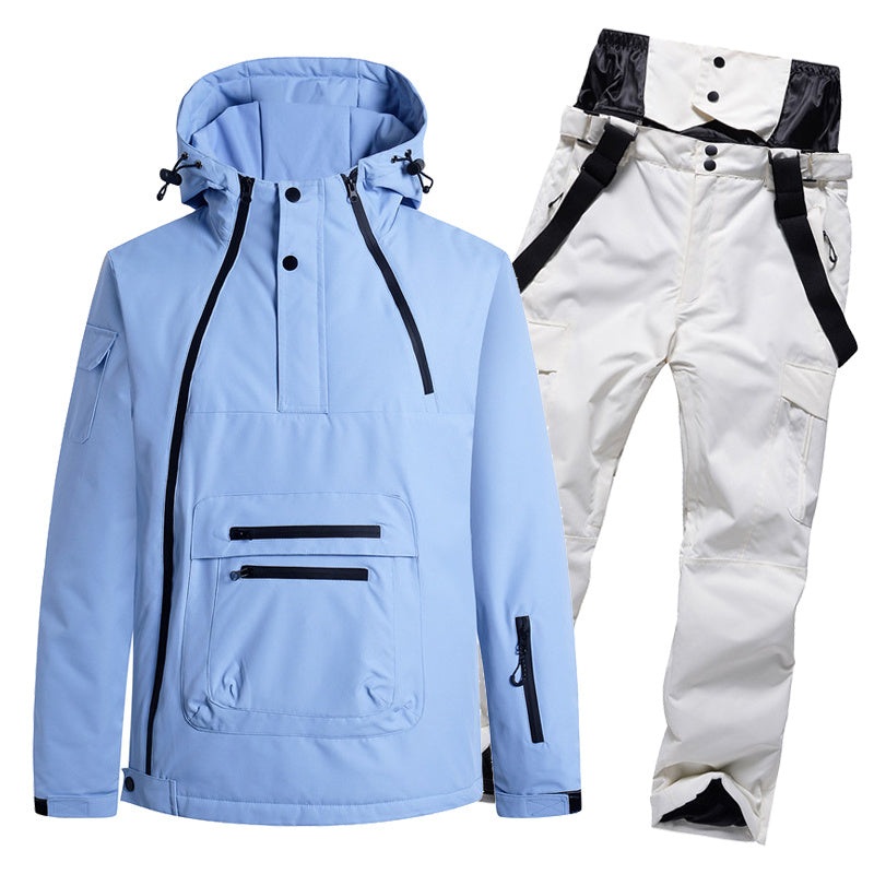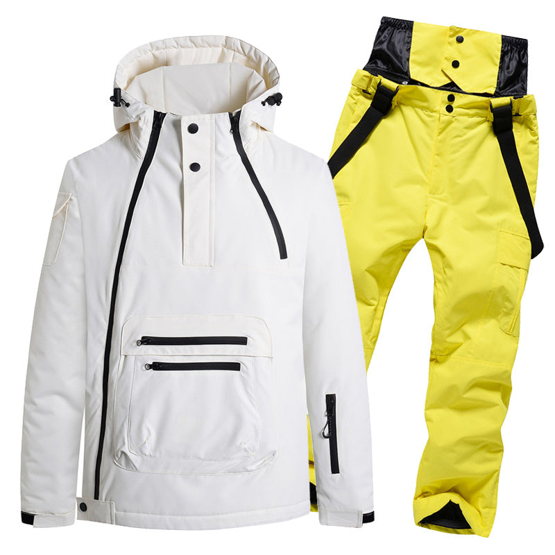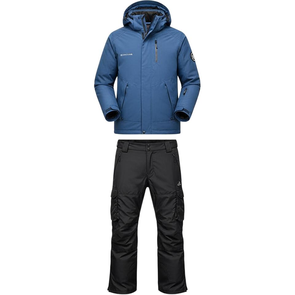 Shamol o'tkazmaydigan va nafas oladigan kurtka hamda keng oyoqli shimlardan iborat ko'p qirrali chang'i kostyumi, chang'i va snoubord uchun mos...