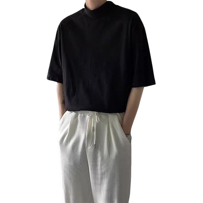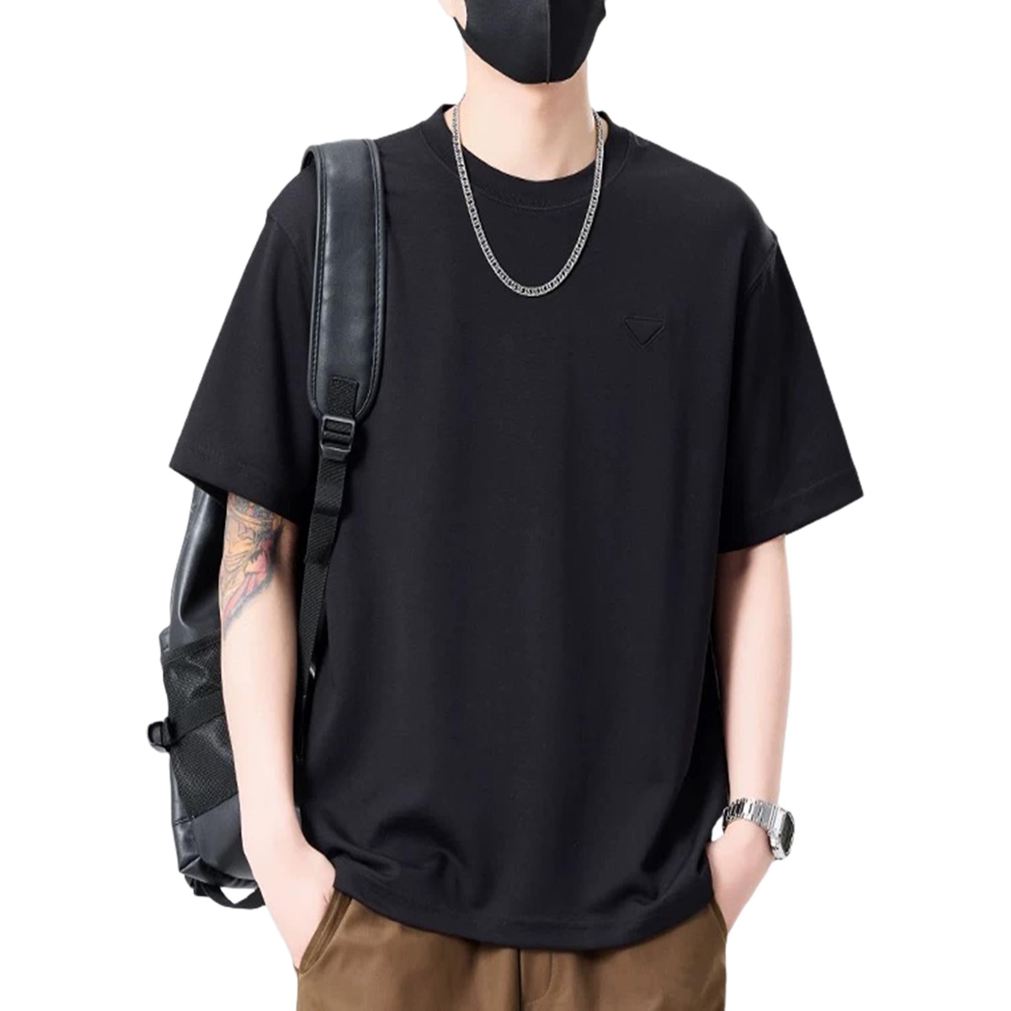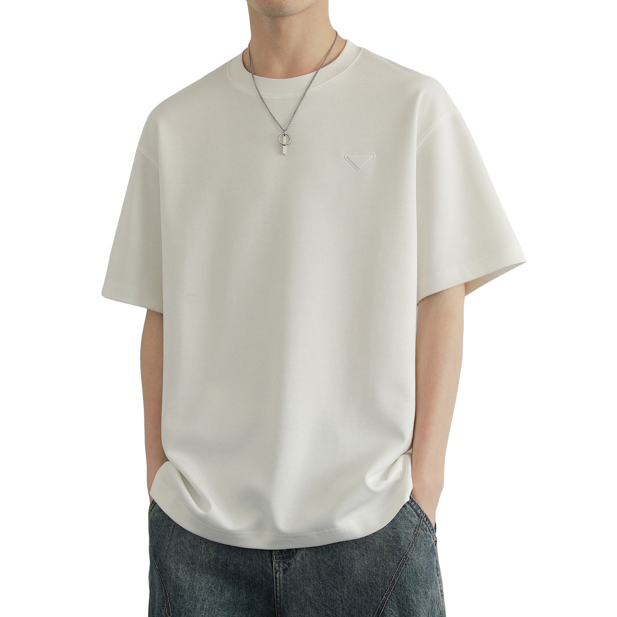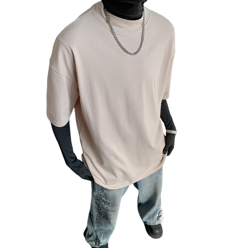 Og'ir paxtadan tikilgan, yumaloq bo'yinli va kalta yengli keng futbolka. Minimalist uslubda kundalik kiyim uchun juda mos keladi.