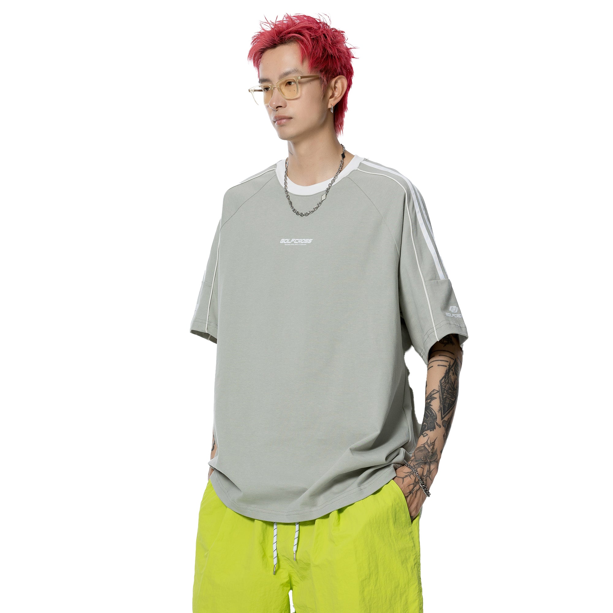 Ofisga qarshi san'at va madaniyat uslubi Amerika engil hashamatli biznes tasodifiy shahar yoshlari bir tekis rang oddiy moda universal dizayn yengi bo'sh kalta yengli futbolka erkaklar modellari