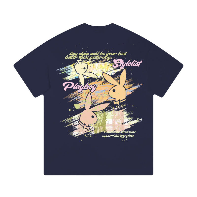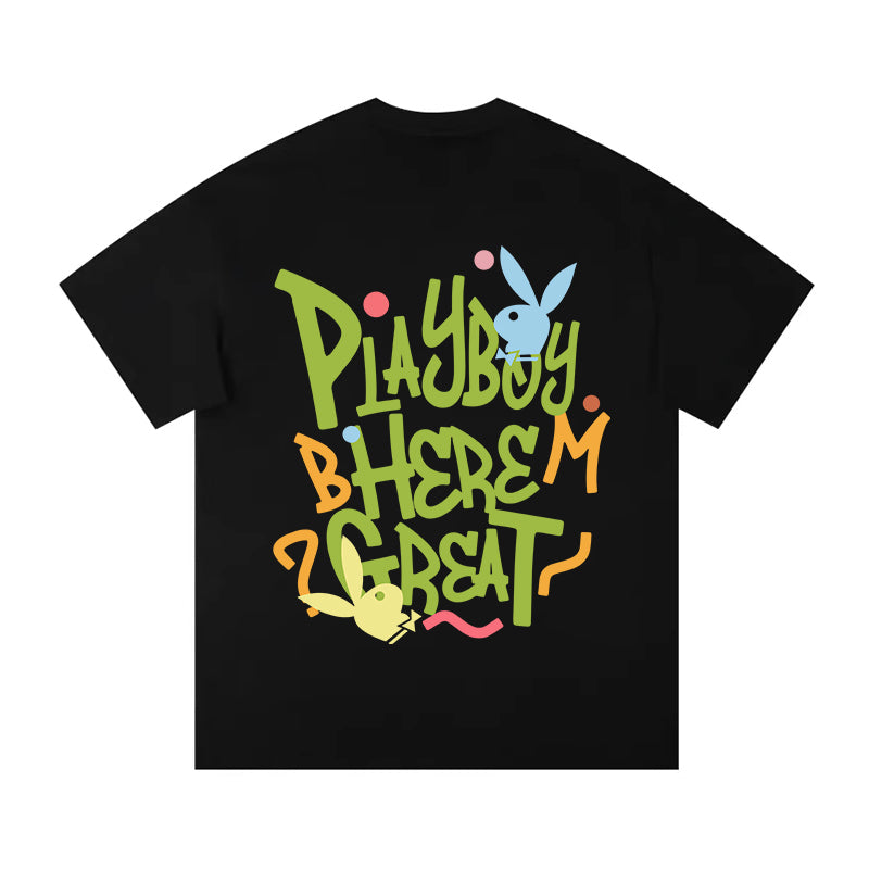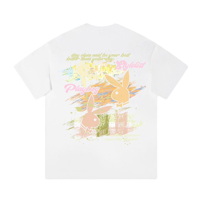 Playboy moda trendi erkaklar va ayollar uchun qisqa yengli futbolka