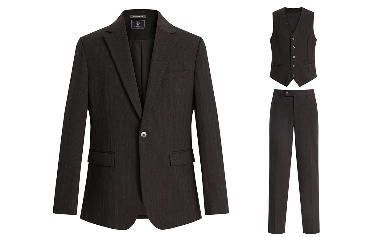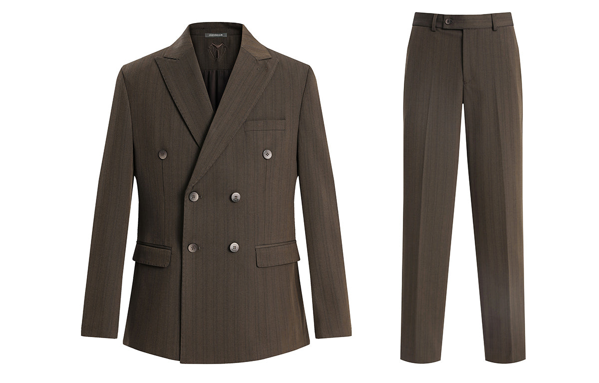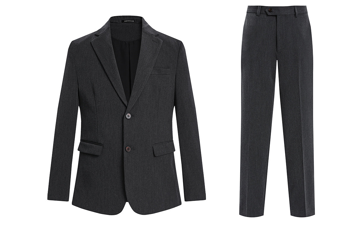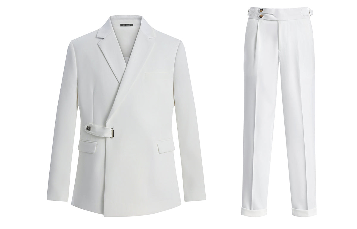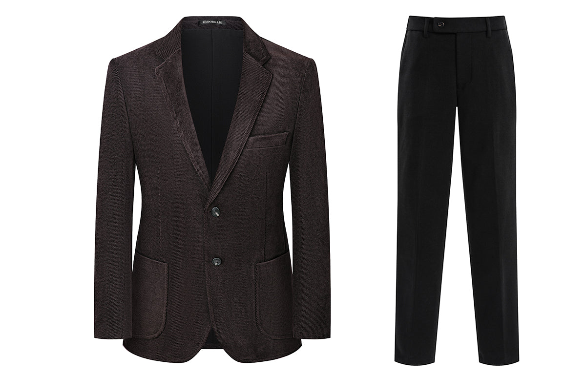Skaro kostyumi bir ko'krakli dizaynga ega bo'lib, tishli lapellar va qo'shaloq teshikka ega bo'lib, uni biznes uchrashuvlari va rasmiy tadbirlar...