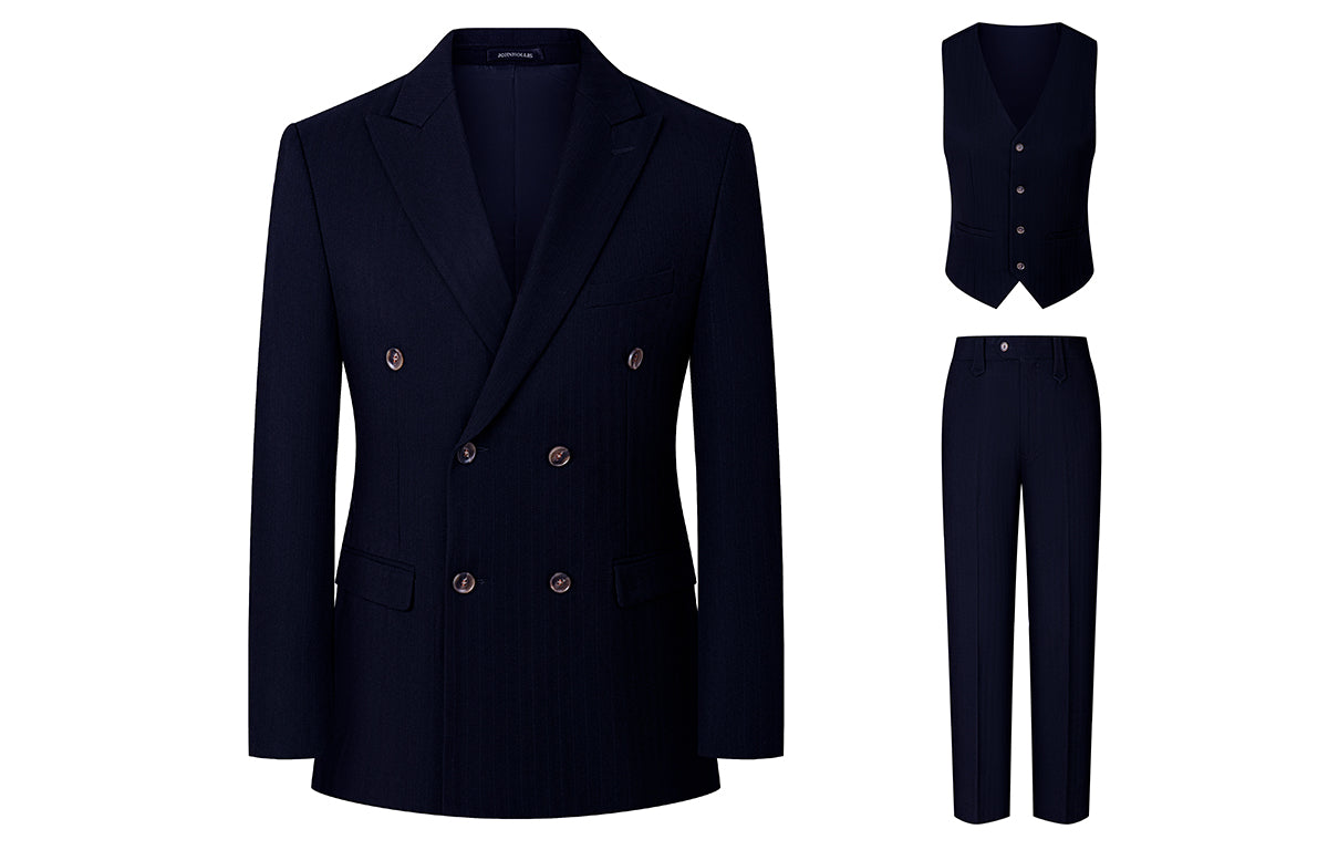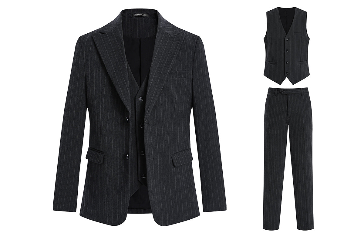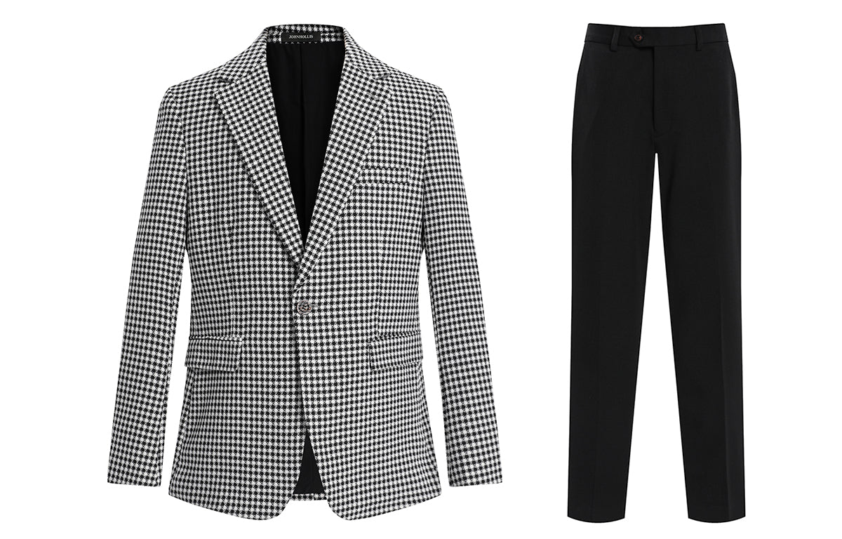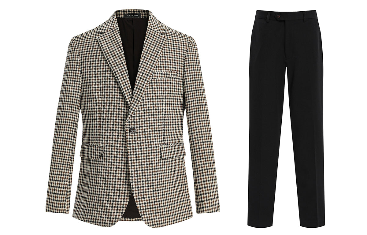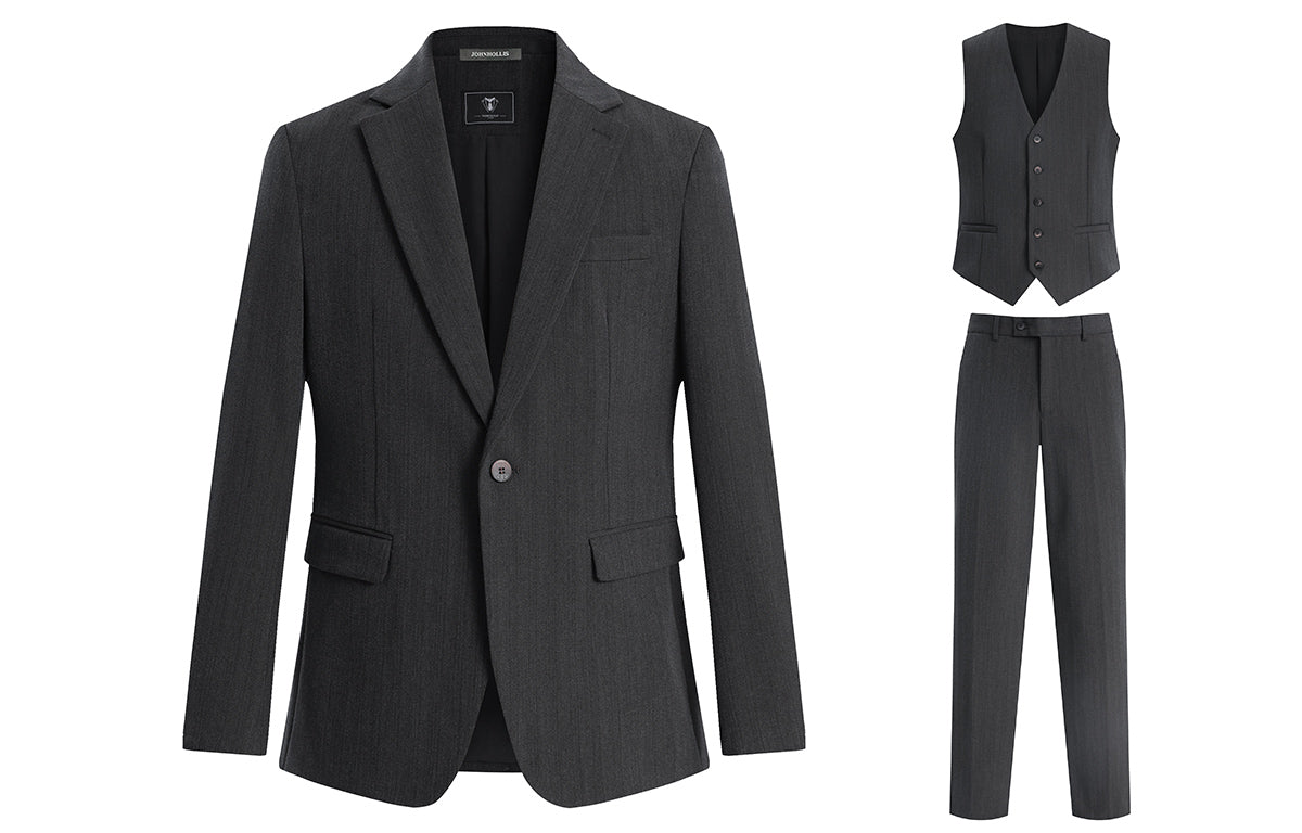 Skaro kostyumi bir ko'krakli dizaynga ega bo'lib, tishli lapellar va qo'shaloq teshikka ega bo'lib, uni biznes uchrashuvlari va rasmiy tadbirlar...