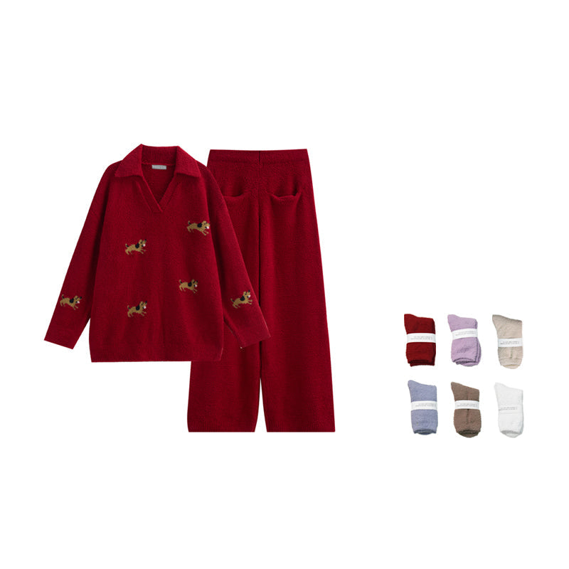 Qizil shimlar bilan jihozlangan bu jonli, uzun yengli dam olish xonasi qalin poliesterdan tayyorlangan, qulay va yumshoq, kuz va qish...