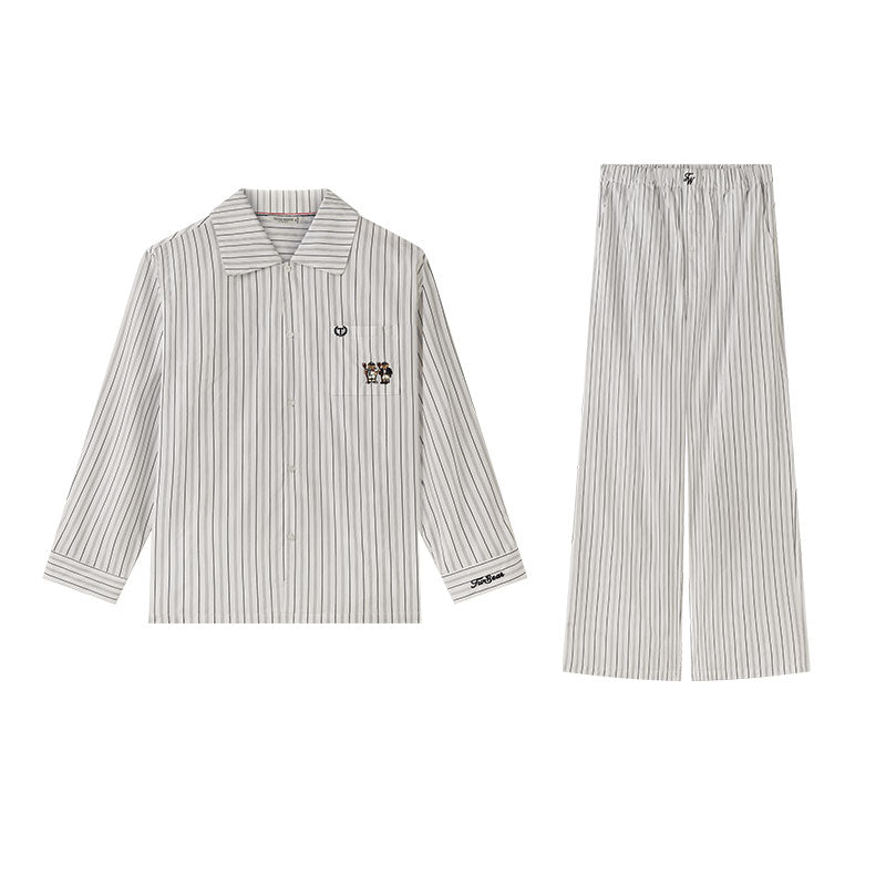 Shim va chiziqli multfilm nashri bilan shinam, uzun yengli pijama to'plami. Erkaklar va ayollar uchun uyda dam olish uchun juda...