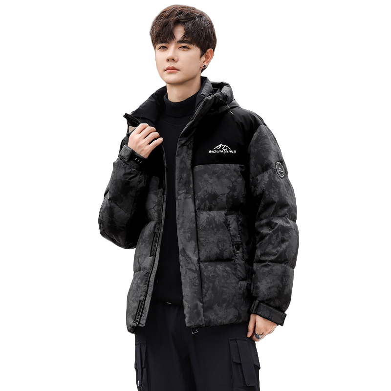 Ushbu kalta, zamonaviy koreyscha uslubdagi puffer kurtka kamuflyaj printi, kapshon va tushirilgan yelkalar bilan utilitar dizaynga ega. Ushbu o'rdak momig'i...