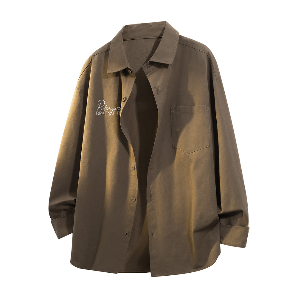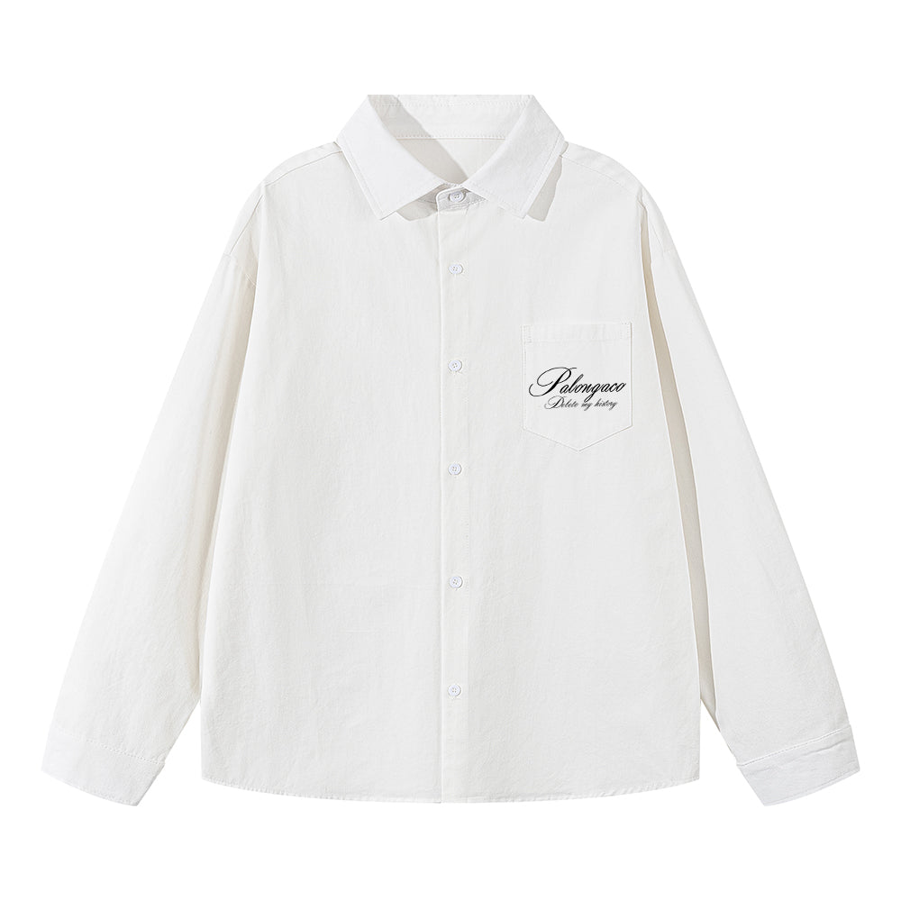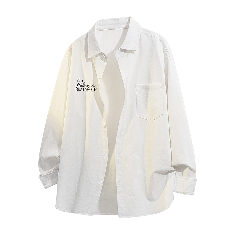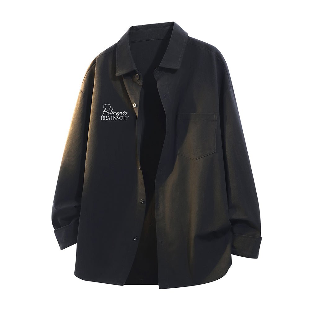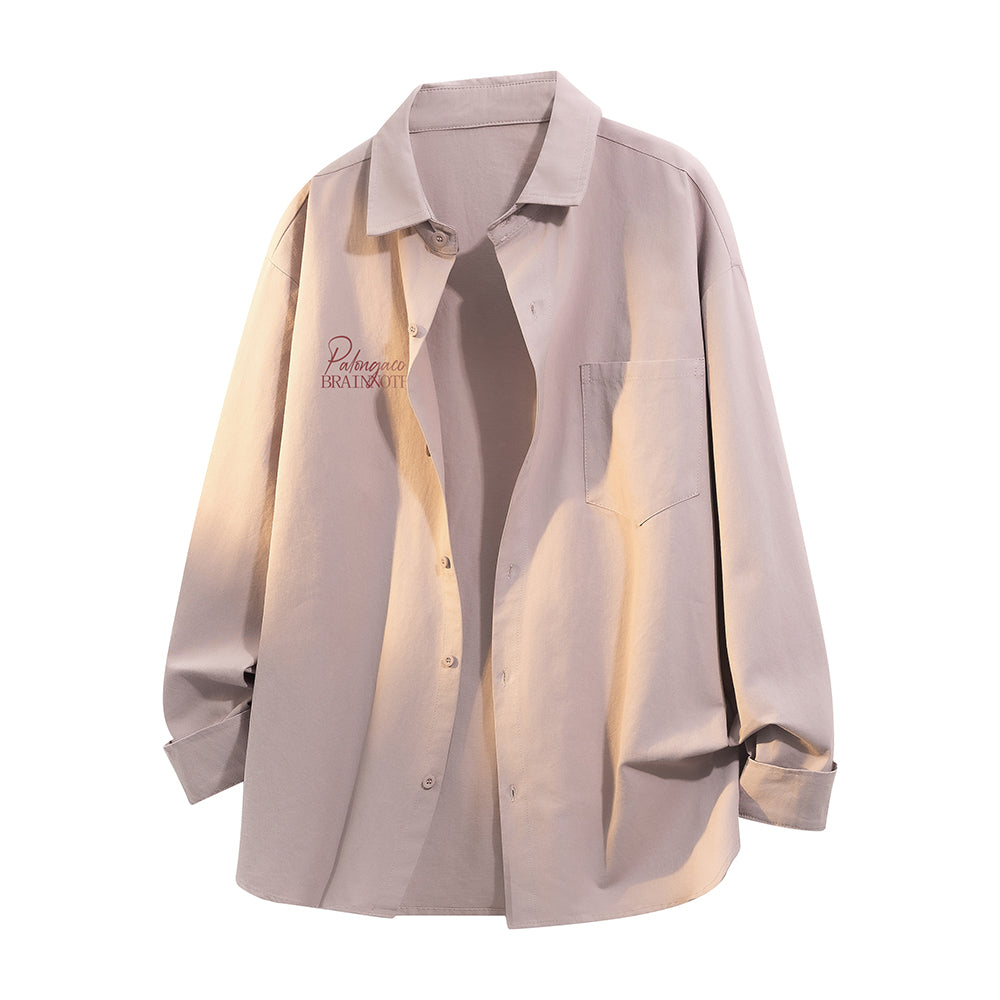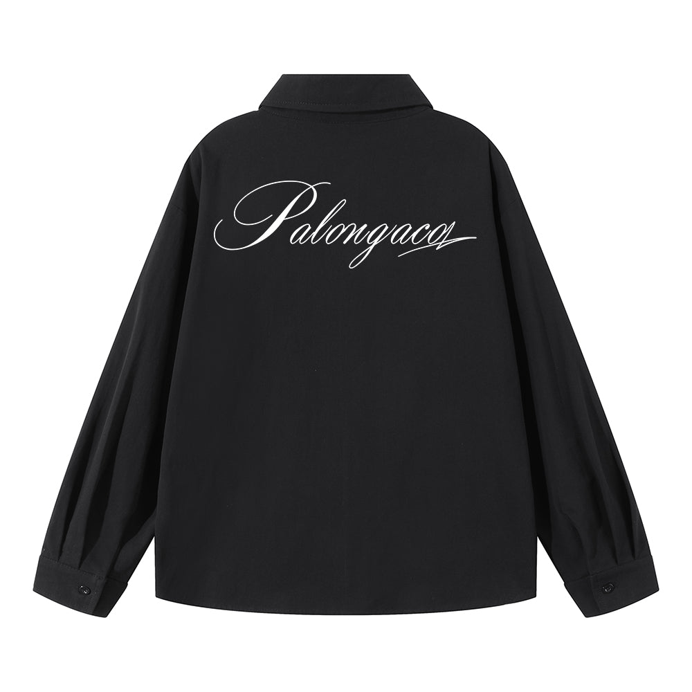 Pal ongaco pal ongaco Amerika yuqori ko'cha asosiy modellari oddiy sof paxta tanasi harflari brend logotipi bosma erkin tasodifiy universal koreys tekis rangli lapel uzun yengli ko'ylaklar bir xil modellar bilan erkaklar va ayollar