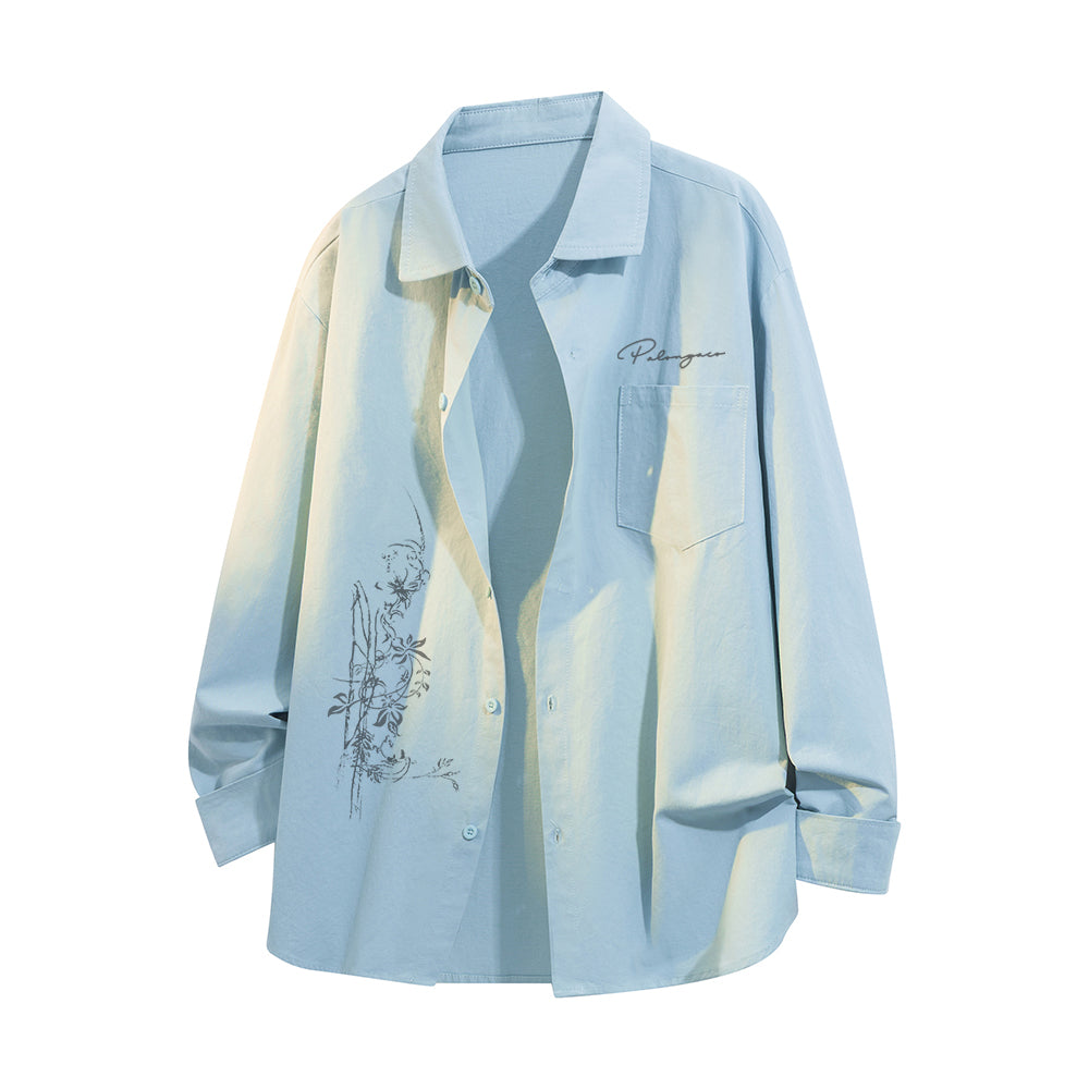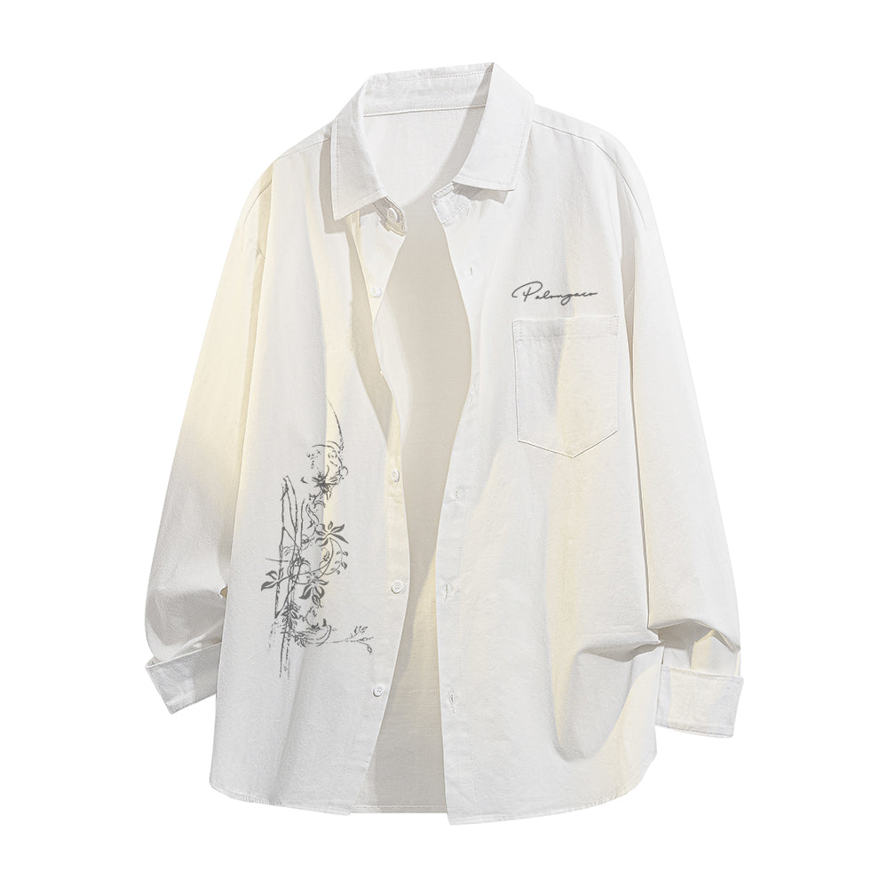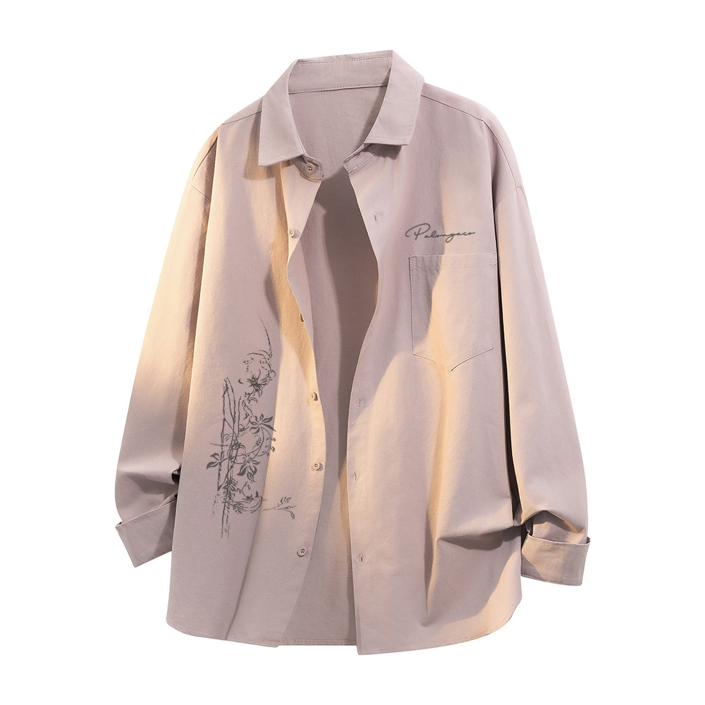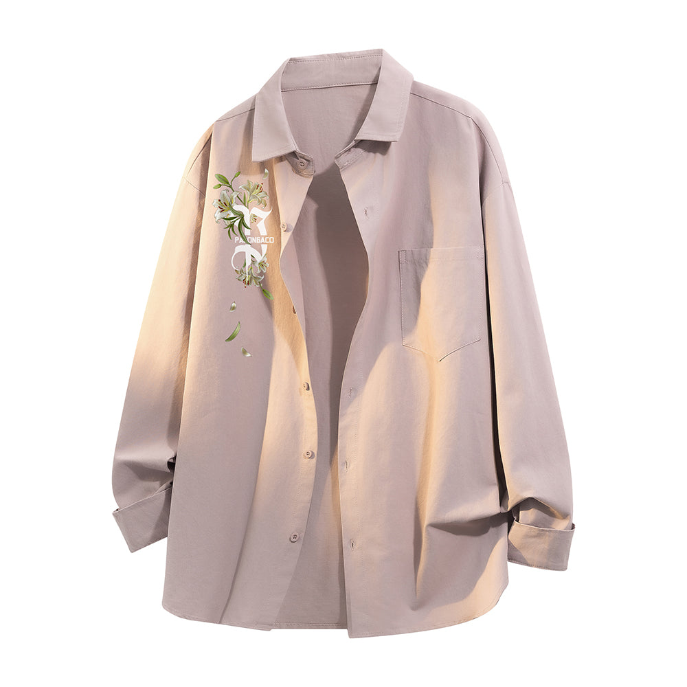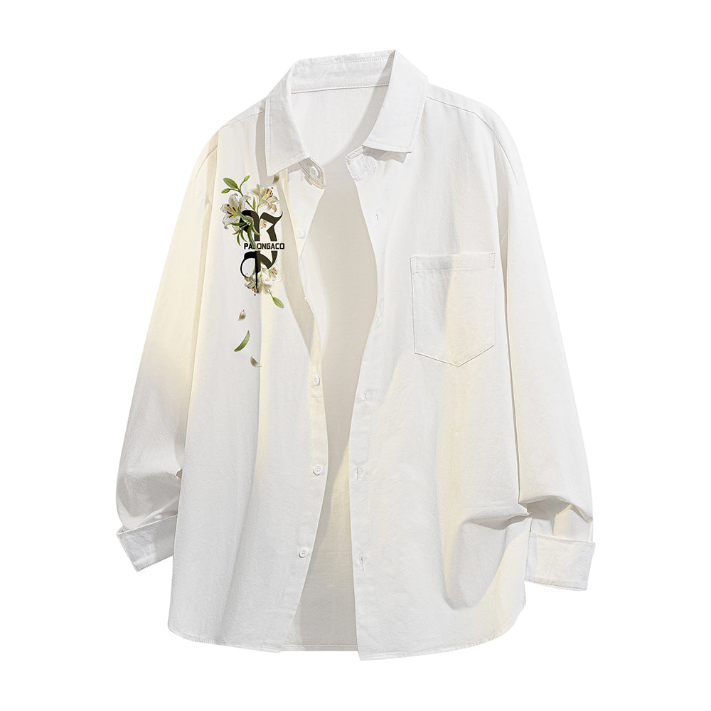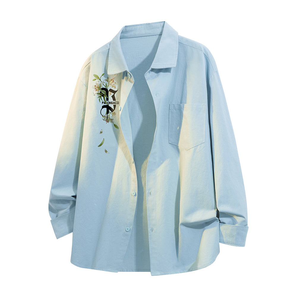 Pal ongaco pal ongaco Amerika retro jinssiz asosiy modellar harflar logotipi soxta kashtado'zlik o'simliklari gulli dizayn printlar oddiy lapel bo'shashmasdan qulay yelkalar paxta uzun yengli erkaklar va ayollar uchun ko'ylaklar