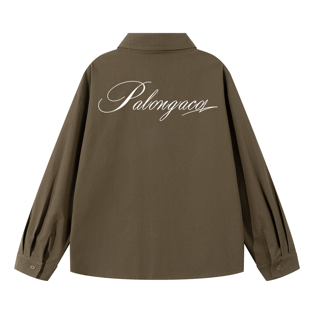 Pal ongaco pal ongaco Amerika retro qo'lyozma harflar logotipi bosma tasodifiy bo'sh uzun yengli ko'ylaklar lapel ko'ylagi bahor va kuz modellari chiroyli ko'p qirrali oddiy paxta ishchi ko'ylagi bir xil modeldagi erkaklar va ayollar