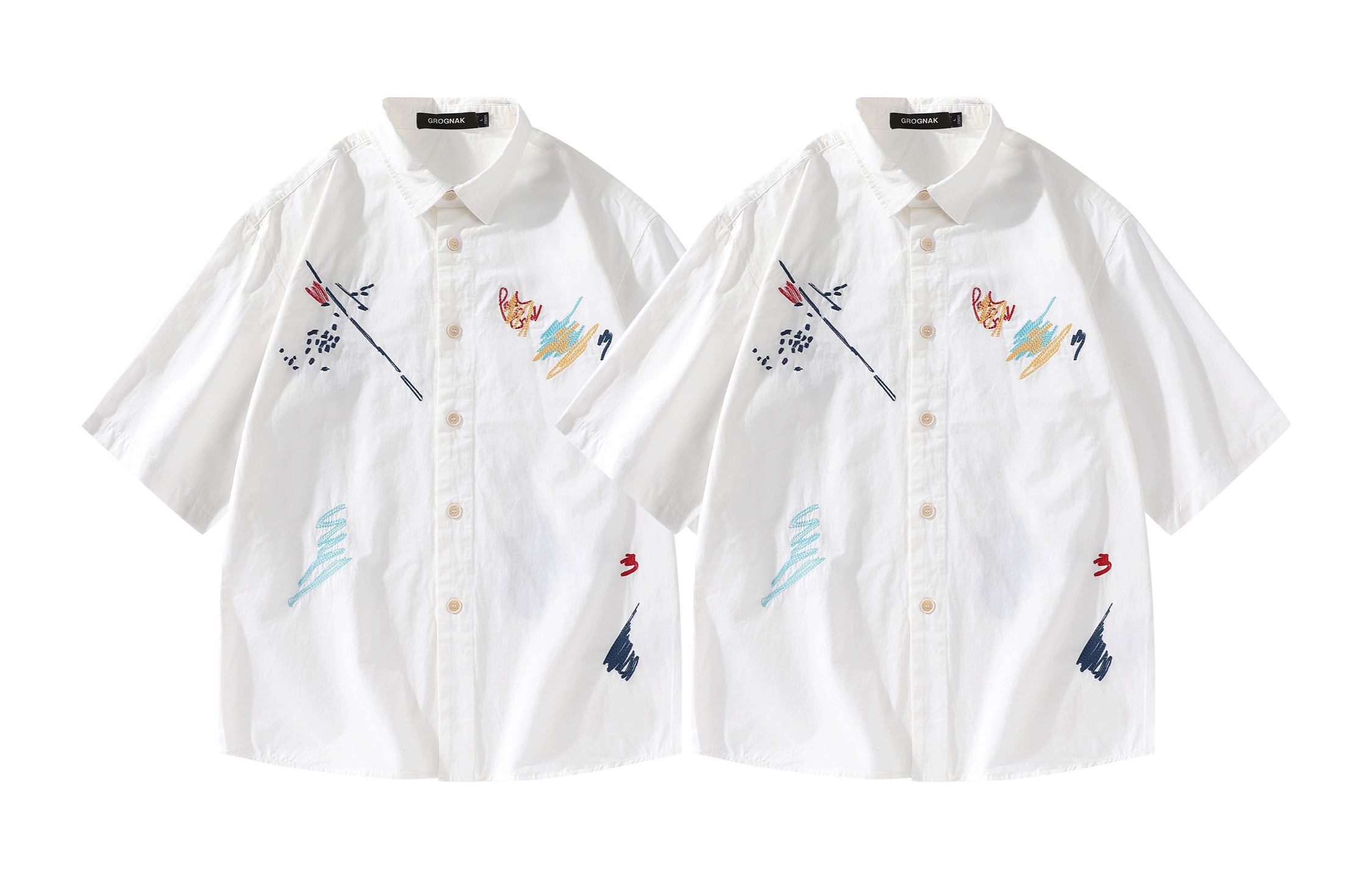 Pierre Cardin Pierre Cardin yangi milliy uslubdagi Xitoyning diskli tugmachali yengil hashamatli va oddiy qisqa yengli erkaklar ko'ylaklarining retro trendi