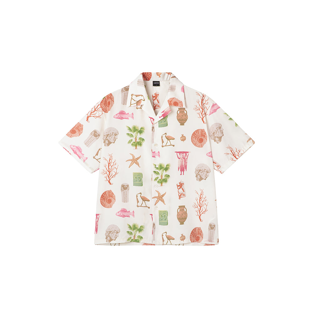 Рубашка свободного кроя в стиле "нового китайского стиля" с жаккардовым узором в виде пейзажа и заниженной линией плеча. Модель с...