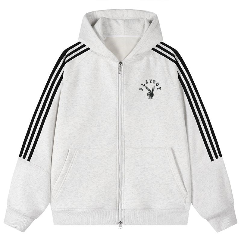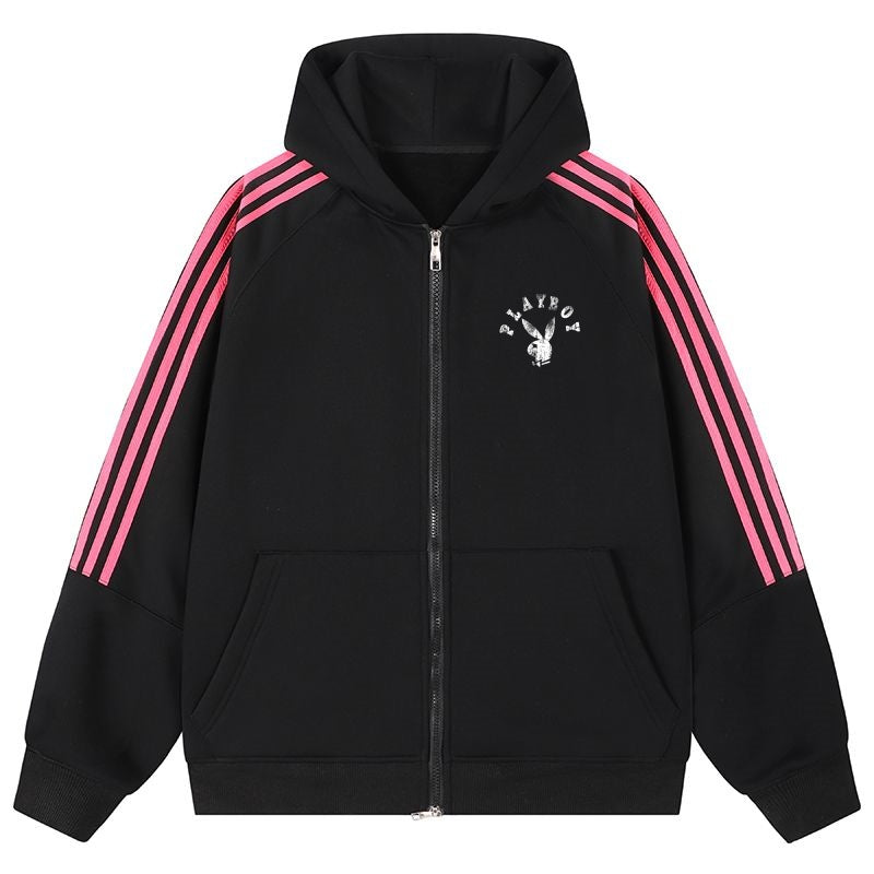 Playboy chiziqli kapshonli erkaklar sport kurtkasi