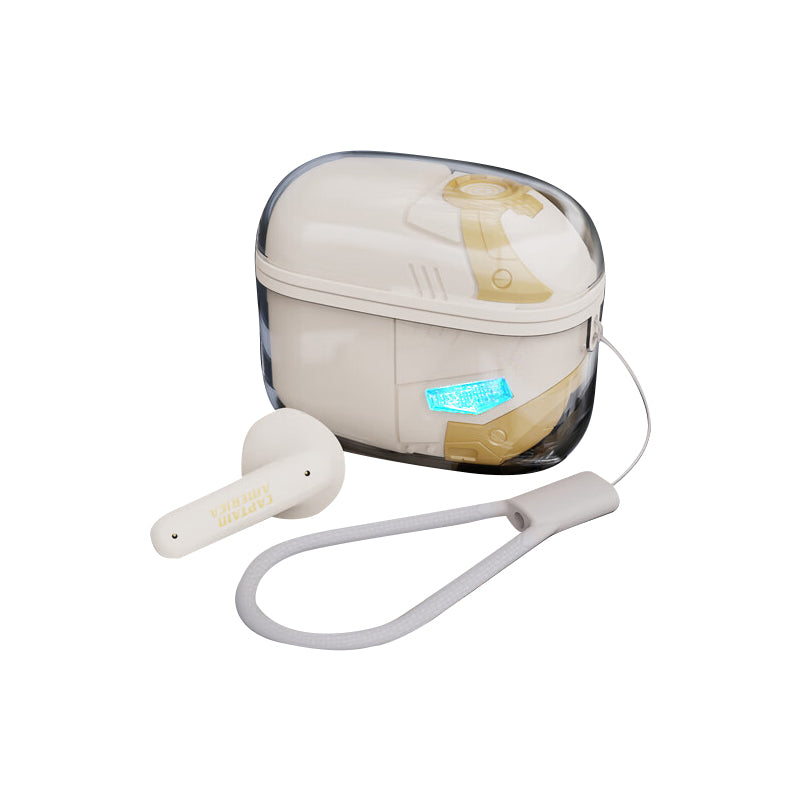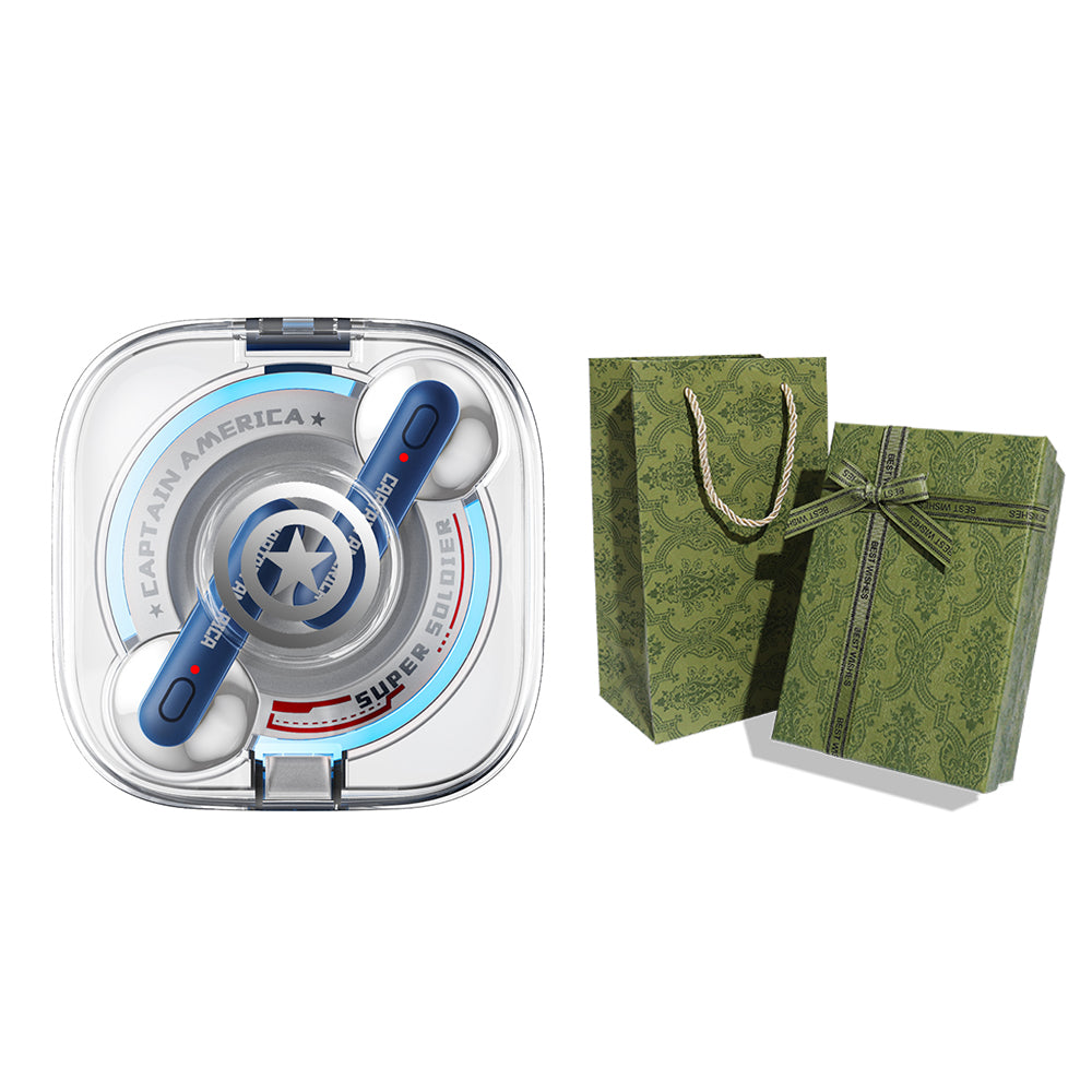 Disney QS28 Kapitan Amerika Iron Man 100-yillik modeli Haqiqiy avtorizatsiyalangan shaffof oʻyin sport shovqinlarini bekor qiluvchi Apple Android universal quloqqa simsiz Bluetooth eshitish vositasi