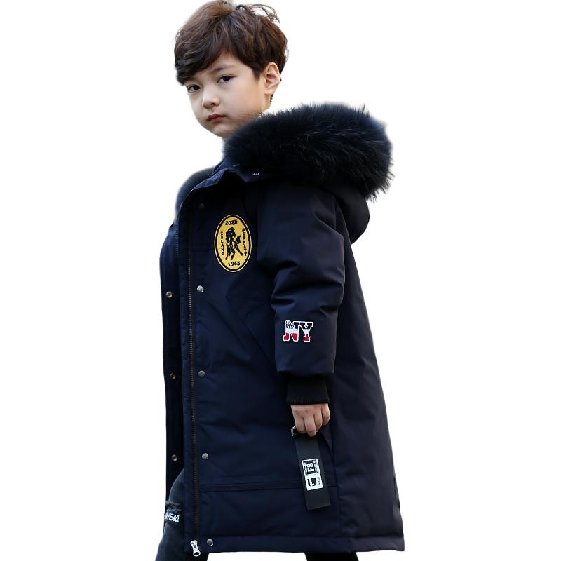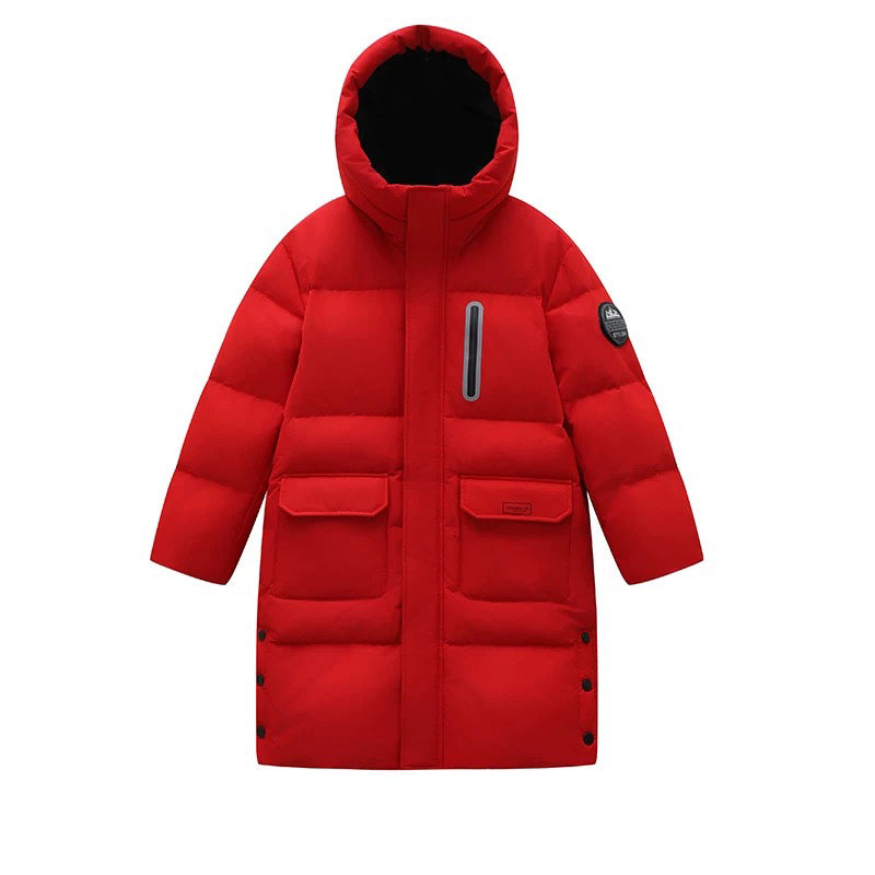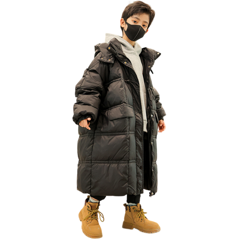 Длинный пуховик для мальчиков в корейском стиле с капюшоном и складчатыми деталями, наполненный белым утиным пухом высокой очистки. Модель обеспечивает...
