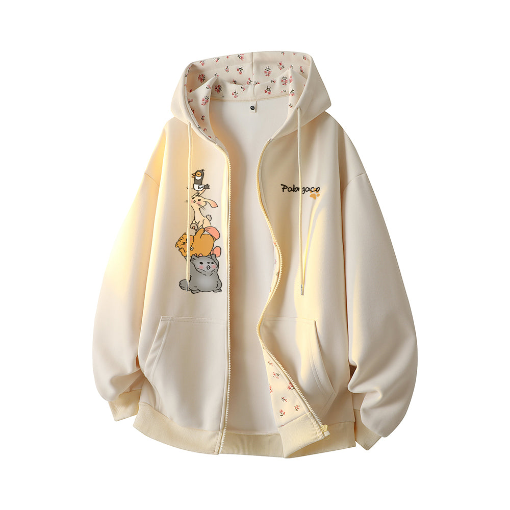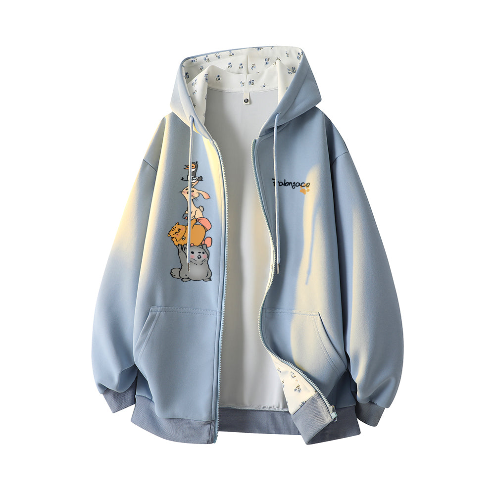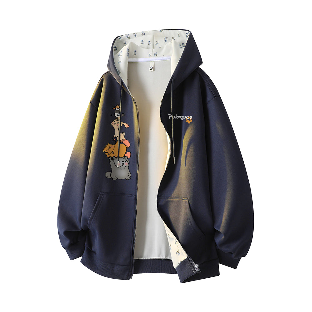 Pal ongaco pal ongaco Amerika retro soddaligi multfilm naqshli bosma harflar logotipi erkin universal trend ko'ylagi ko'ylagi qulay tasodifiy kaputli kardigan kozok erkaklar va ayollar bir xil paragraf bilan