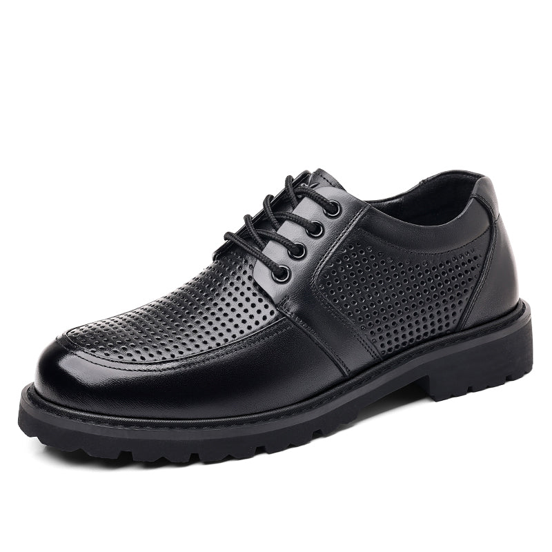 Haqiqiy teshilgan charmdan tikilgan zamonaviy, kundalik, biznes uslubidagi poyabzallar. Ushbu bardoshli, yumaloq burunli dizayn iliq ob-havo uchun juda mos keladi....