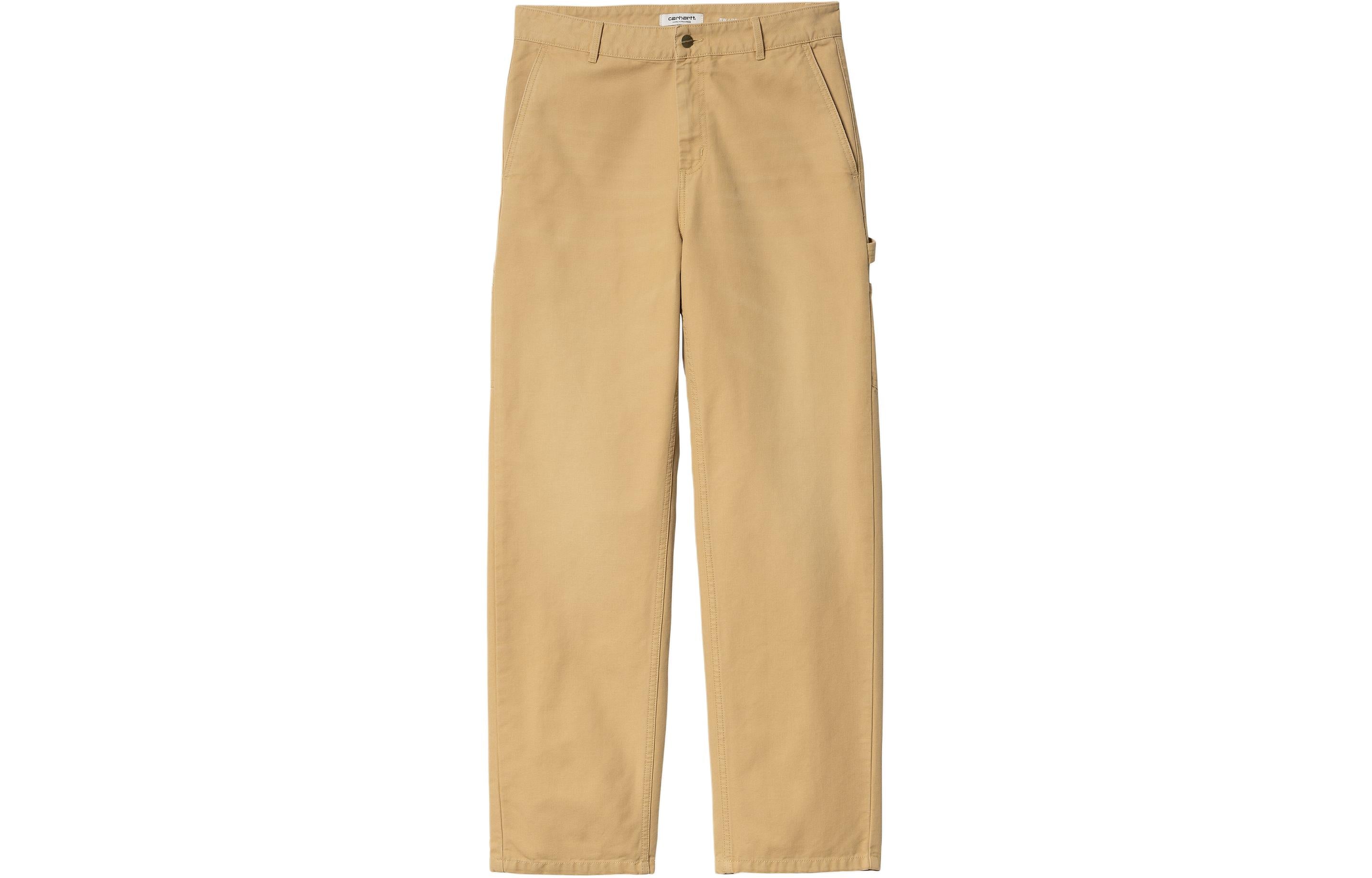 Carhartt wip ss24 v' pirs shim, to'g'ridan-to'g'ri bo'shashgan tekis kvadrat yorliqli fermuarli uzun ish shimlari xaki