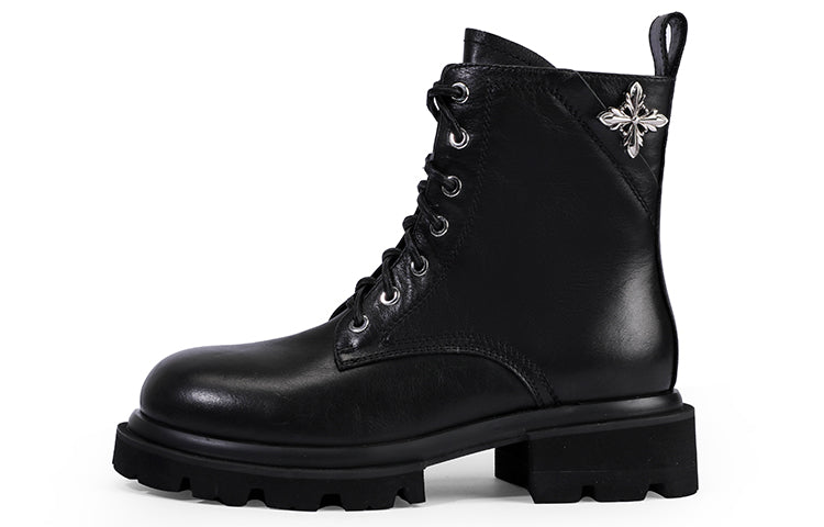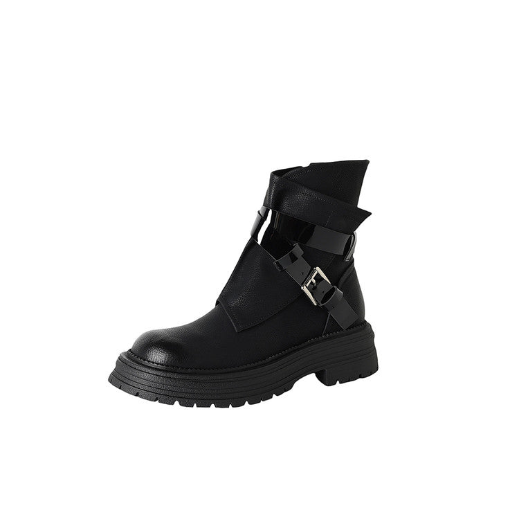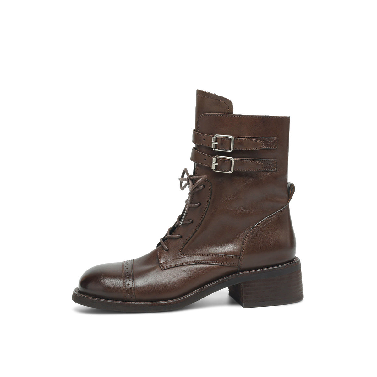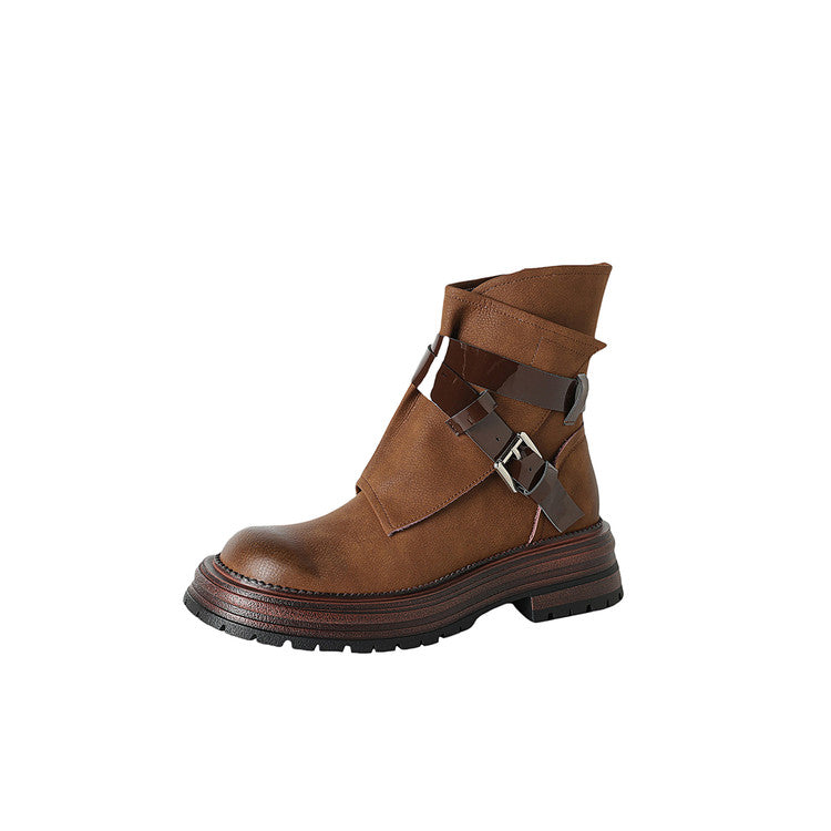 Dekorativ qisqichli va 15,5 sm balandlikdagi milya bilan vintage sigir terisi biker martinlari. 4,5 sm uzunlikdagi tovon kundalik kiyish uchun...