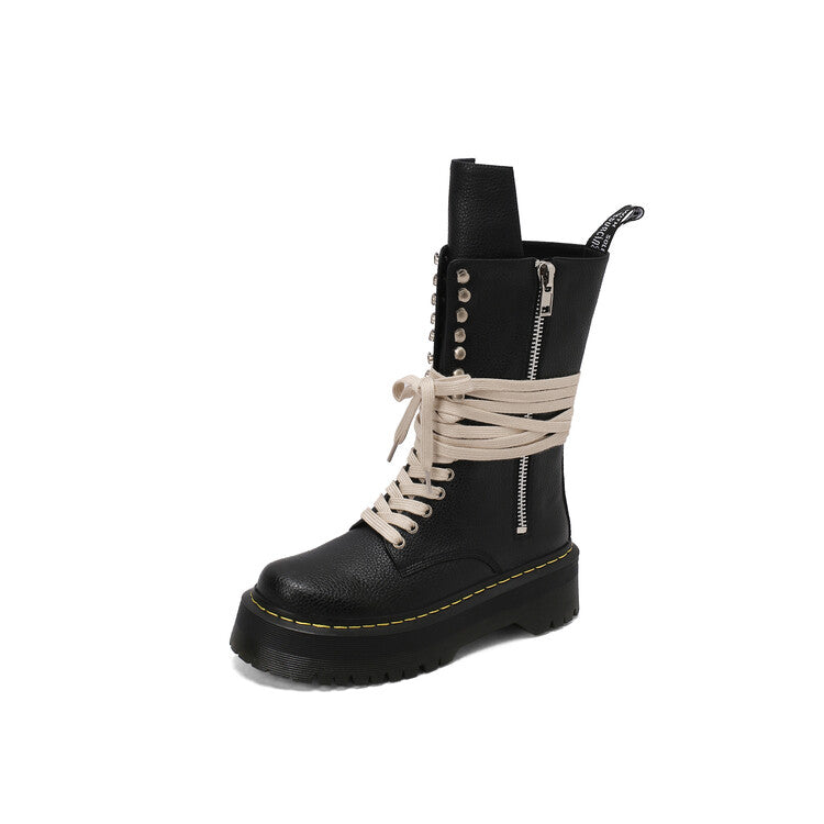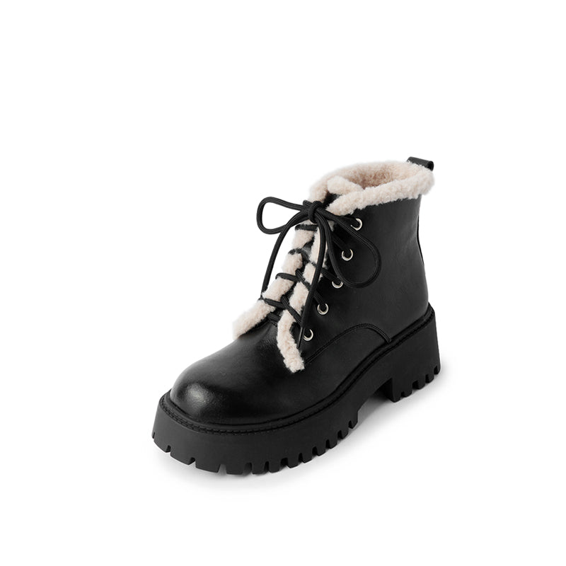 Qalin tovoni va baland poshnali bardoshli materialdan tikilgan, to'rli va fermuarli moda yumaloq etik. Bahor, kuz va qish uchun juda...