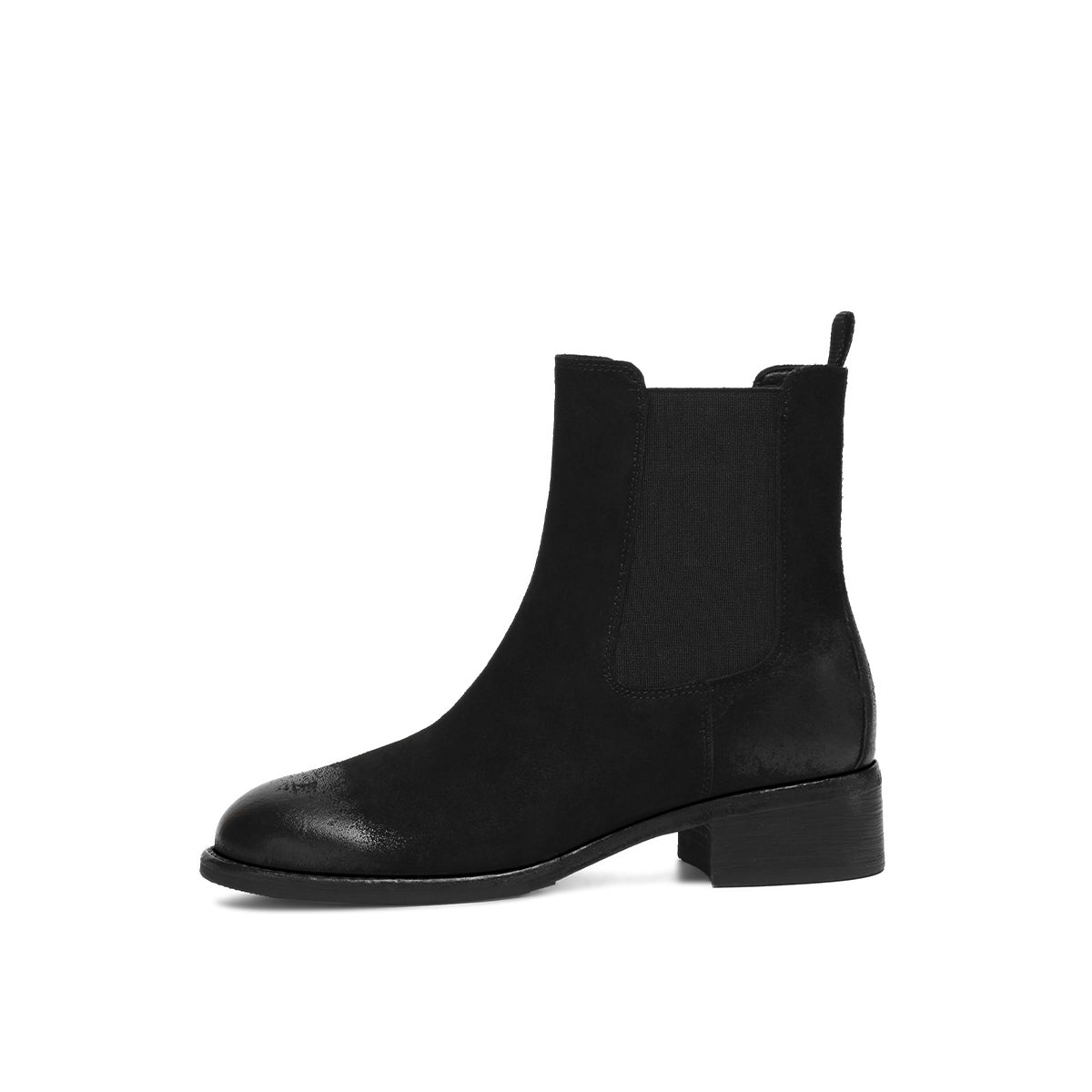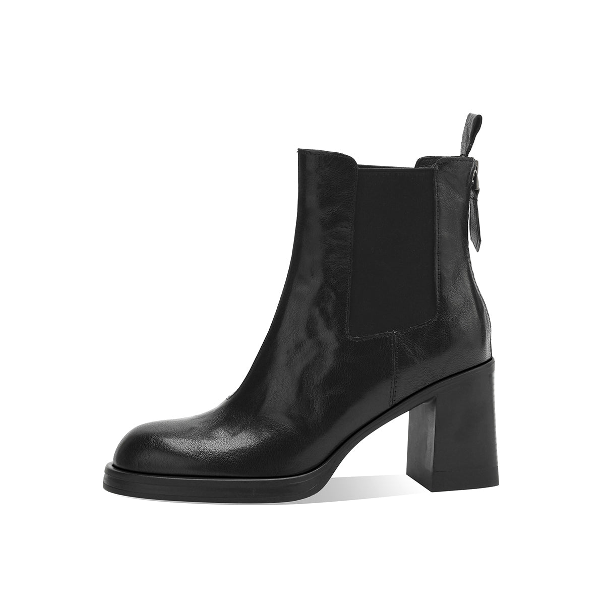 Qo'y terisidan tikilgan, 5 sm poshnali moda kalta Chelsi etiklari. Ular kundalik kiyim uchun qulaylik va zamonaviy ko'rinishni ta'minlaydi.