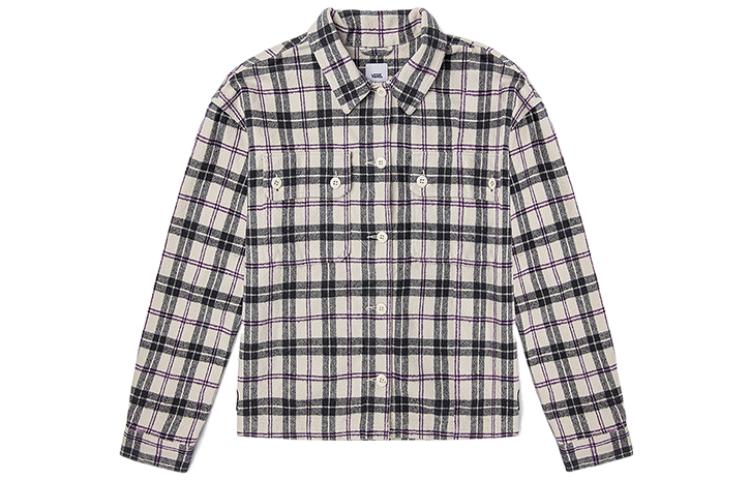 Длинная рубашка с воротником-стойкой и клетчатым узором, выполненная в расслабленном кэжуал-стиле. Модель с заниженной линией плеча и застежкой на пуговицах...